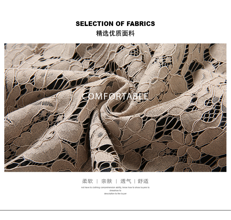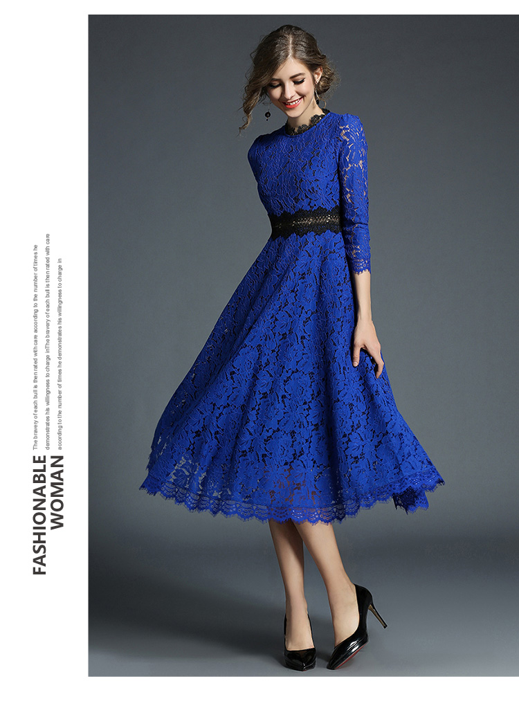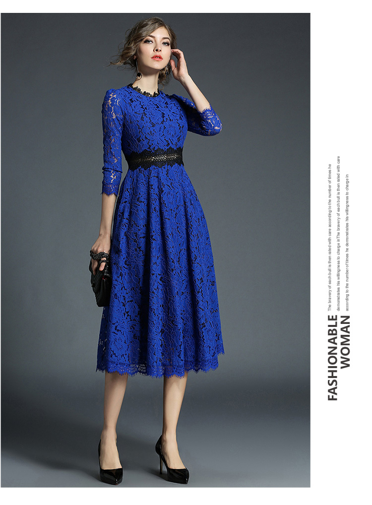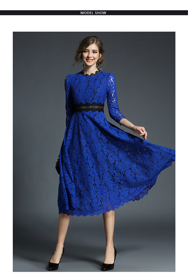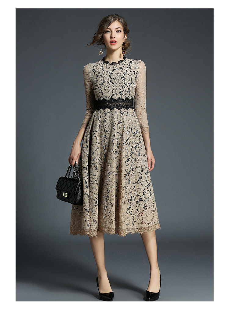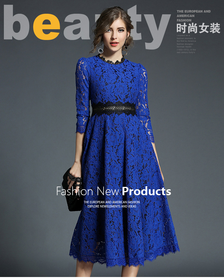 MY12552#春季欧美风钩花镂空拼接蕾丝连衣裙