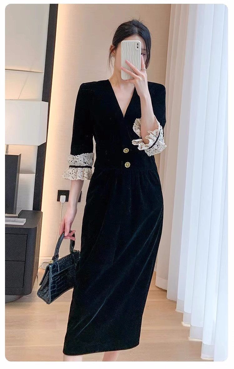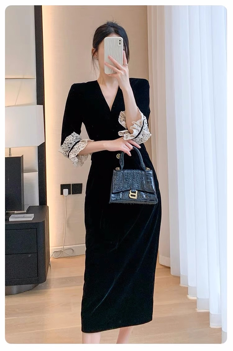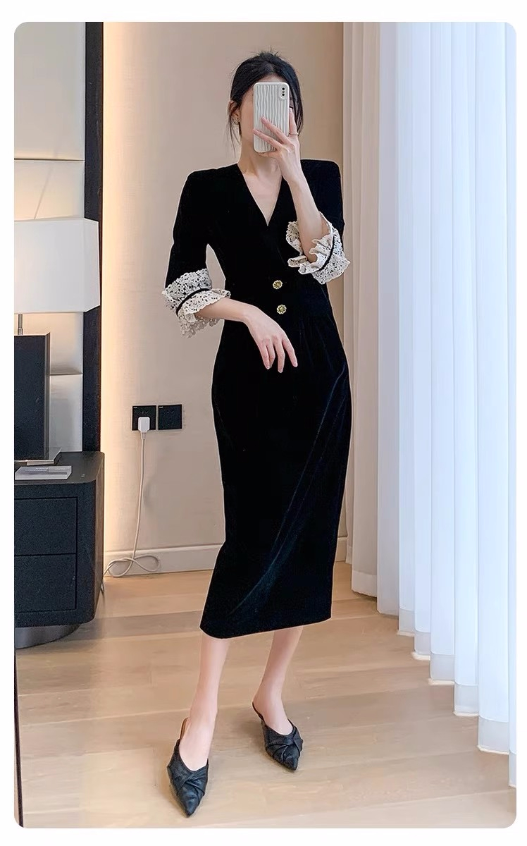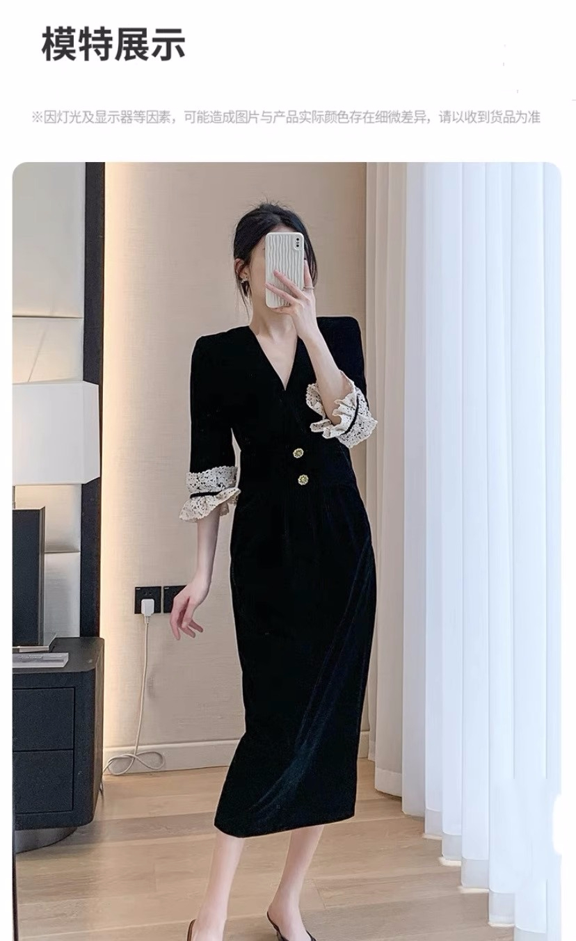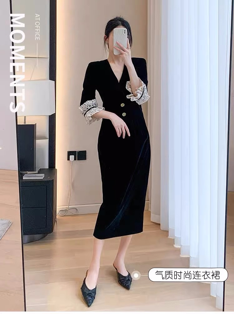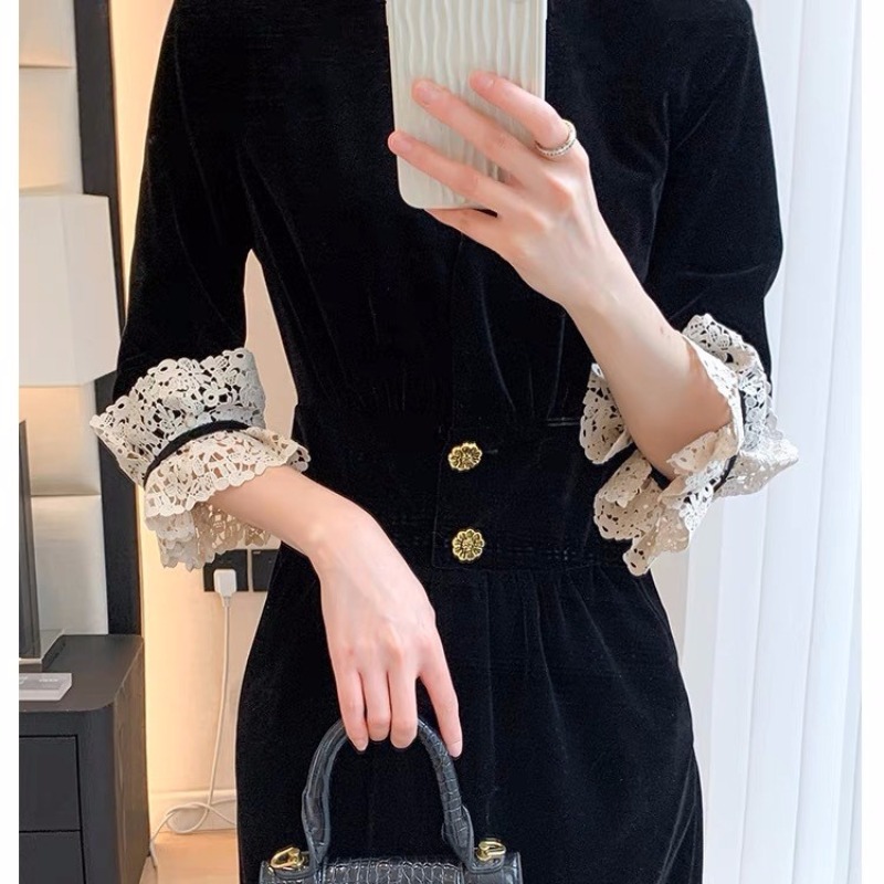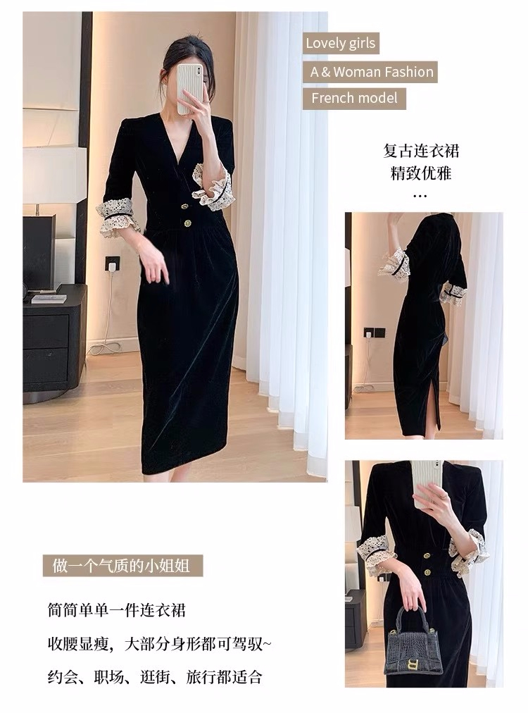 MY12568# 品质大量现货轻奢法式复古赫本风小黑裙2025秋季新款大码连衣裙女