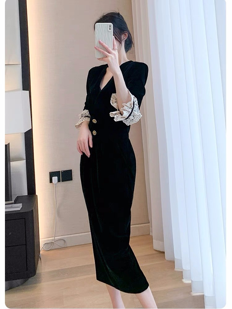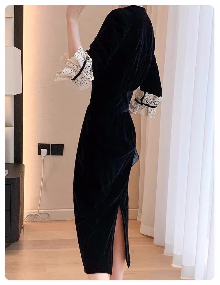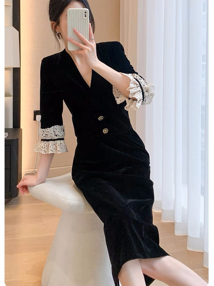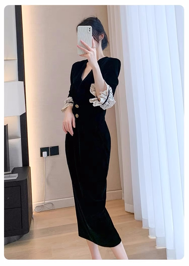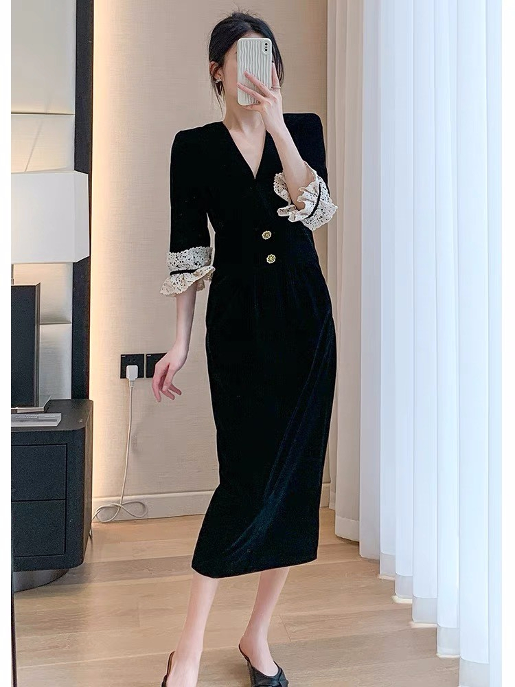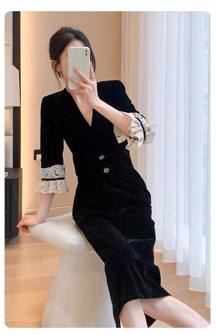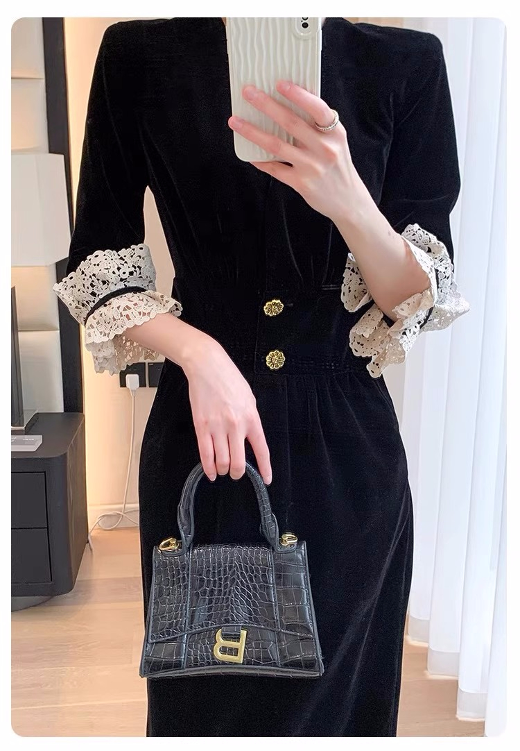 MY12568# 品质大量现货轻奢法式复古赫本风小黑裙2025秋季新款大码连衣裙女