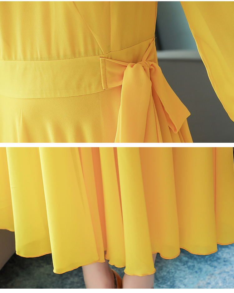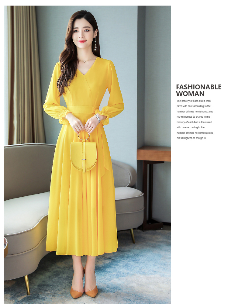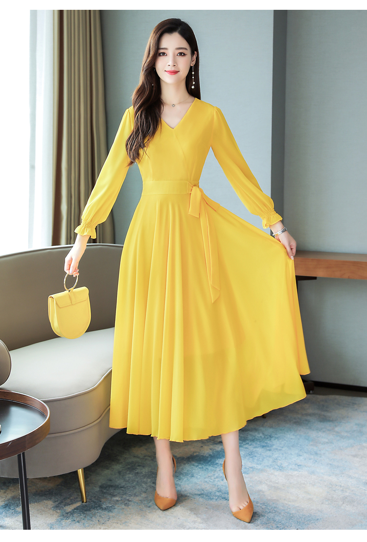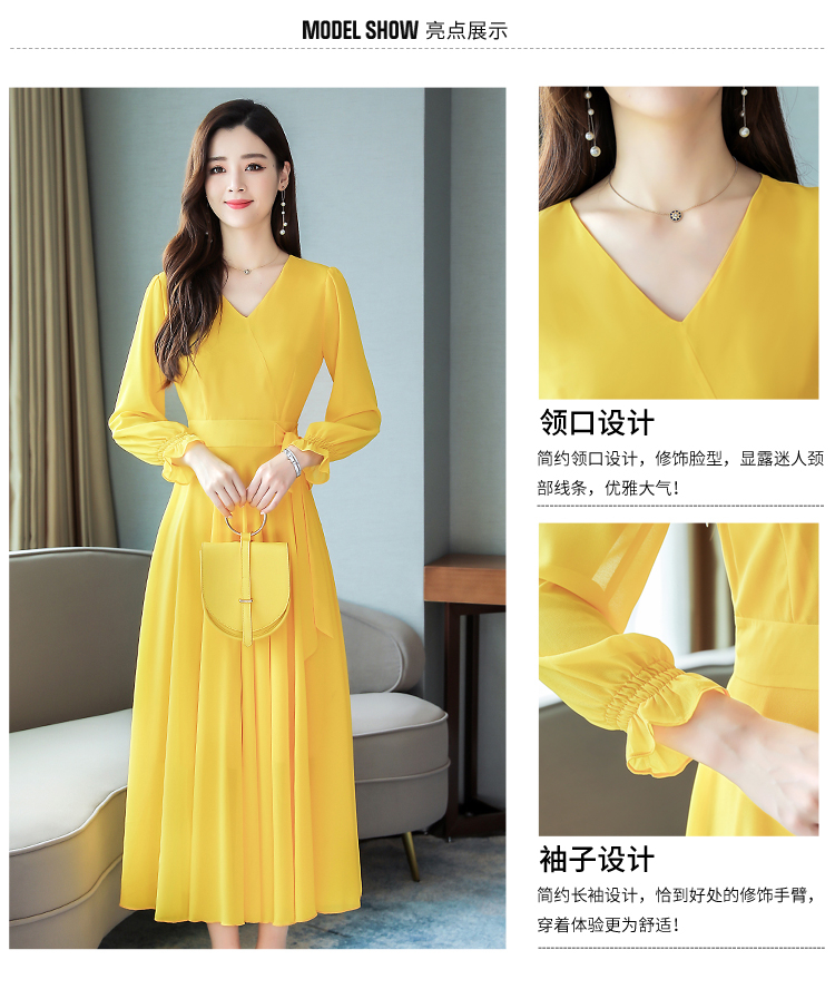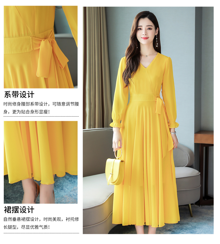 MY13322# 新款大码雪纺连衣裙长袖气质修身显瘦大摆长裙女裝貨源服裝批發