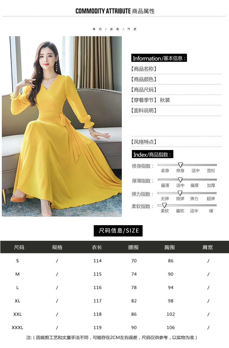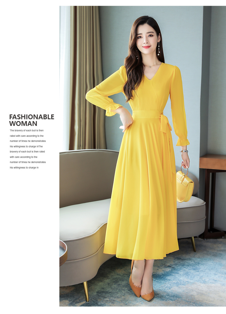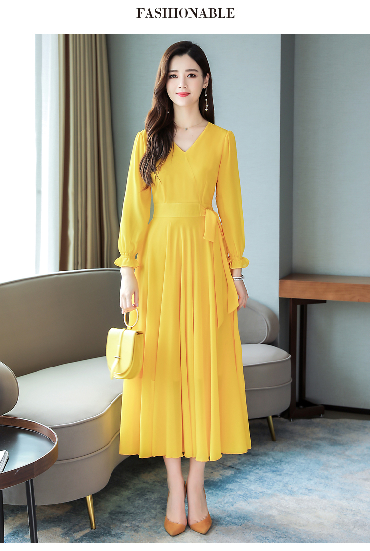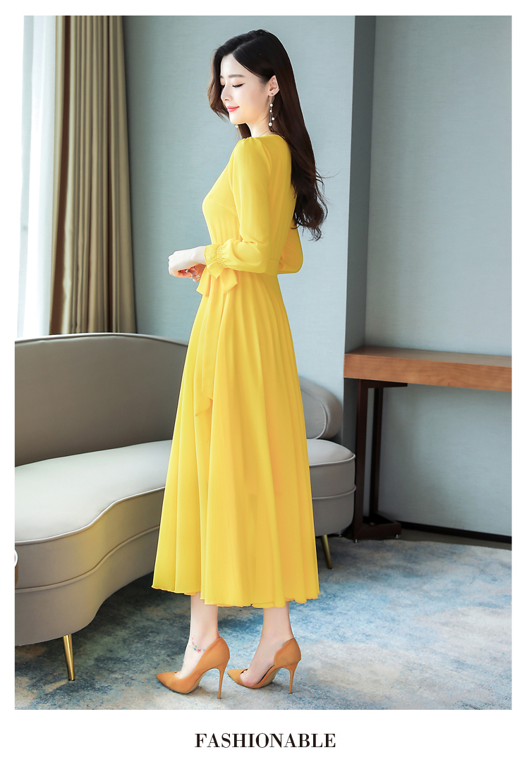 MY13322# 新款大码雪纺连衣裙长袖气质修身显瘦大摆长裙女裝貨源服裝批發