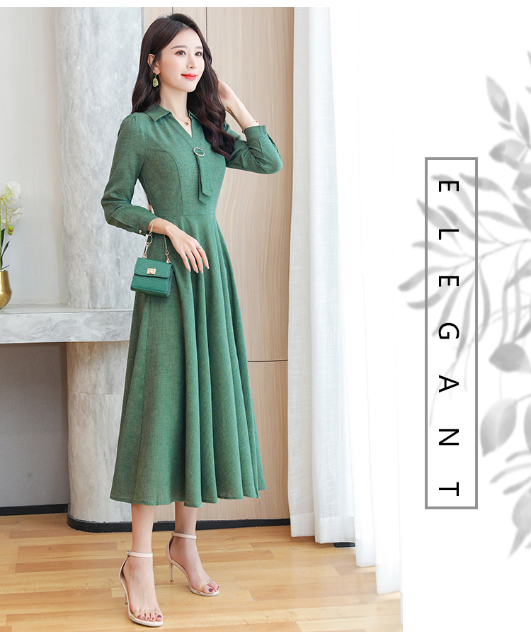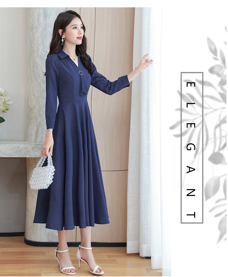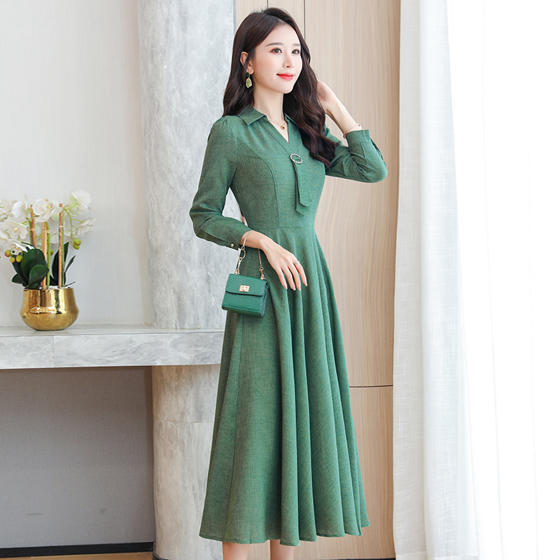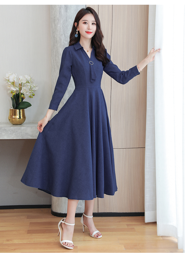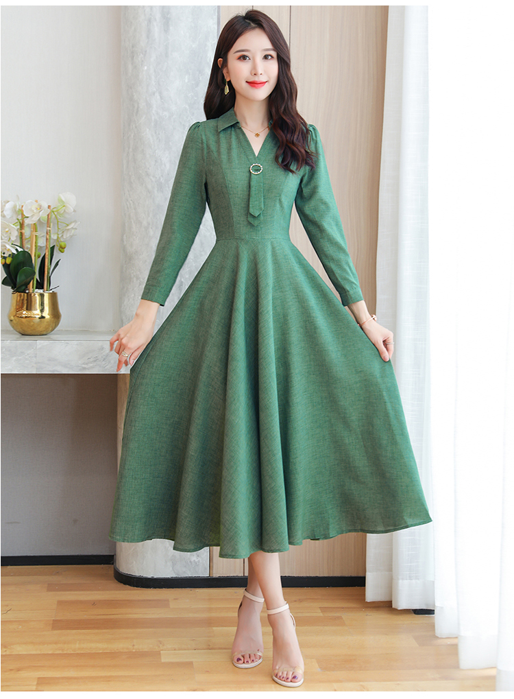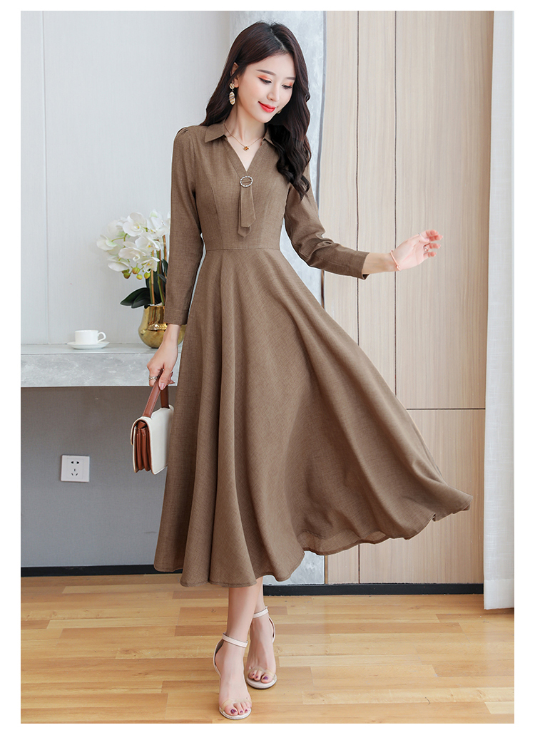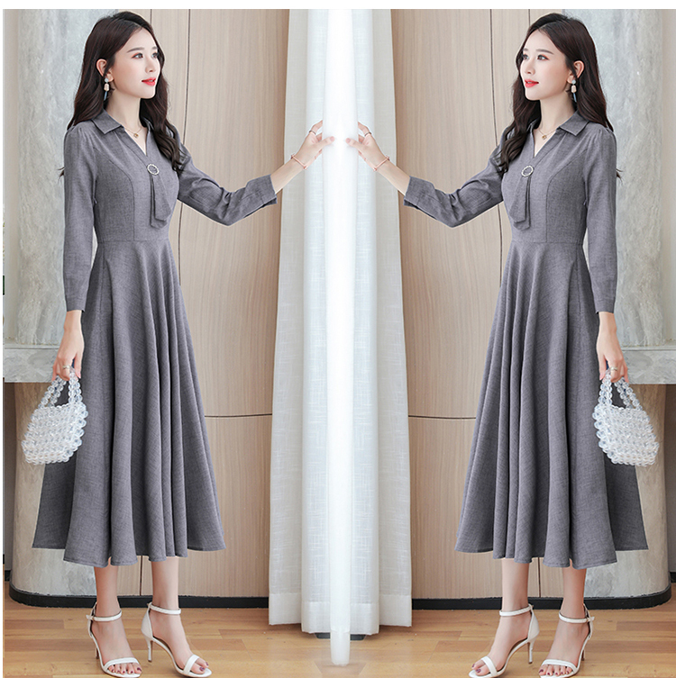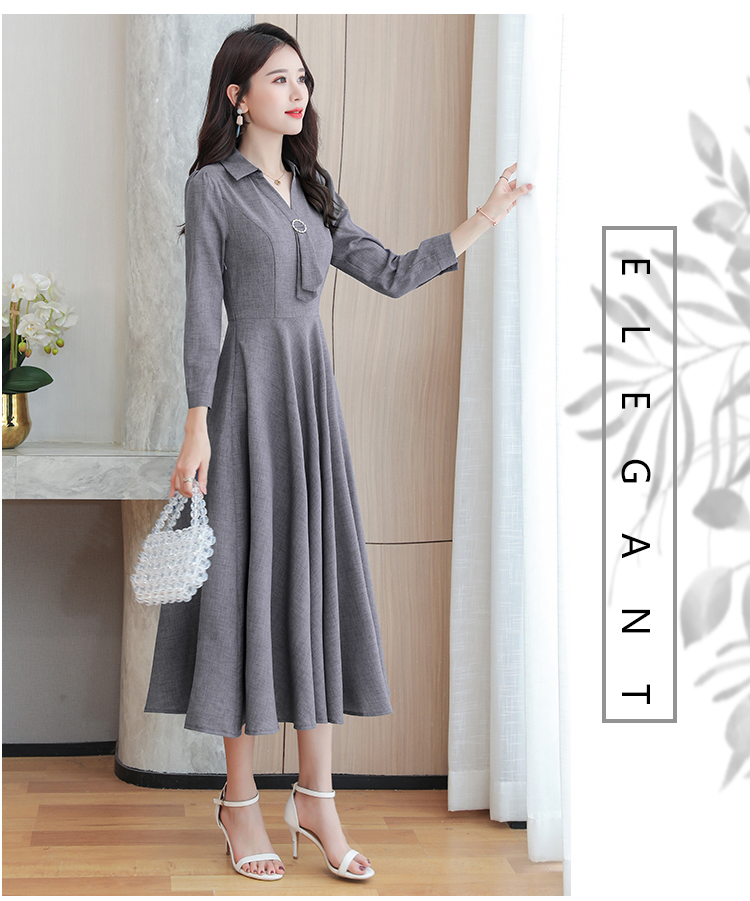 MY13324# 棉麻连衣裙新款轻熟风长袖时尚流行气质裙子女裝貨源服裝批發