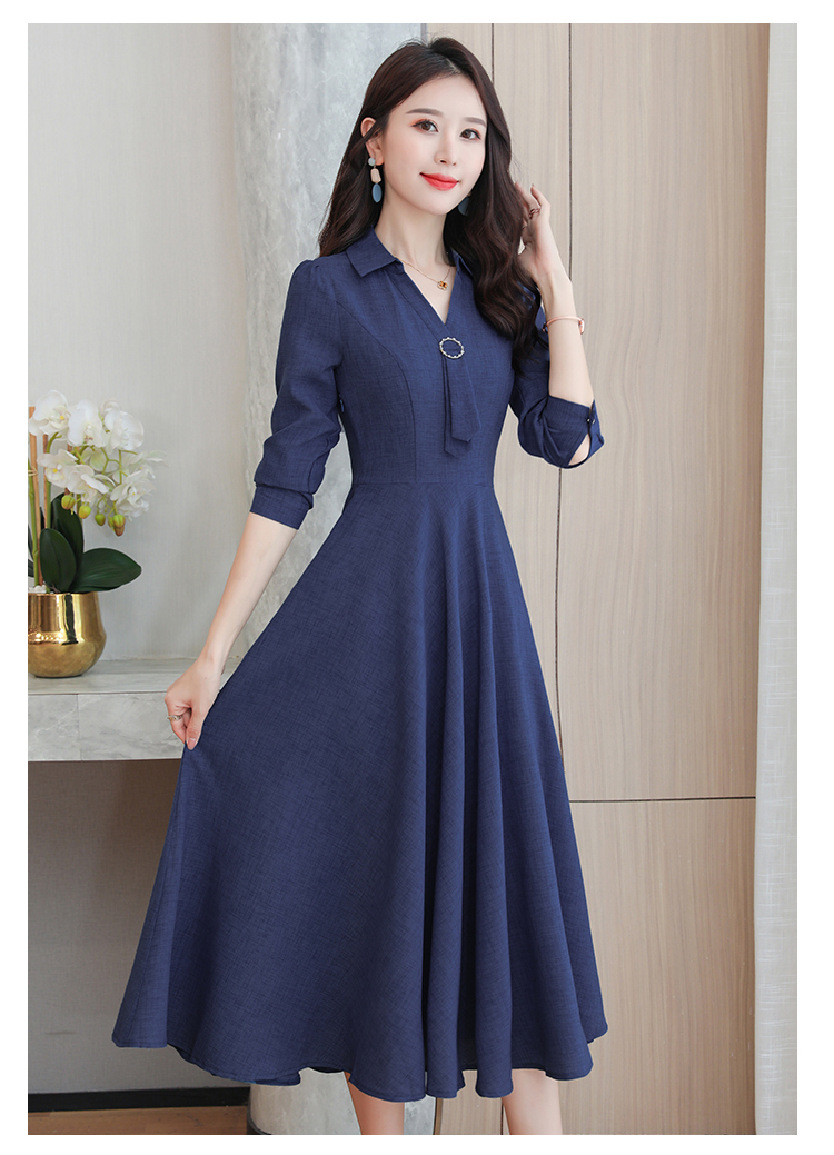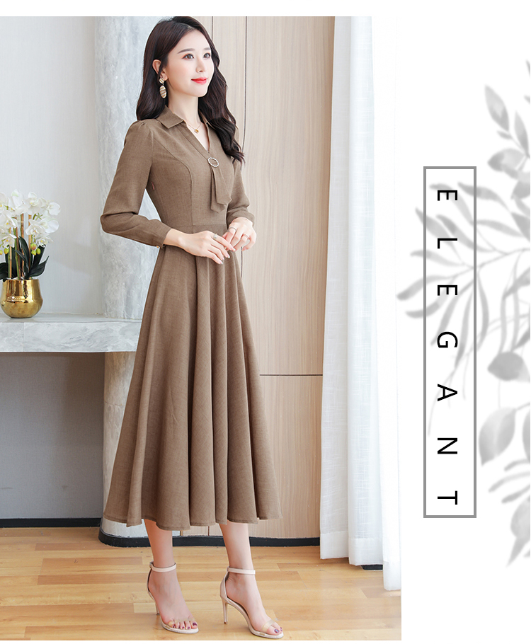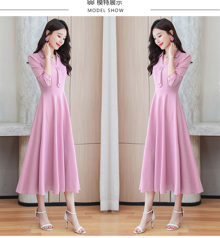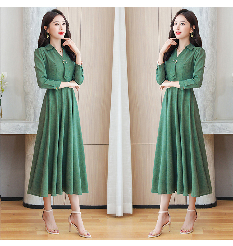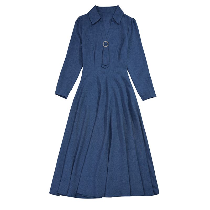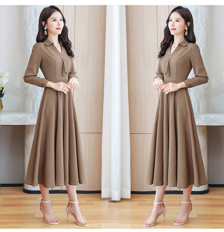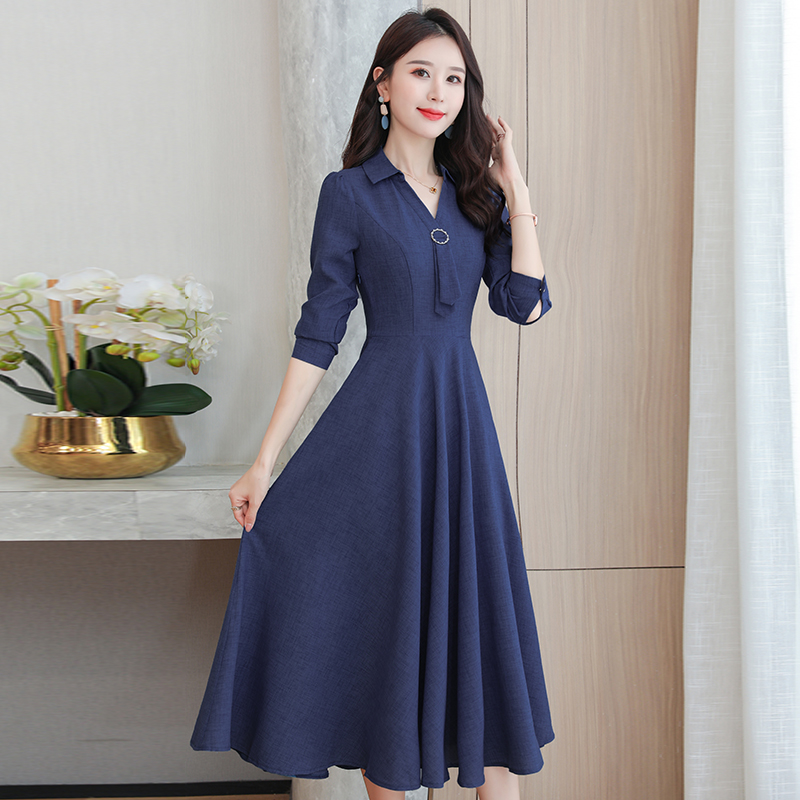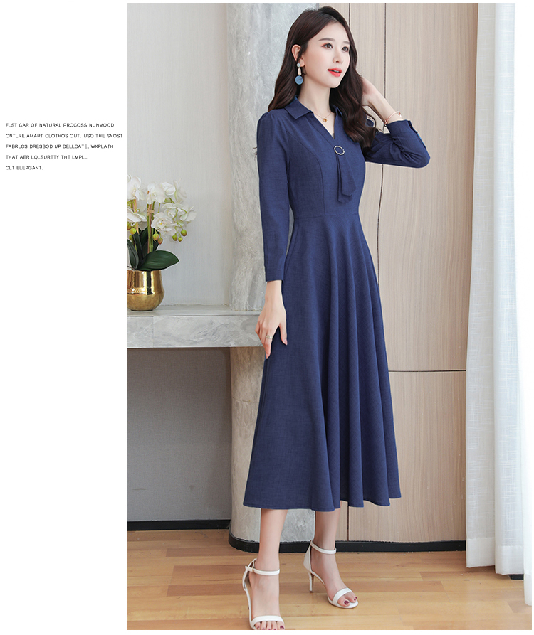 MY13324# 棉麻连衣裙新款轻熟风长袖时尚流行气质裙子女裝貨源服裝批發