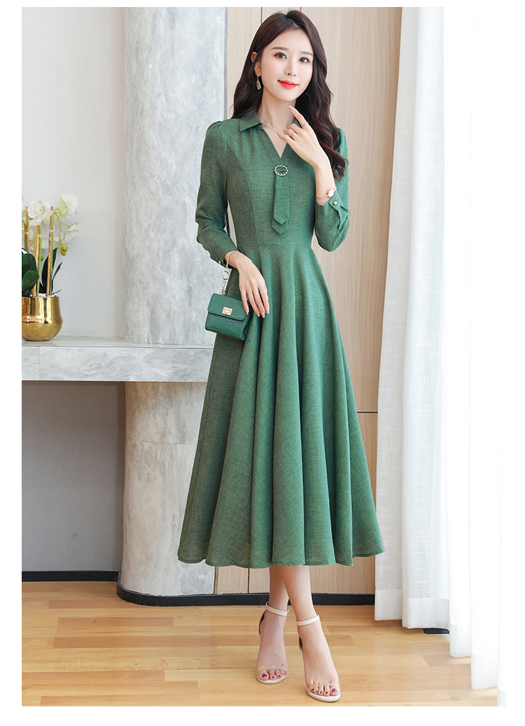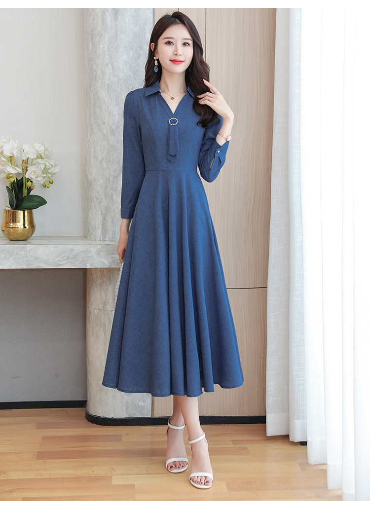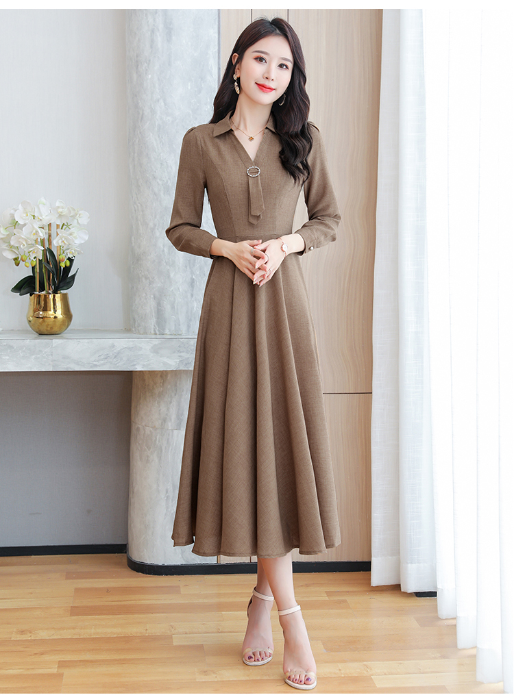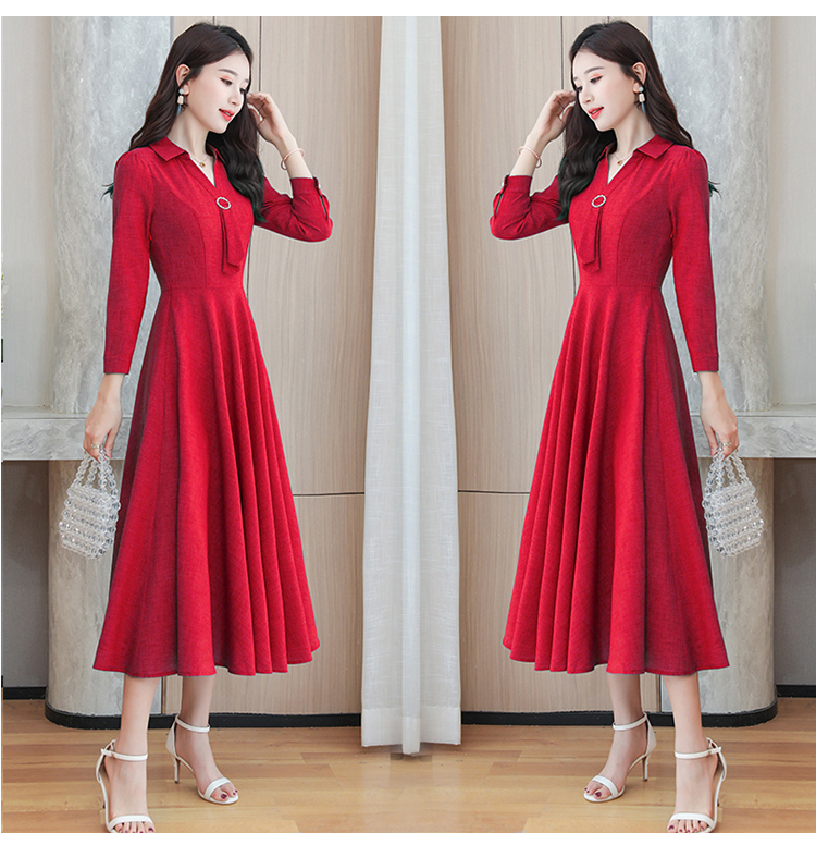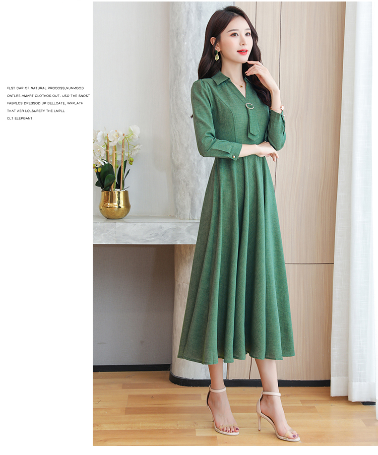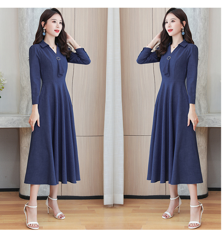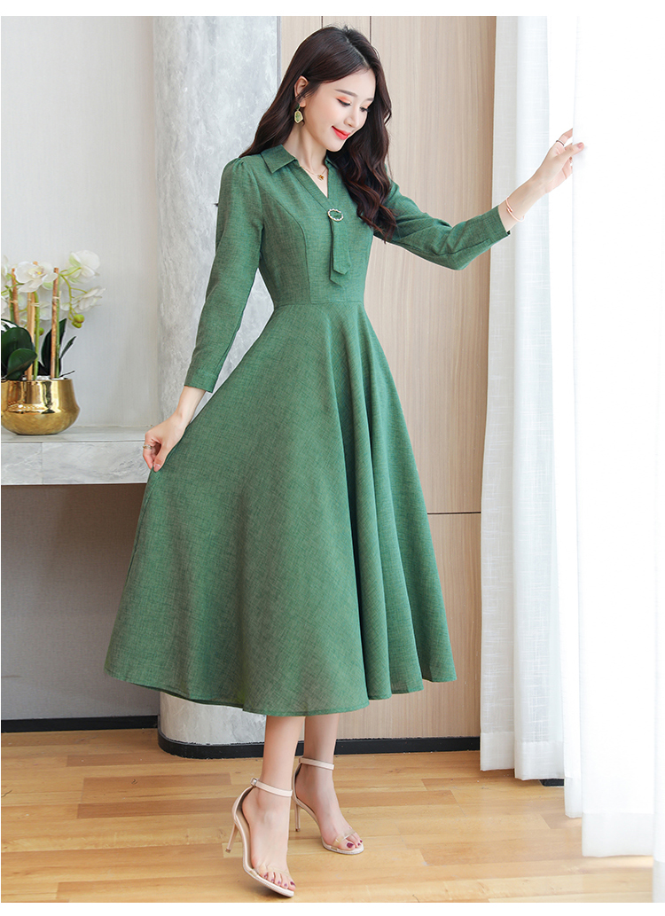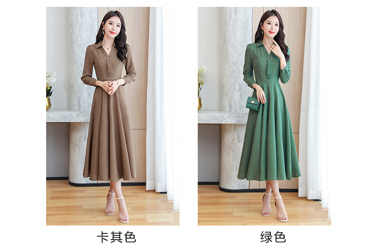 MY13324# 棉麻连衣裙新款轻熟风长袖时尚流行气质裙子女裝貨源服裝批發