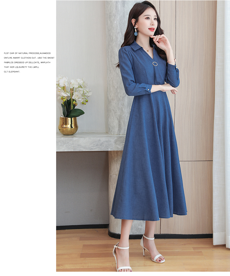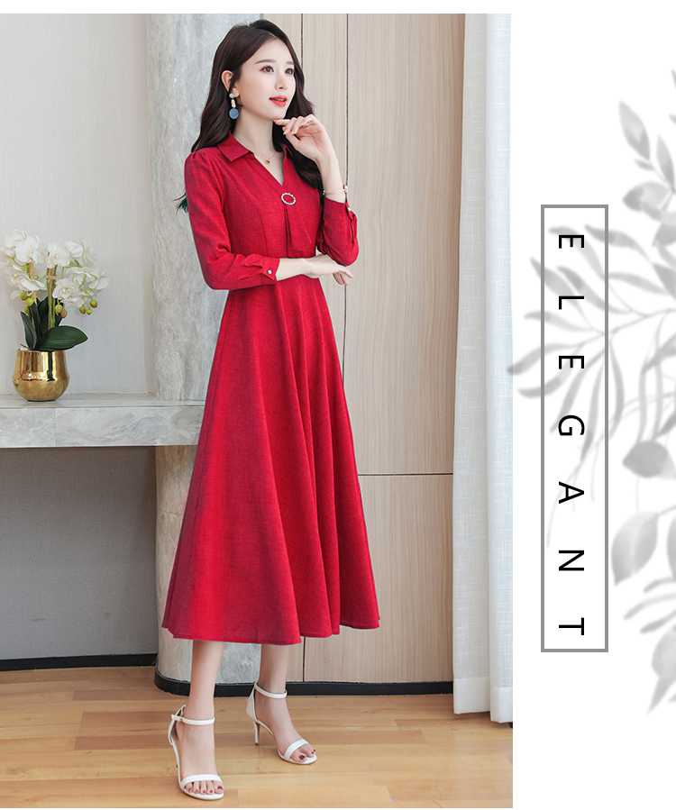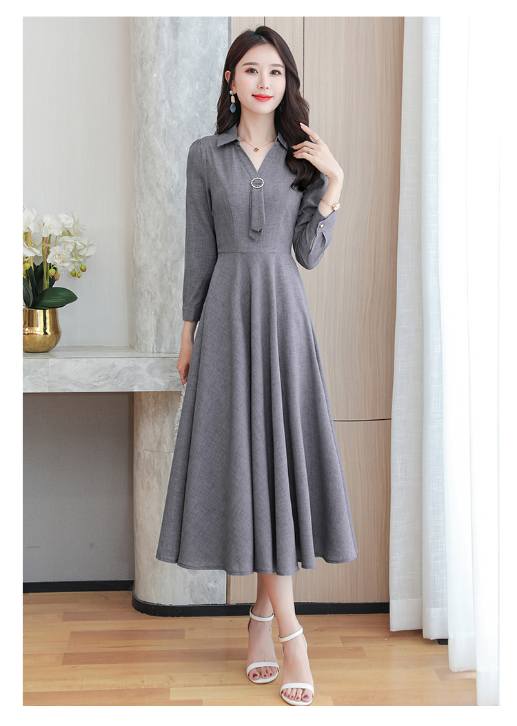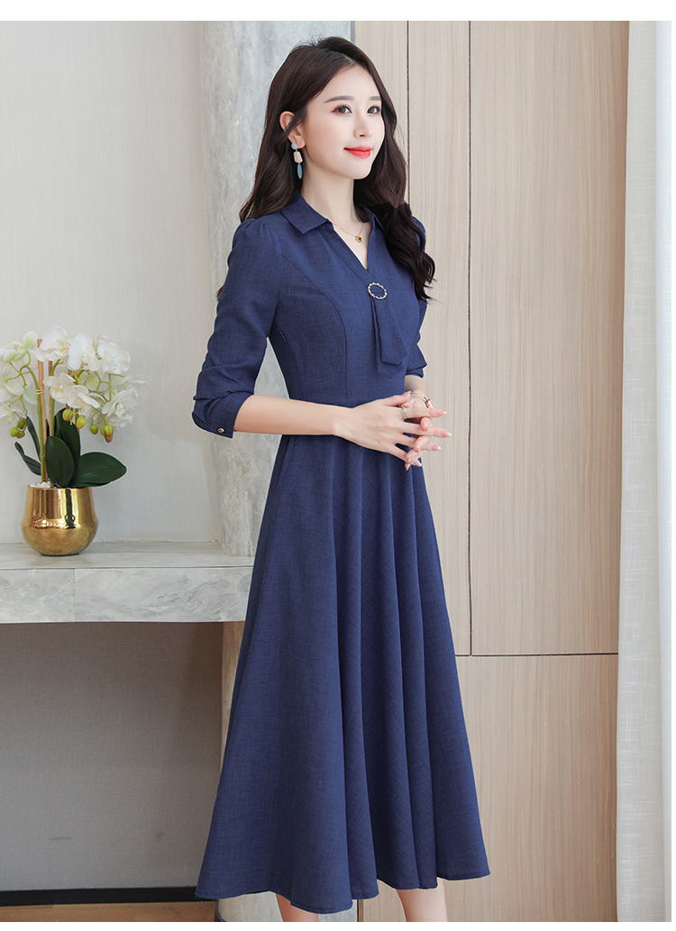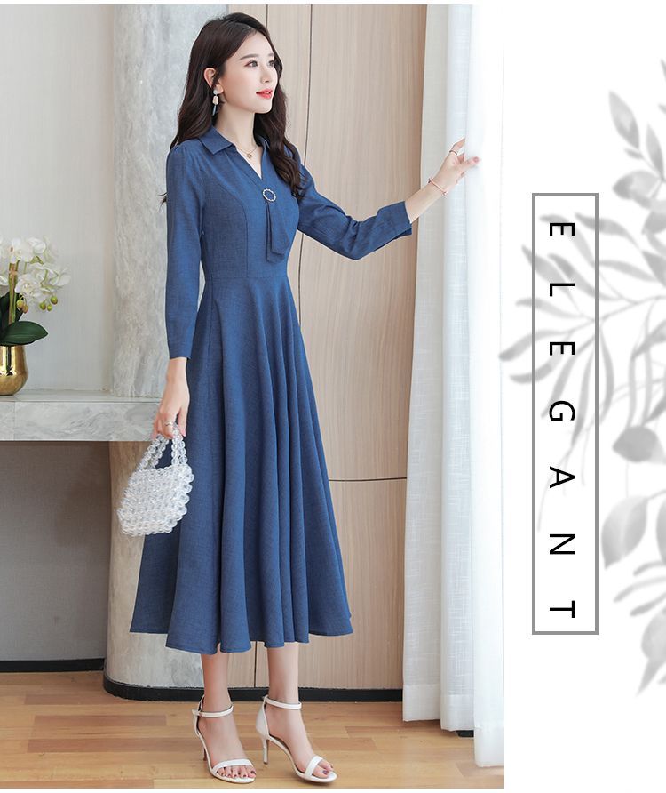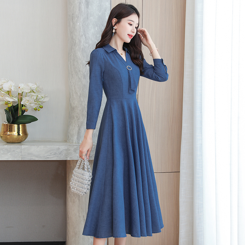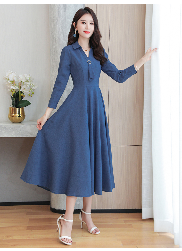 MY13324# 棉麻连衣裙新款轻熟风长袖时尚流行气质裙子女裝貨源服裝批發