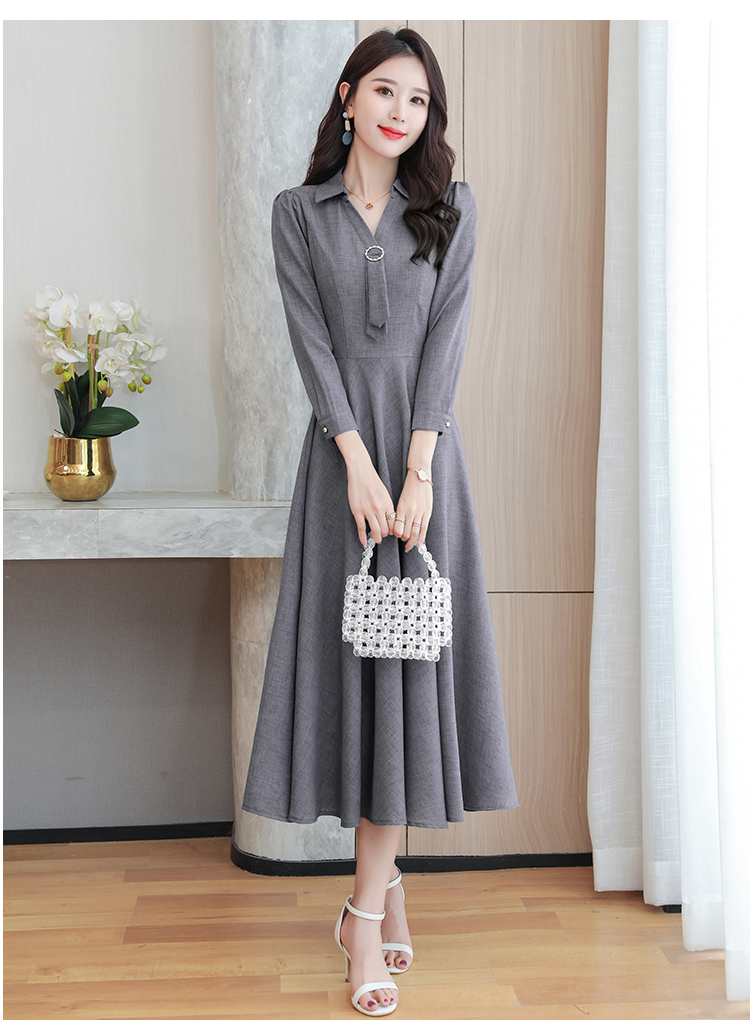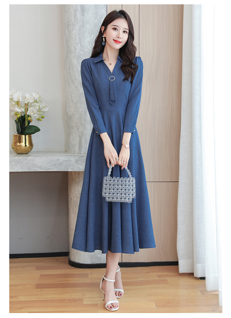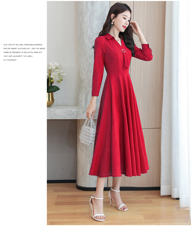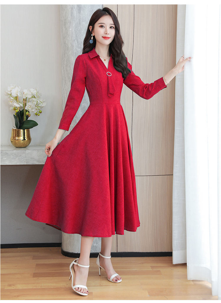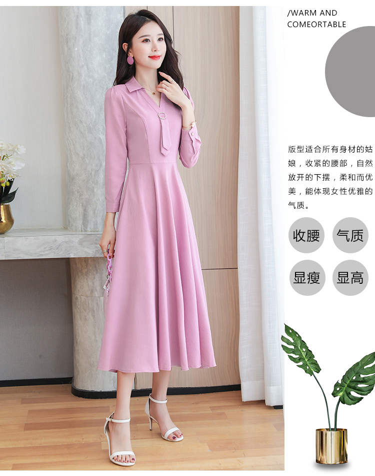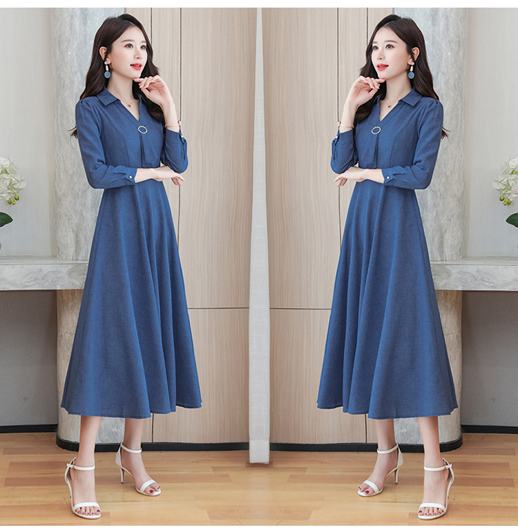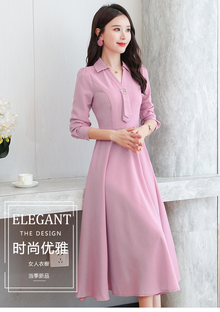 MY13324# 棉麻连衣裙新款轻熟风长袖时尚流行气质裙子女裝貨源服裝批發