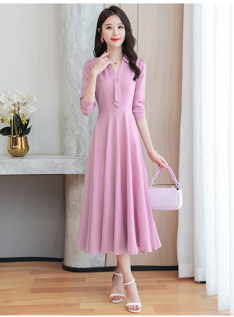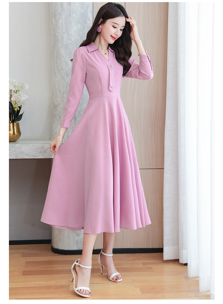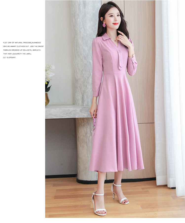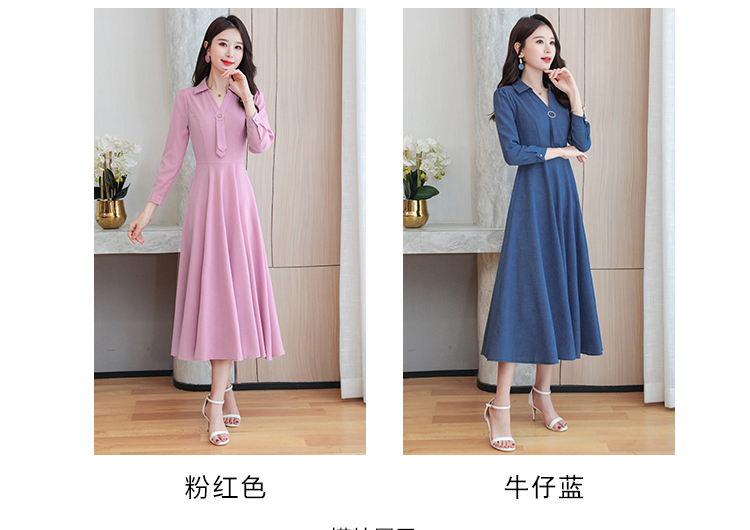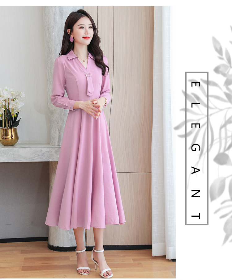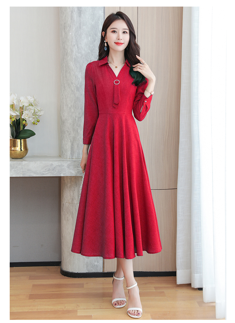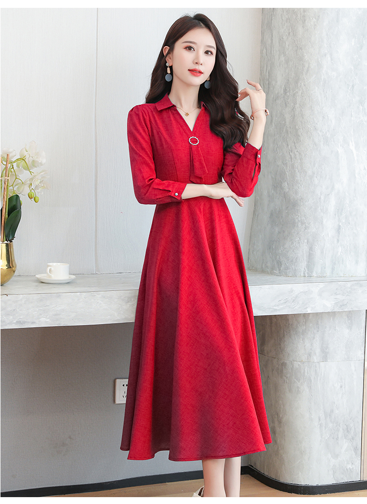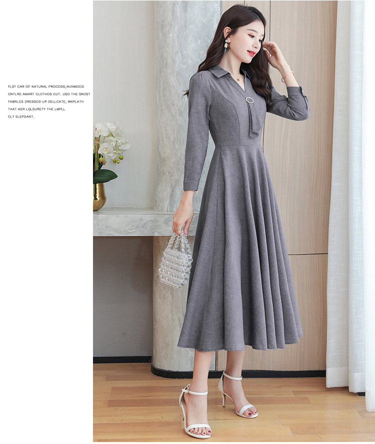 MY13324# 棉麻连衣裙新款轻熟风长袖时尚流行气质裙子女裝貨源服裝批發