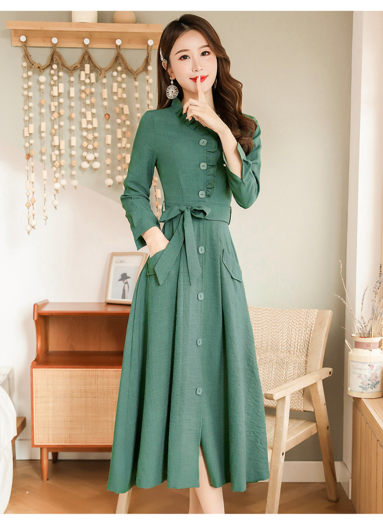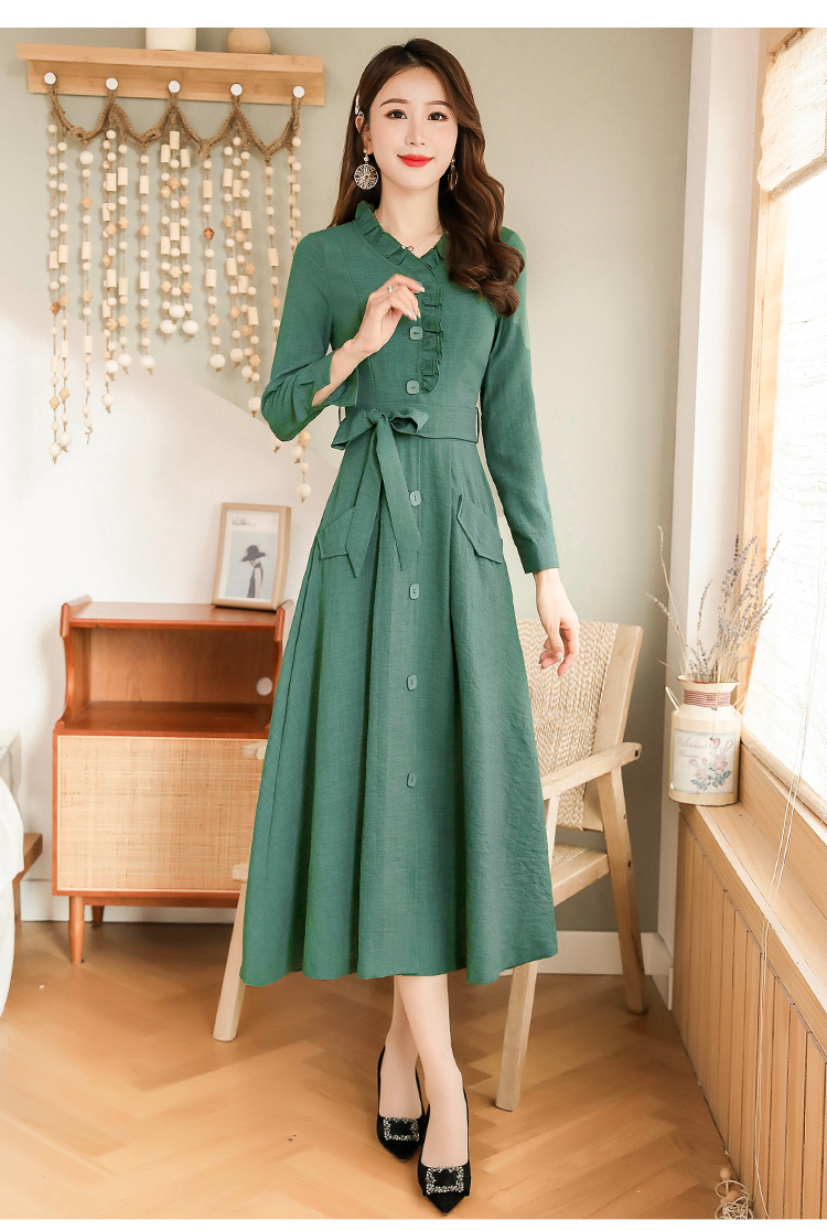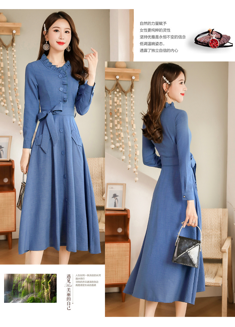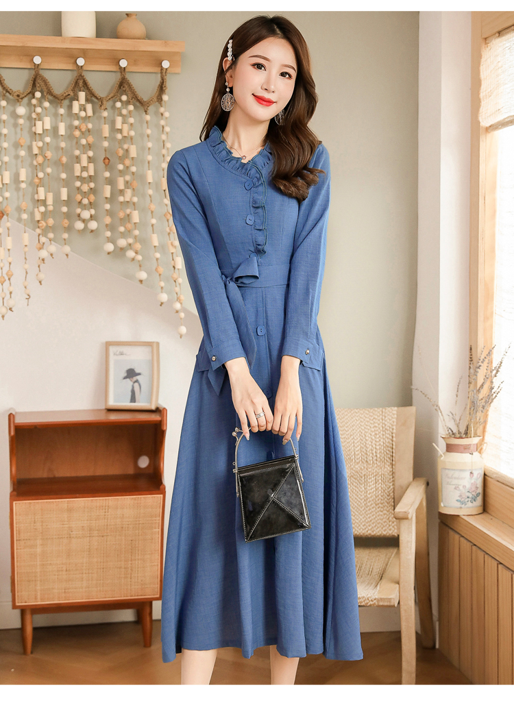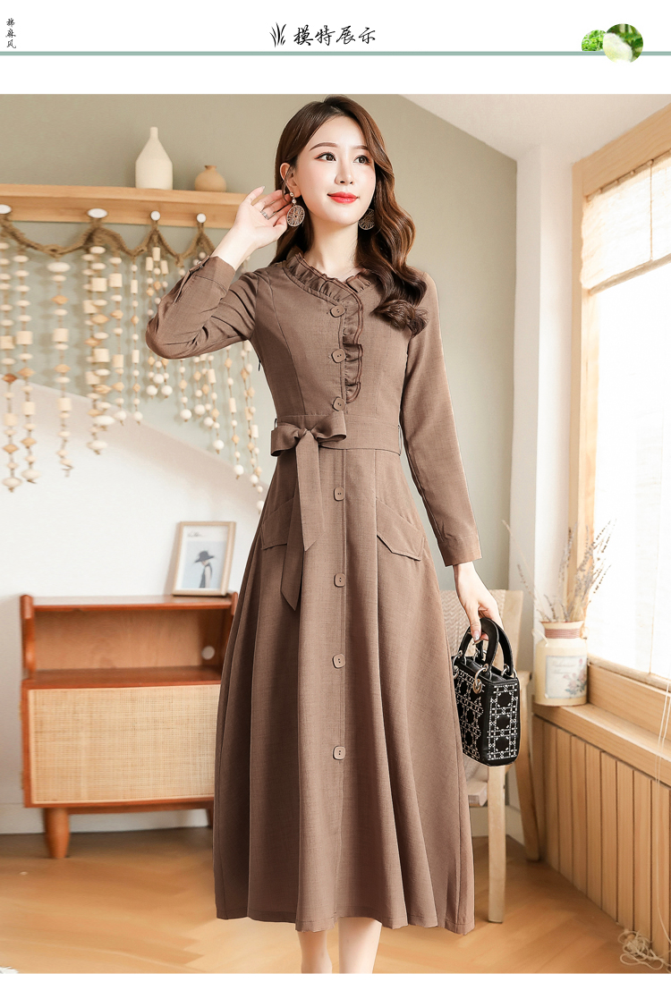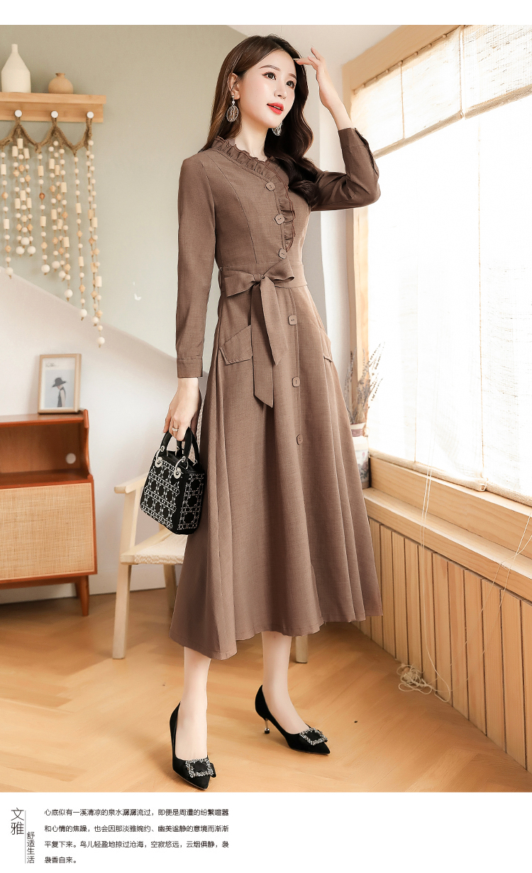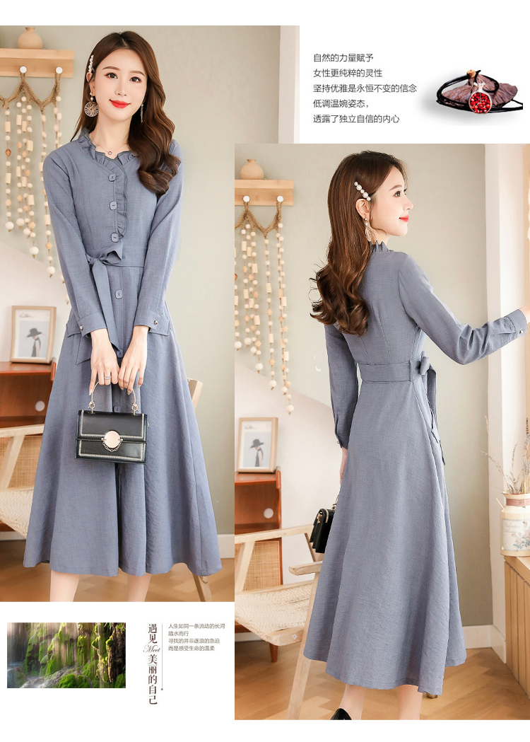 MY13327# 新款流行裙子亚麻收腰显瘦气质长袖棉麻连衣裙女裝貨源服裝批發