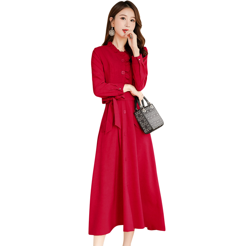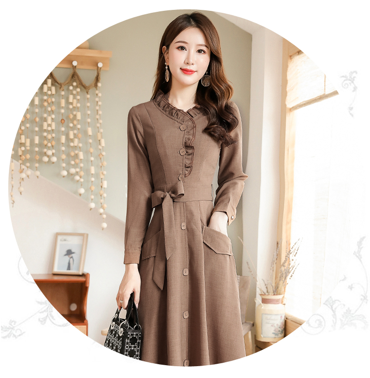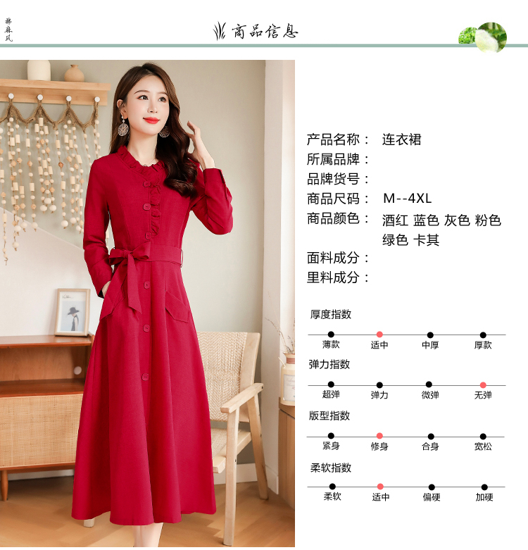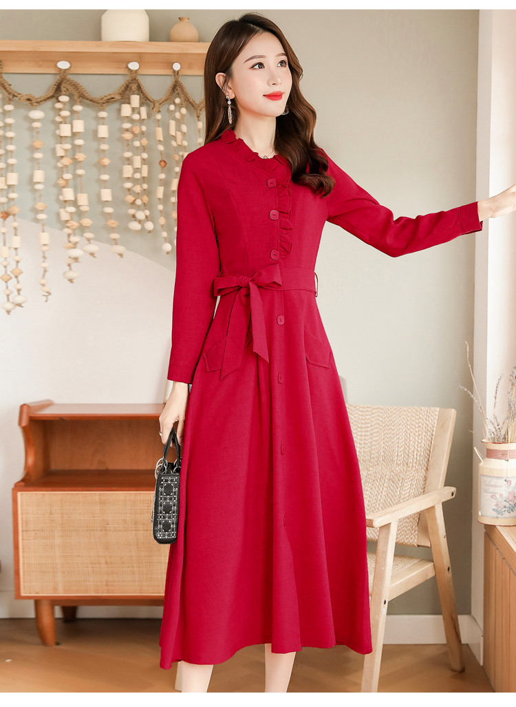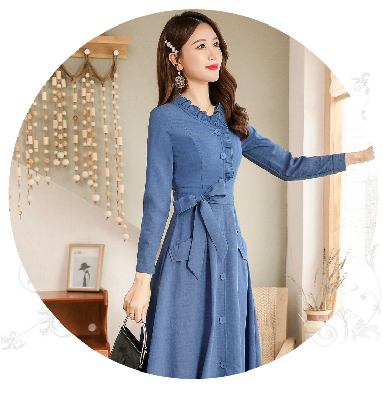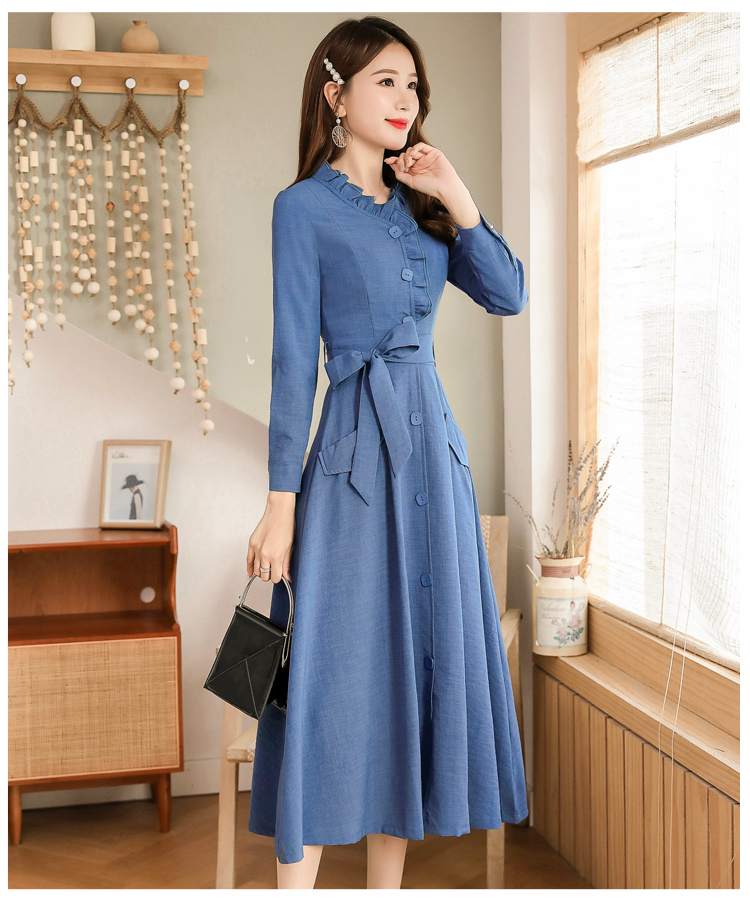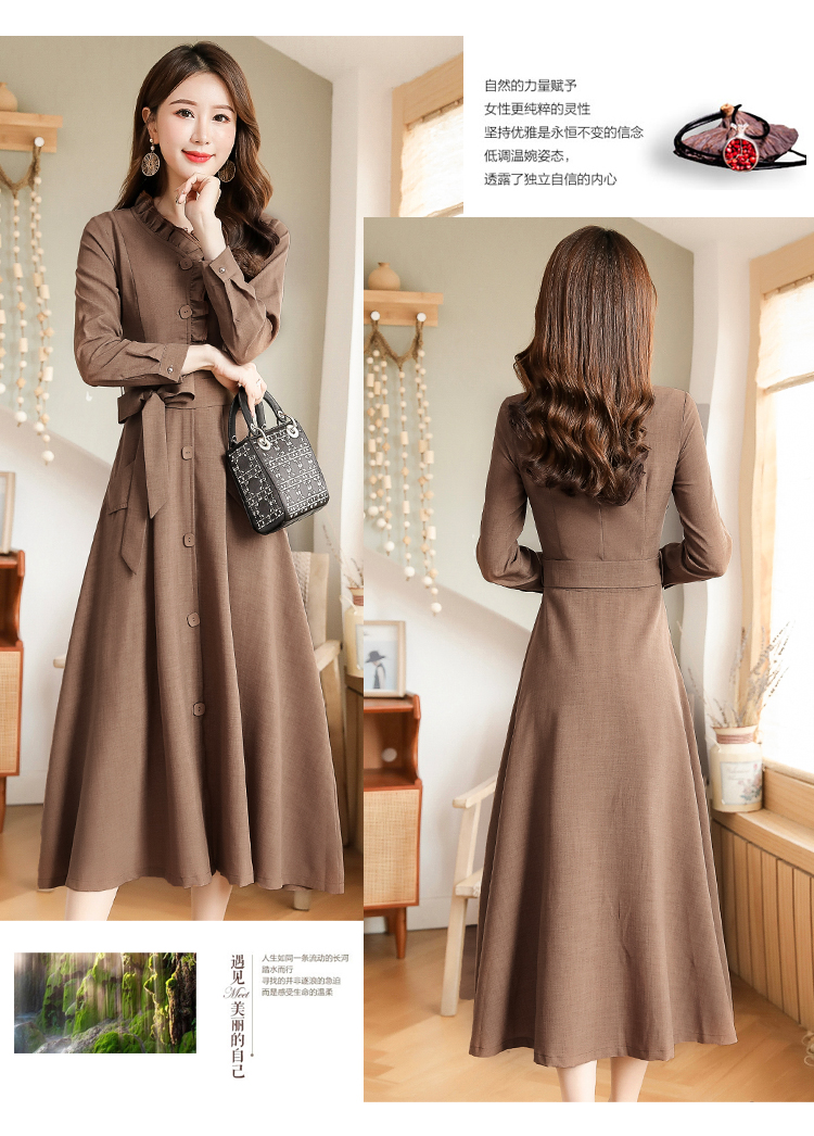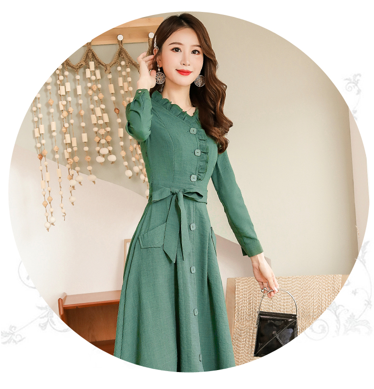 MY13327# 新款流行裙子亚麻收腰显瘦气质长袖棉麻连衣裙女裝貨源服裝批發