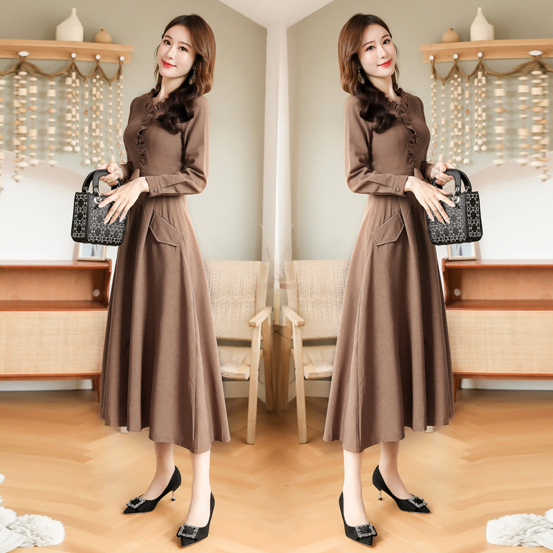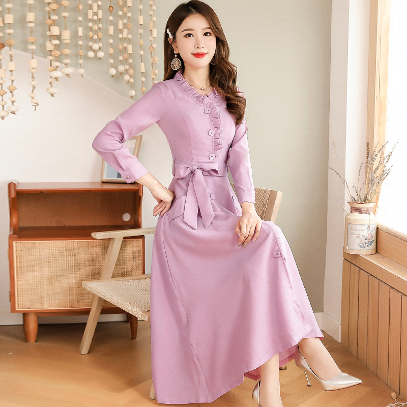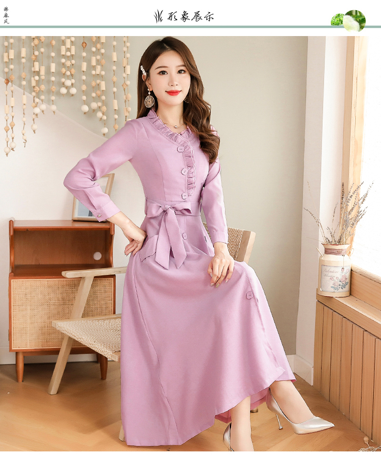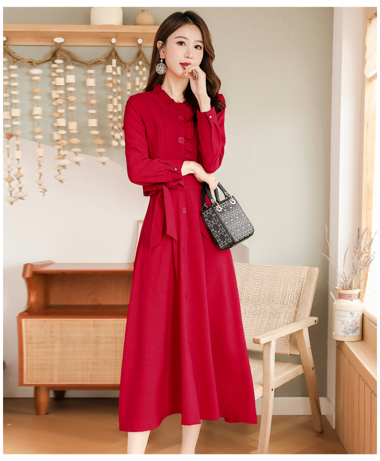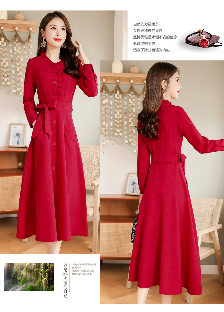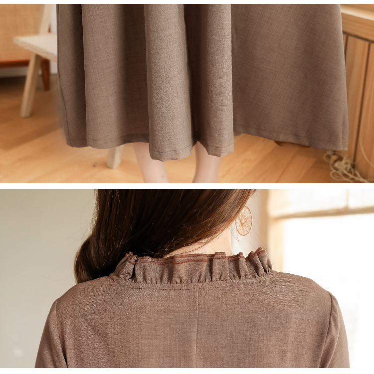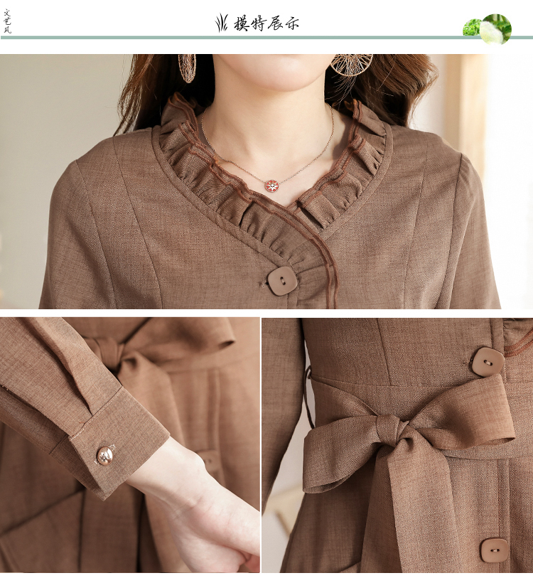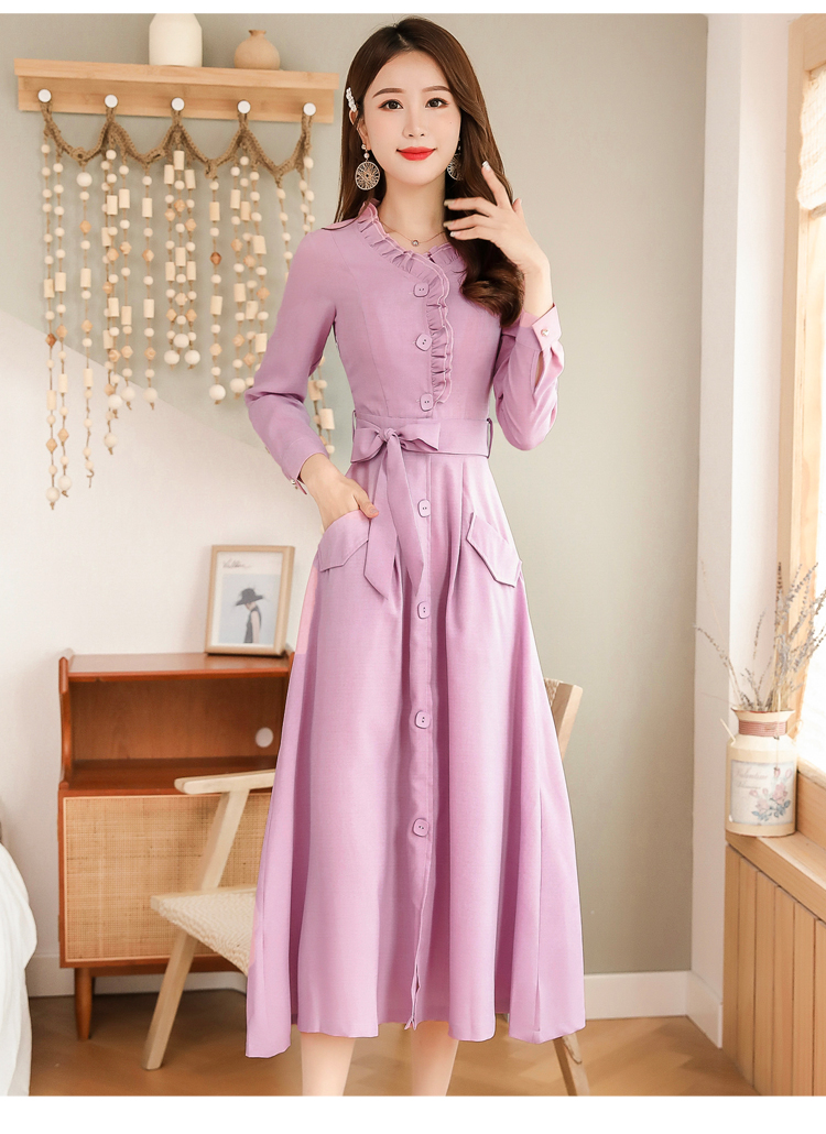 MY13327# 新款流行裙子亚麻收腰显瘦气质长袖棉麻连衣裙女裝貨源服裝批發
