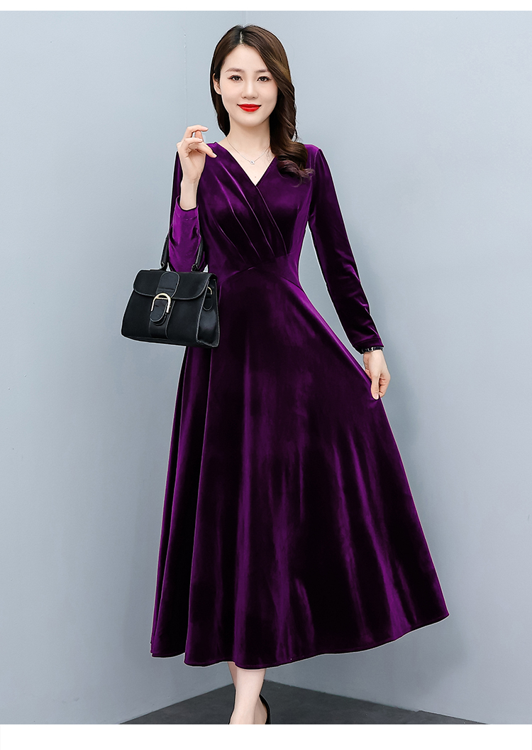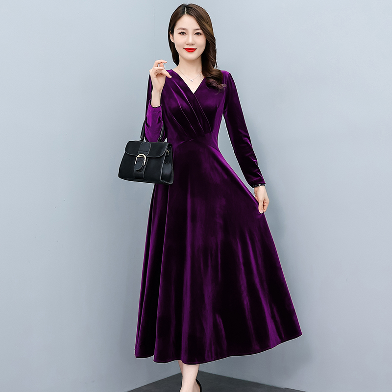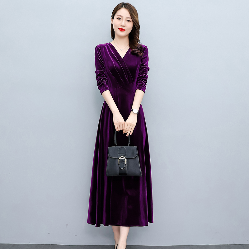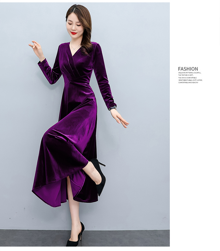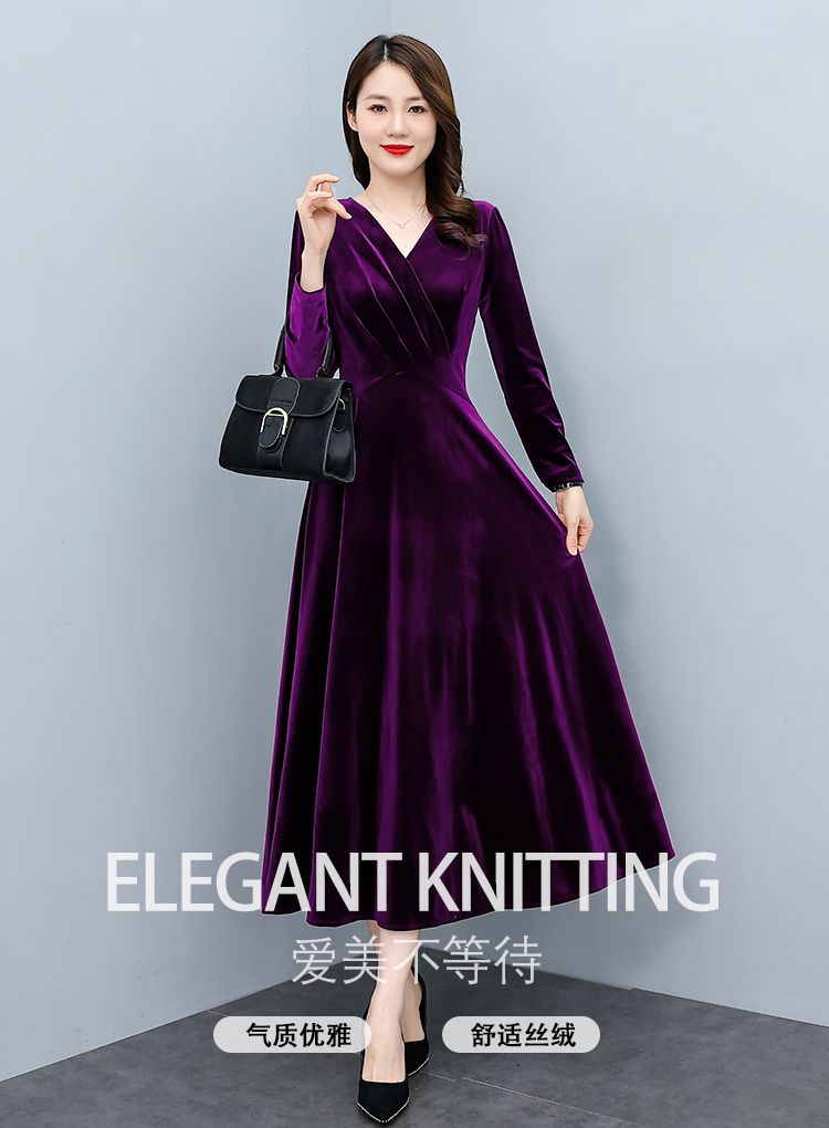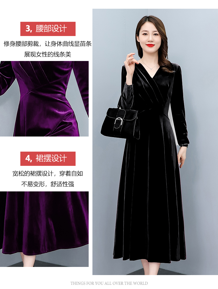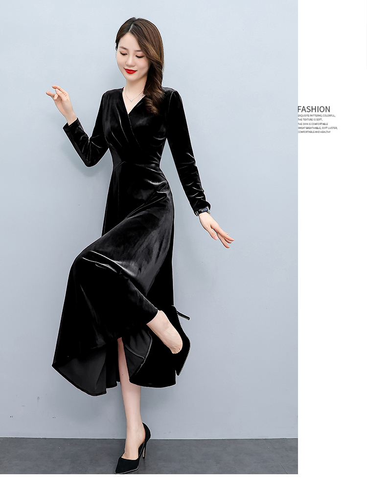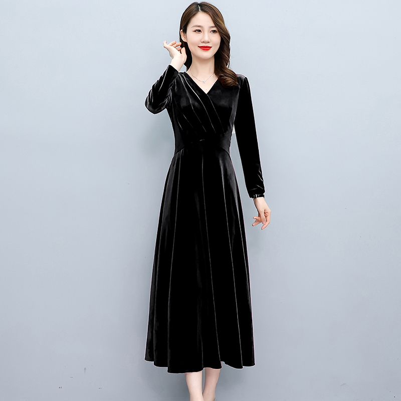 MY13329# 长裙女新款高贵气质中长款打底金丝绒连衣裙女裝貨源服裝批發