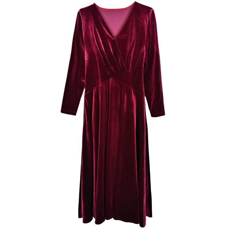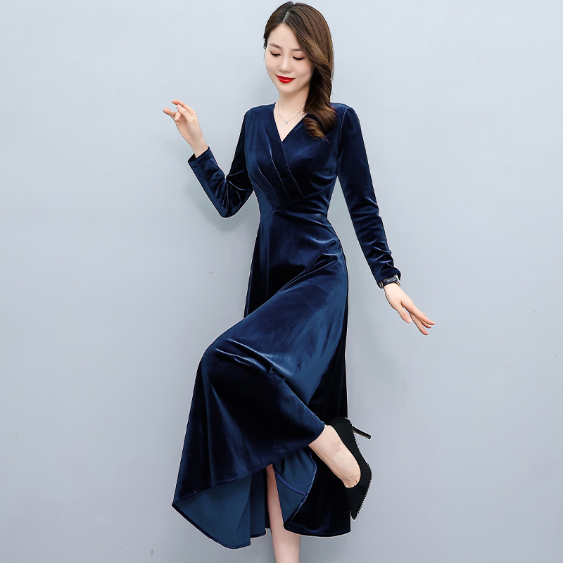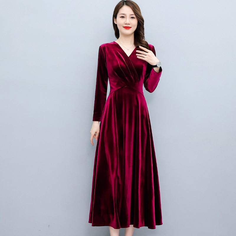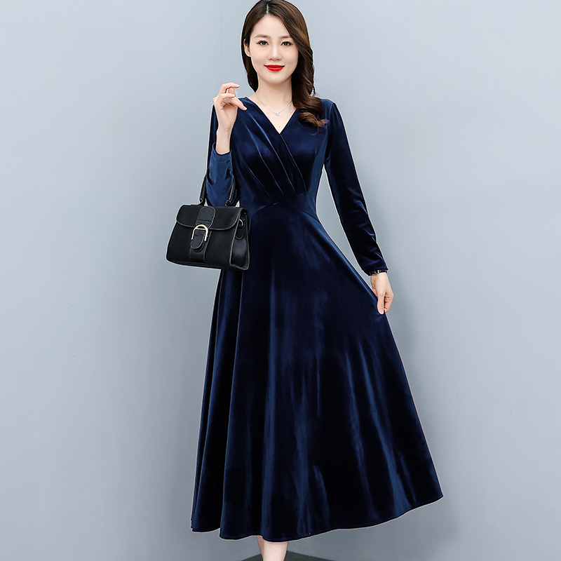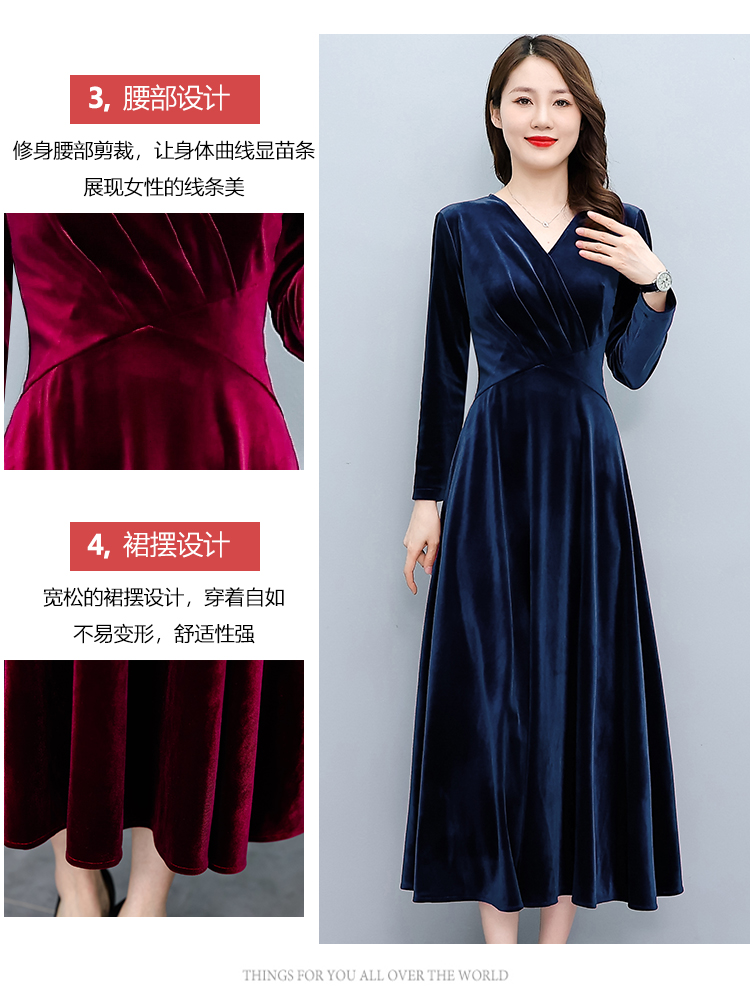 MY13330# 长裙女新款高贵气质中长款打底金丝绒连衣裙女裝貨源服裝批發