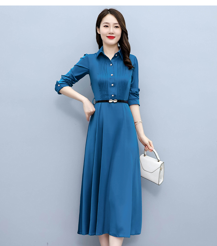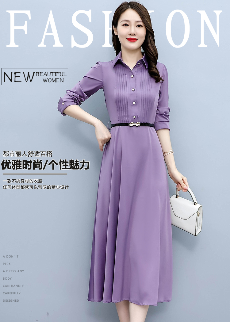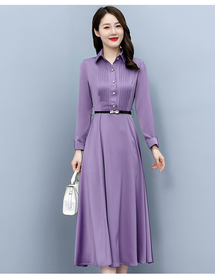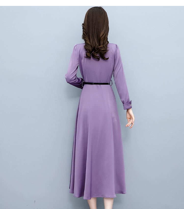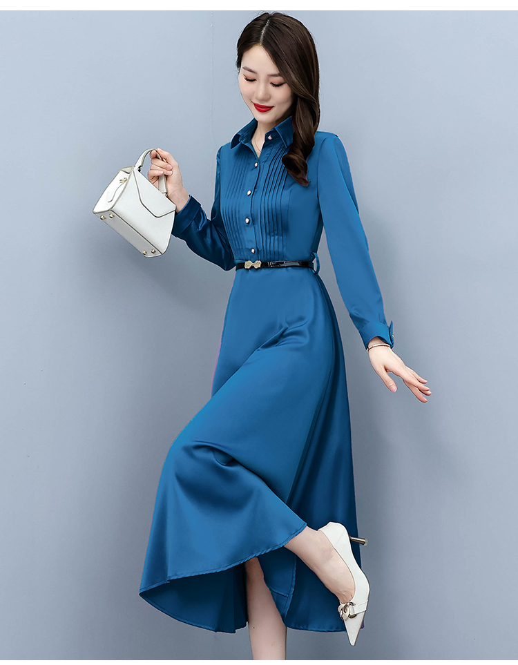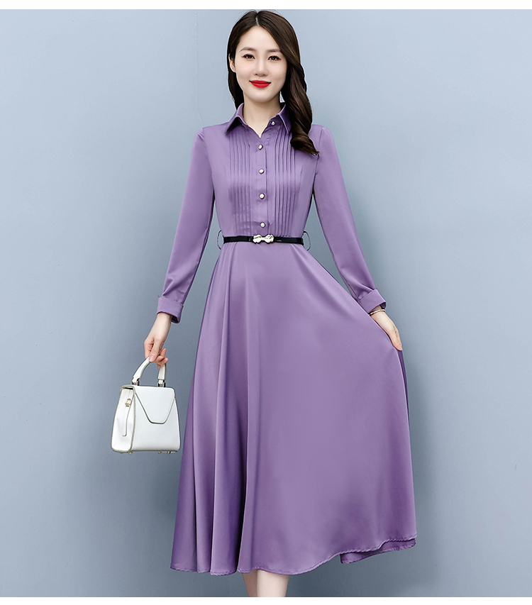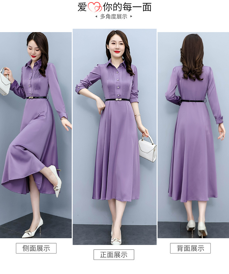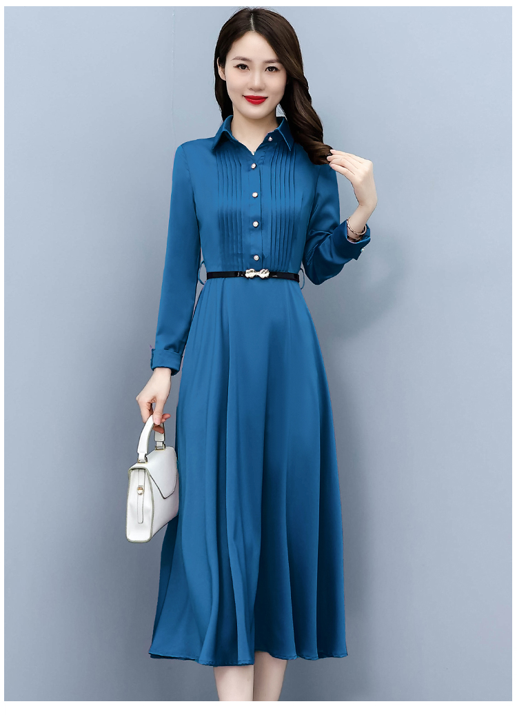 MY13331# 新款醋酸缎面长袖连衣裙气质显瘦遮肚纯色女装女裝貨源服裝批發