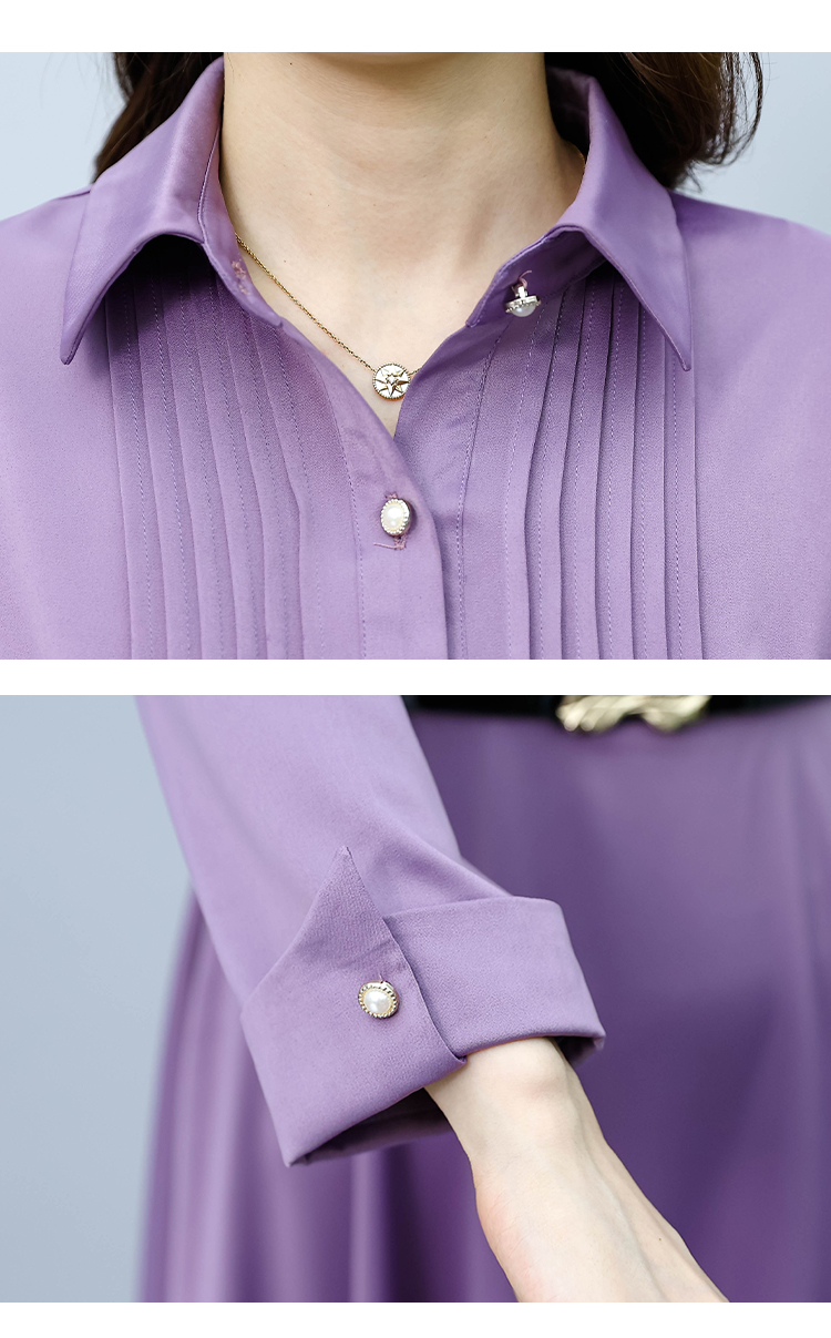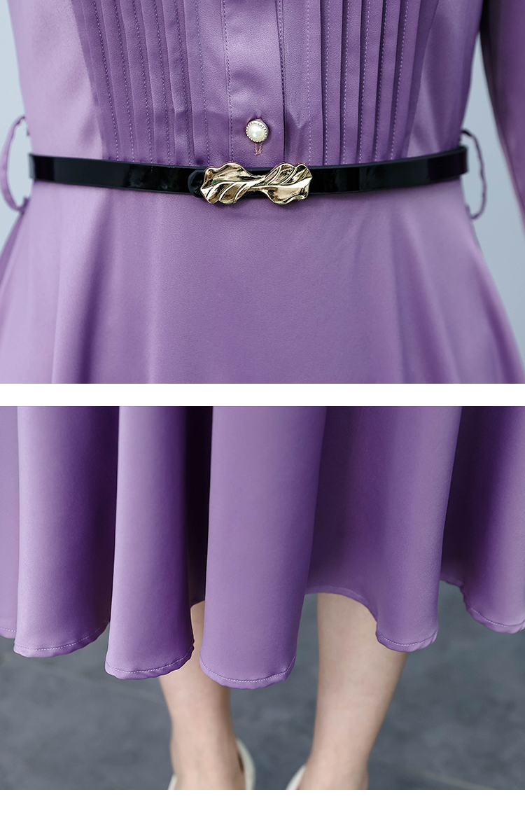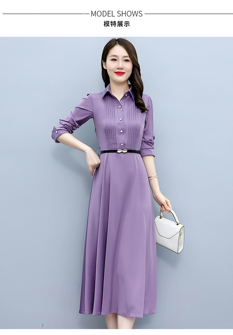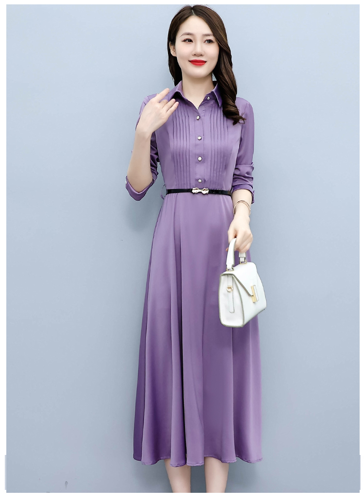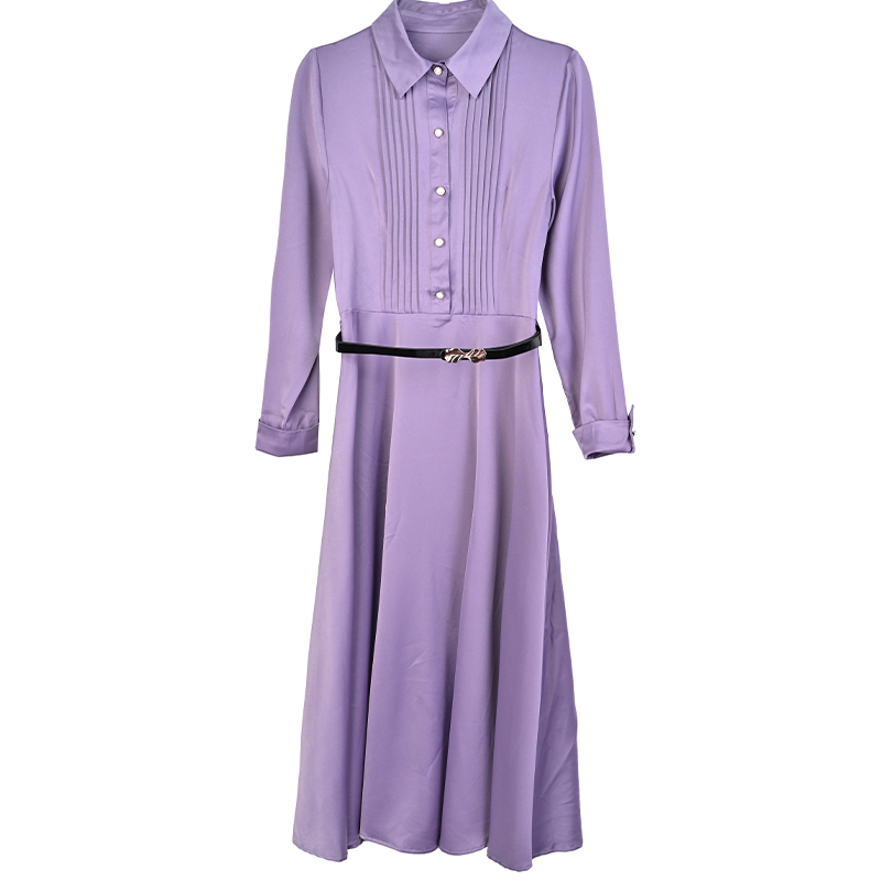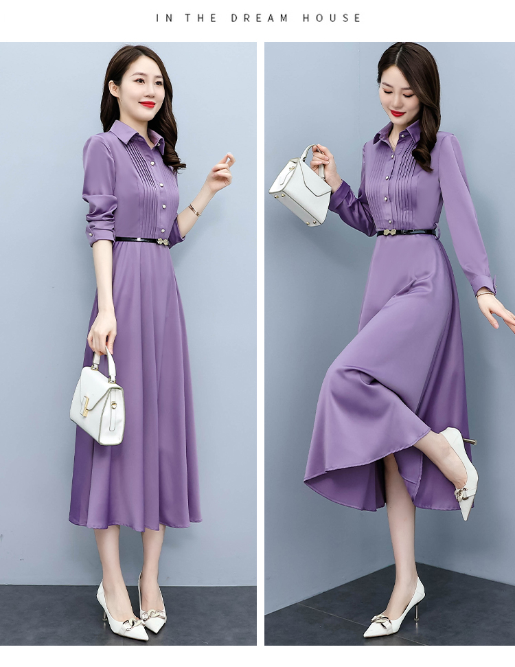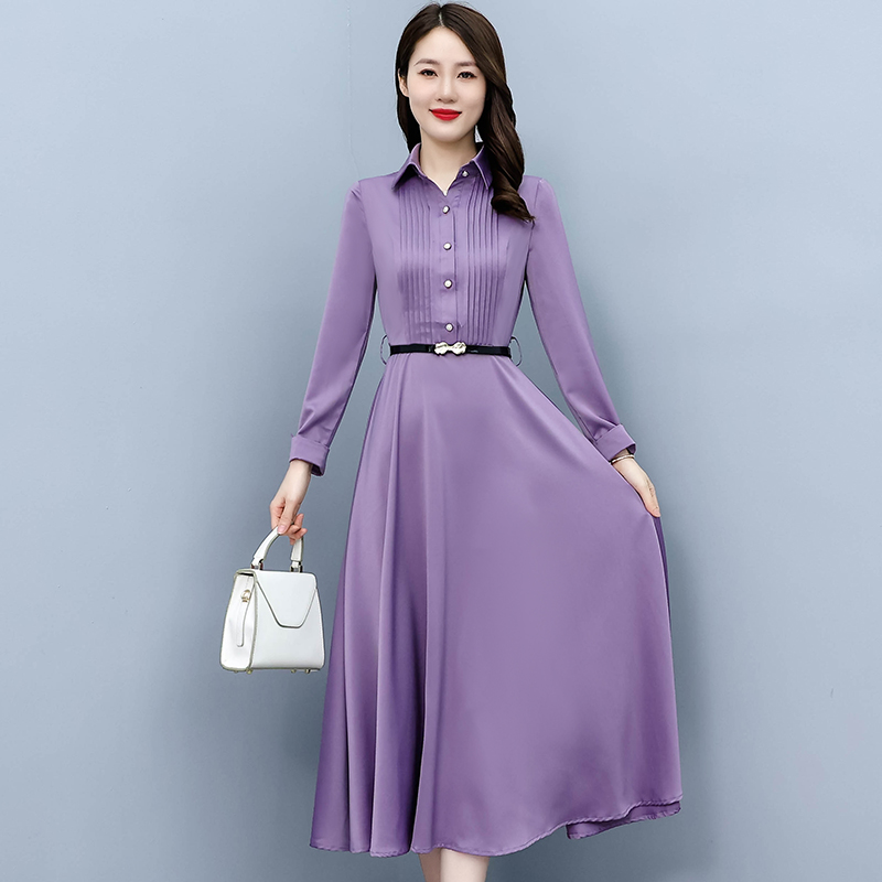 MY13331# 新款醋酸缎面长袖连衣裙气质显瘦遮肚纯色女装女裝貨源服裝批發