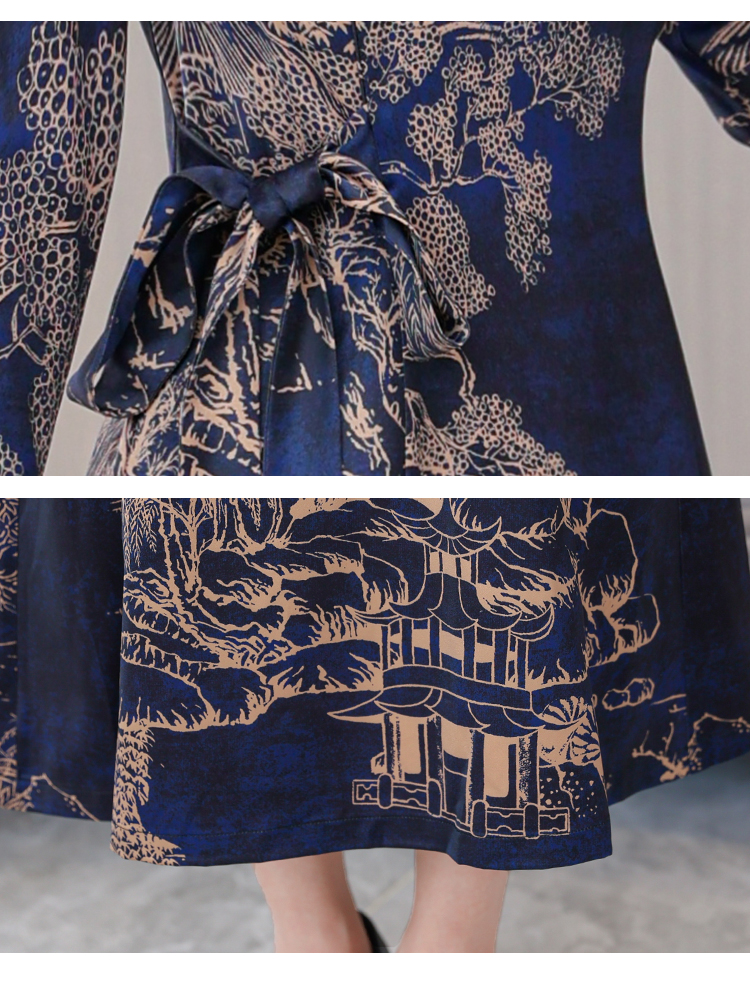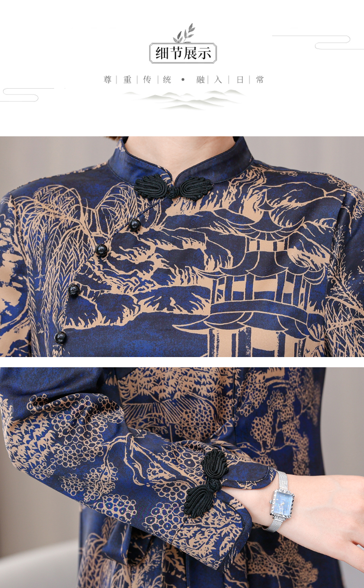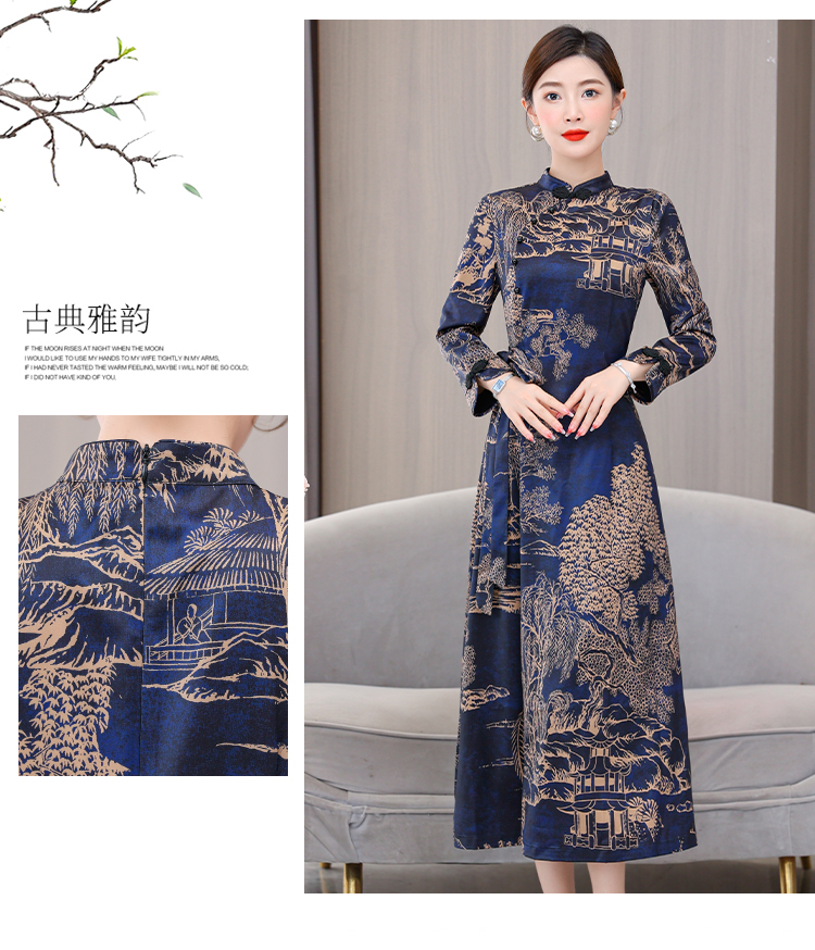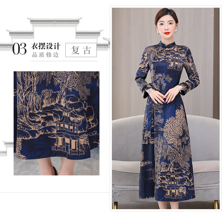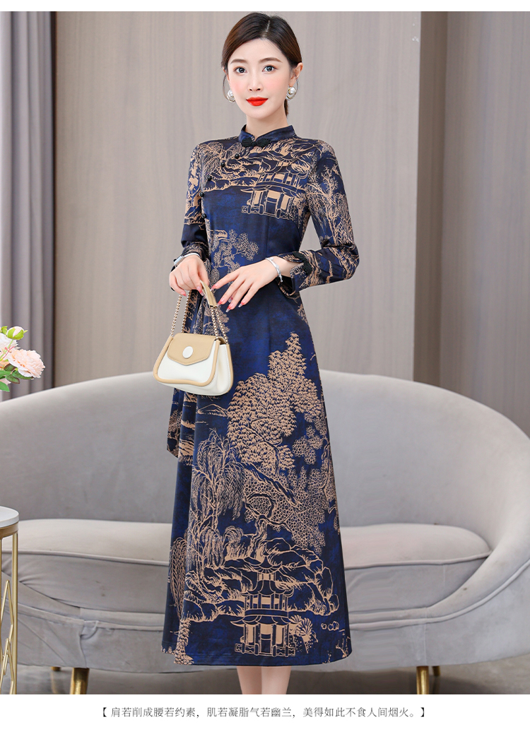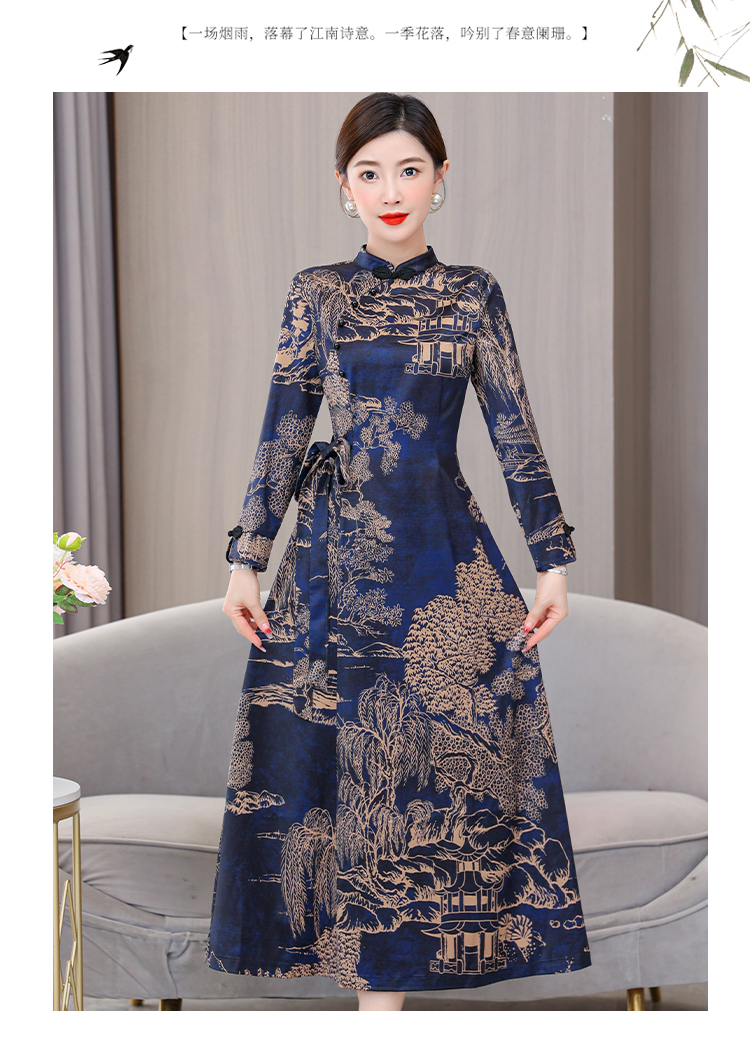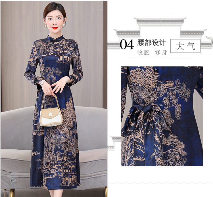 MY13333# 新款长袖缎面旗袍改良连衣裙女气质大码长裙女裝貨源服裝批發