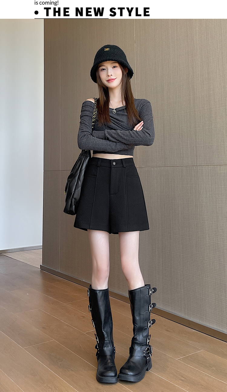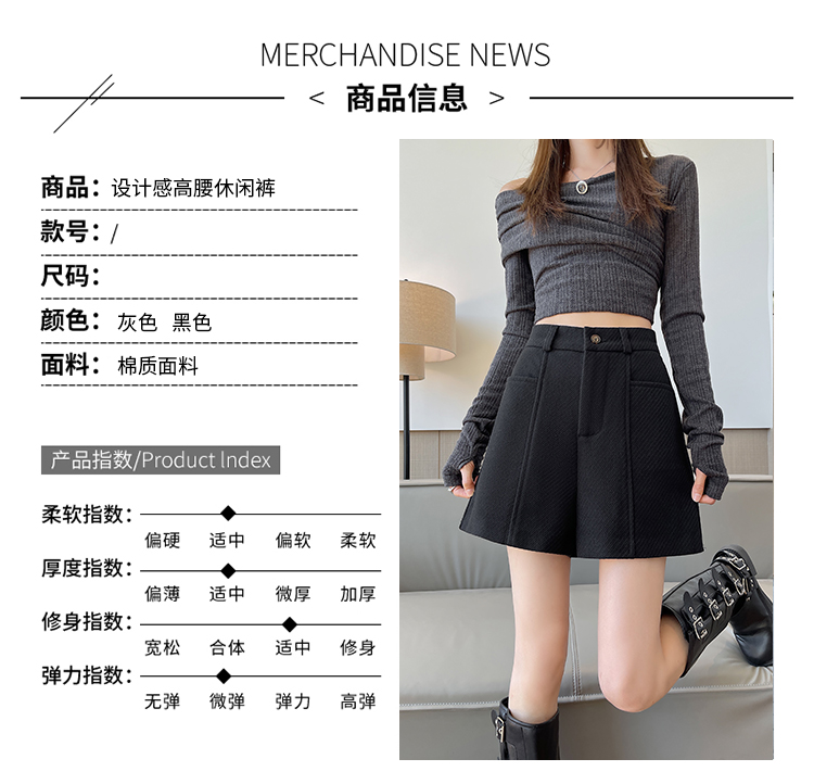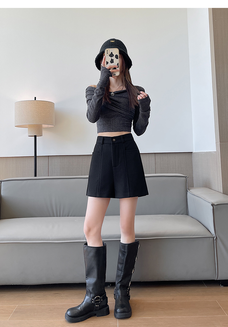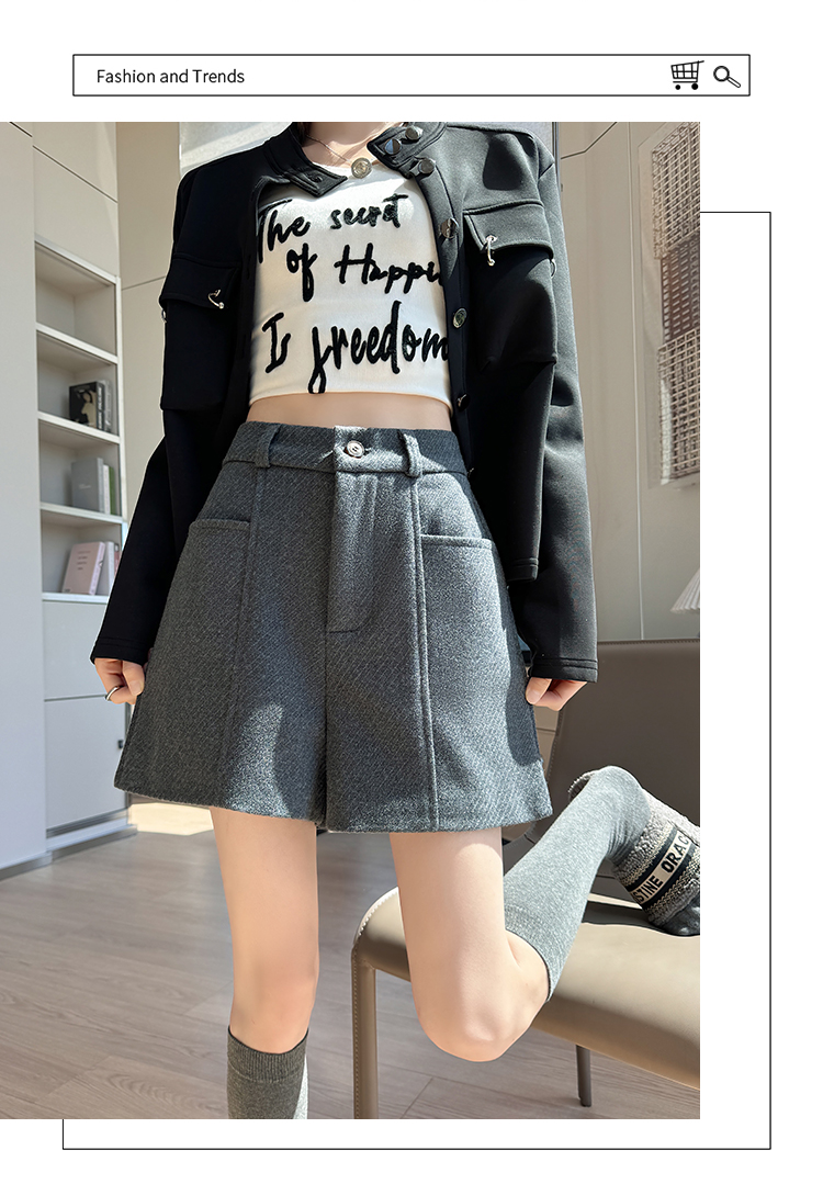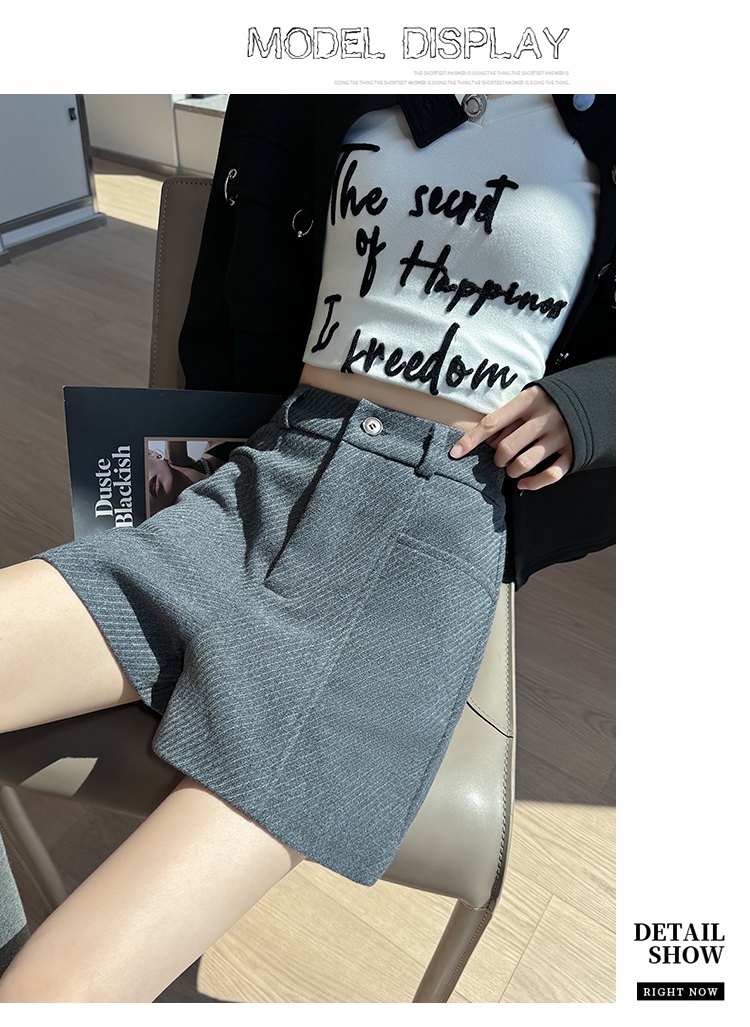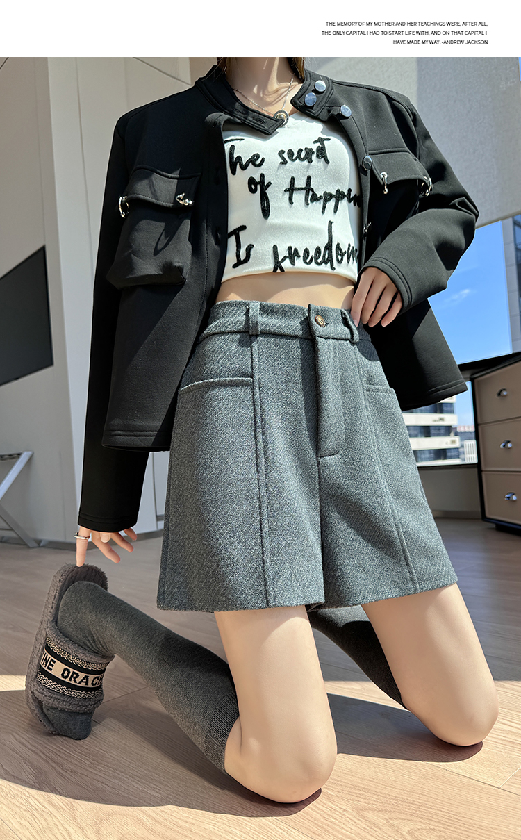 MY13573# 灰色高腰毛呢短裤百搭外穿显瘦a字裤休闲靴裤子女裝貨源服裝批發