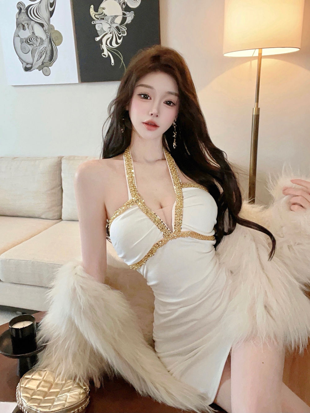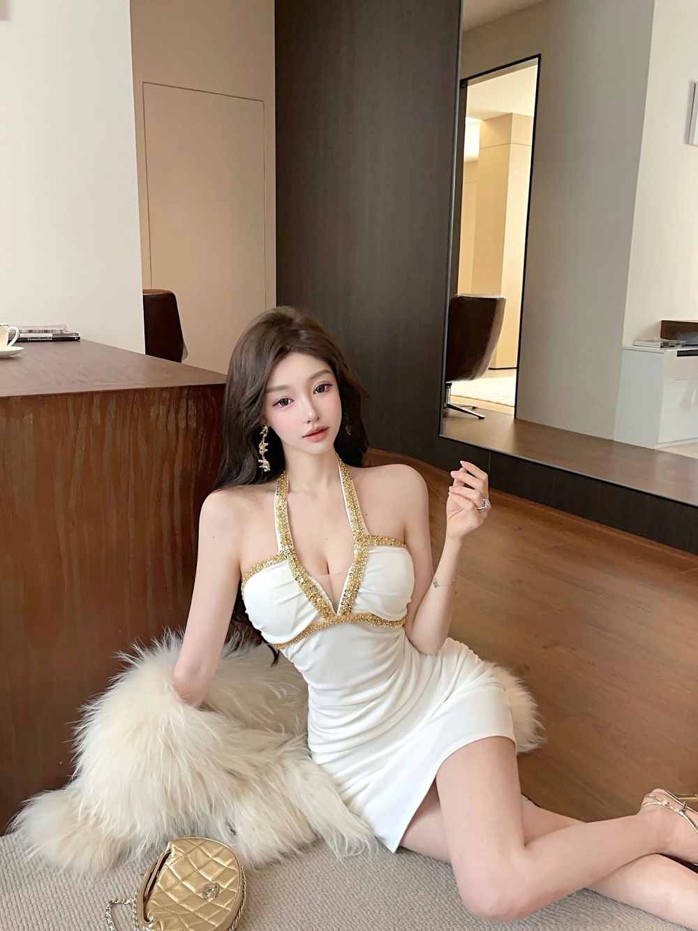 MY13629# 法式性感气质名媛设计感挂脖宴会礼服包臀连衣裙女裝貨源服裝批發