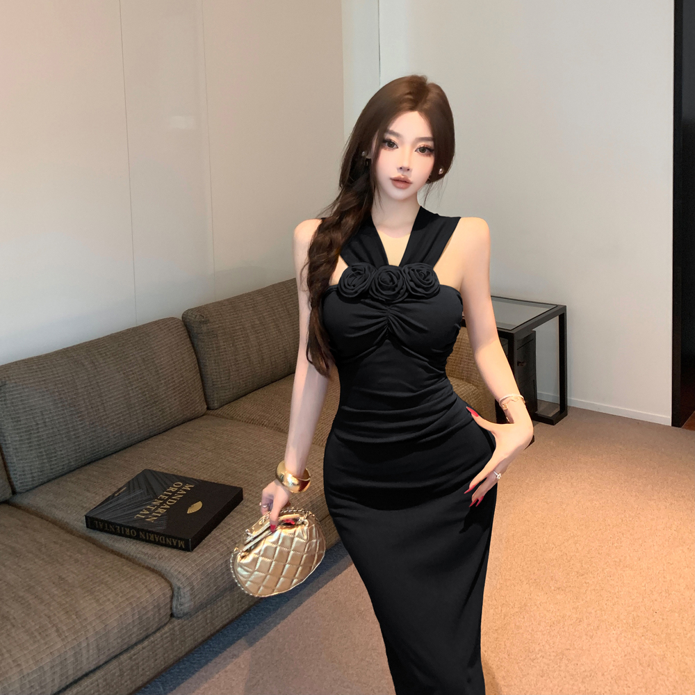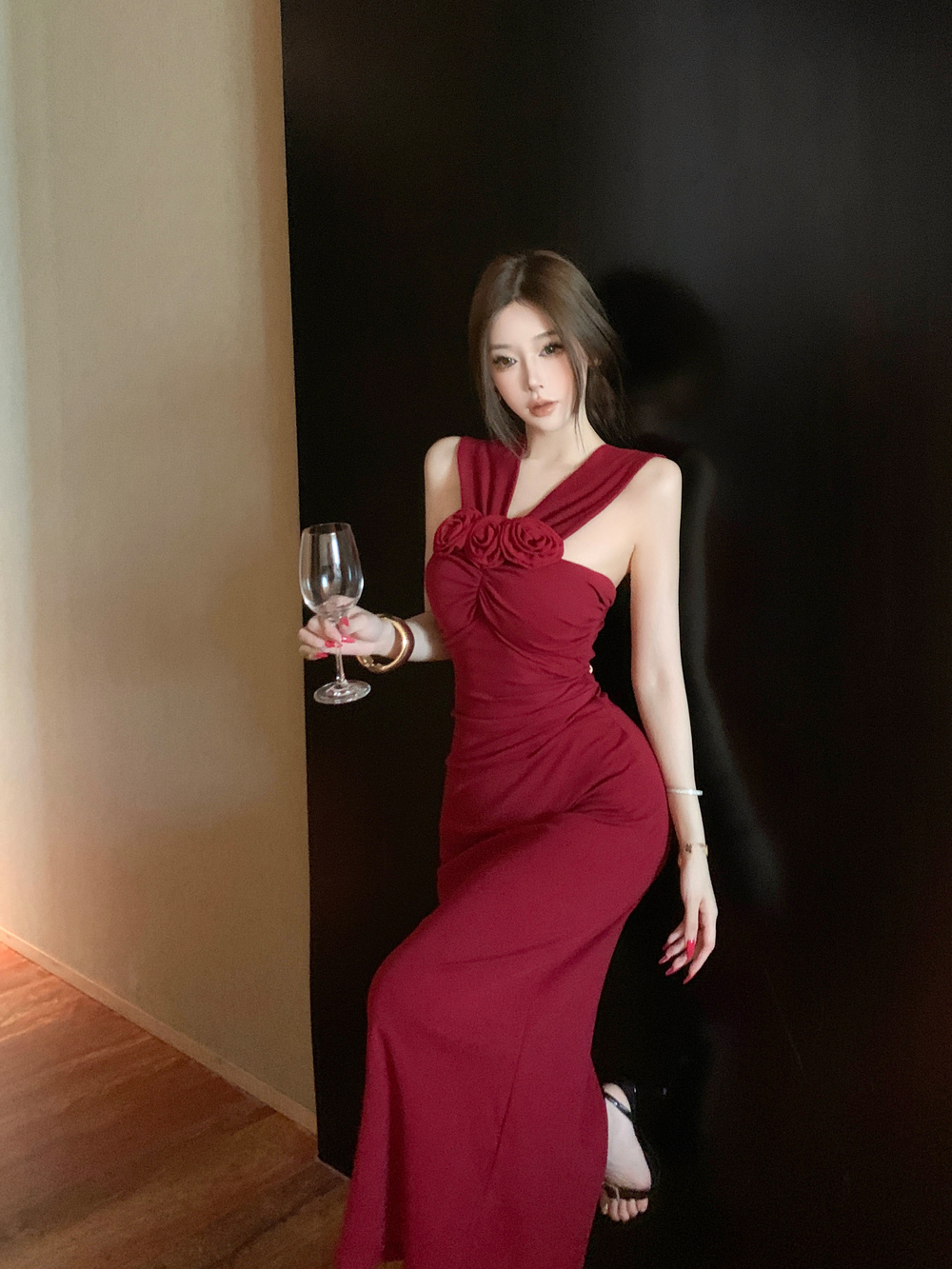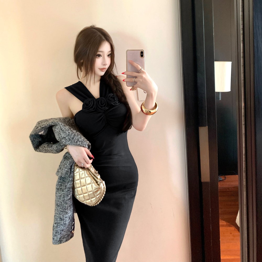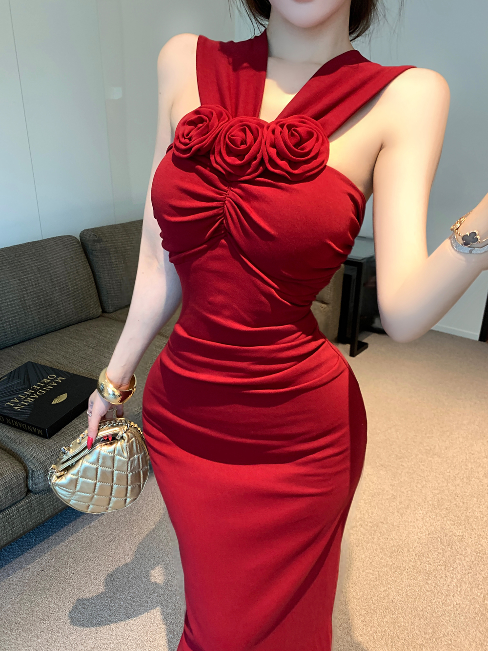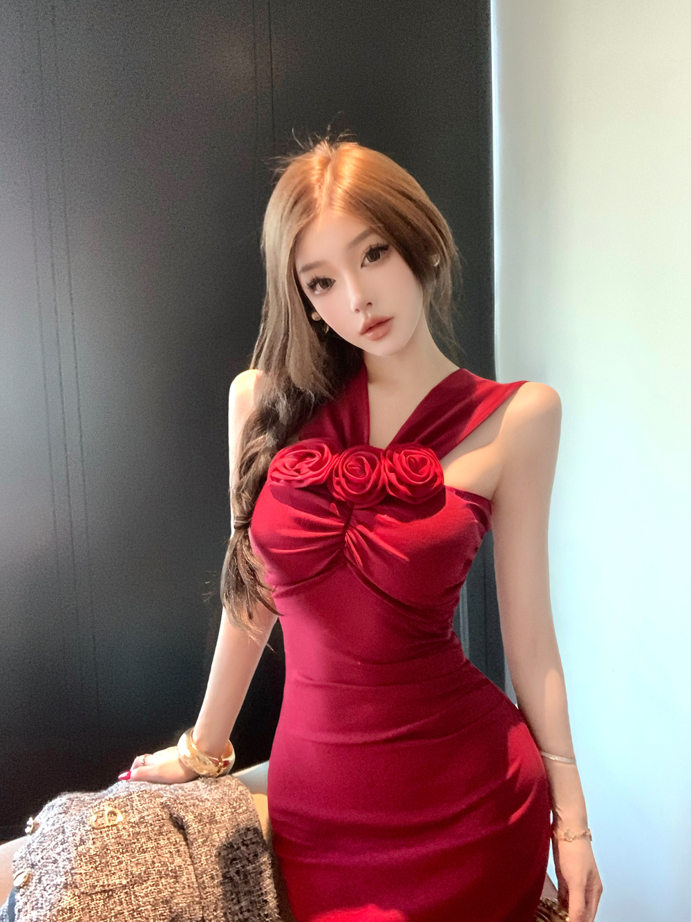 MY13633# 法式名媛性感一字肩立体花朵收腰显瘦包臀连衣裙女裝貨源服裝批發