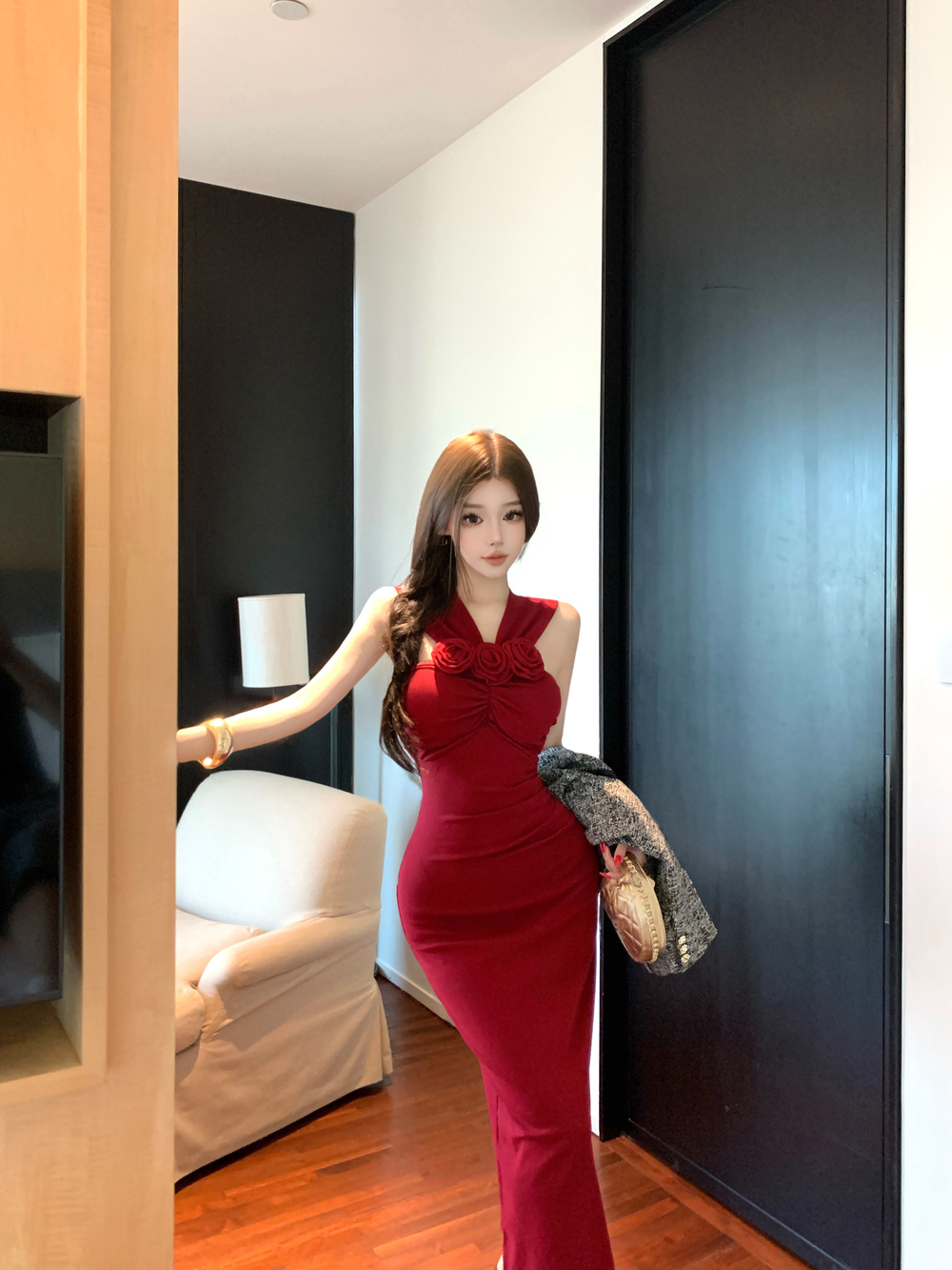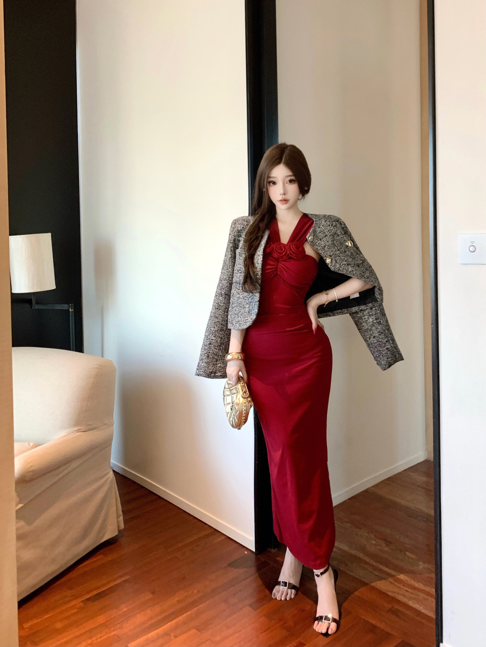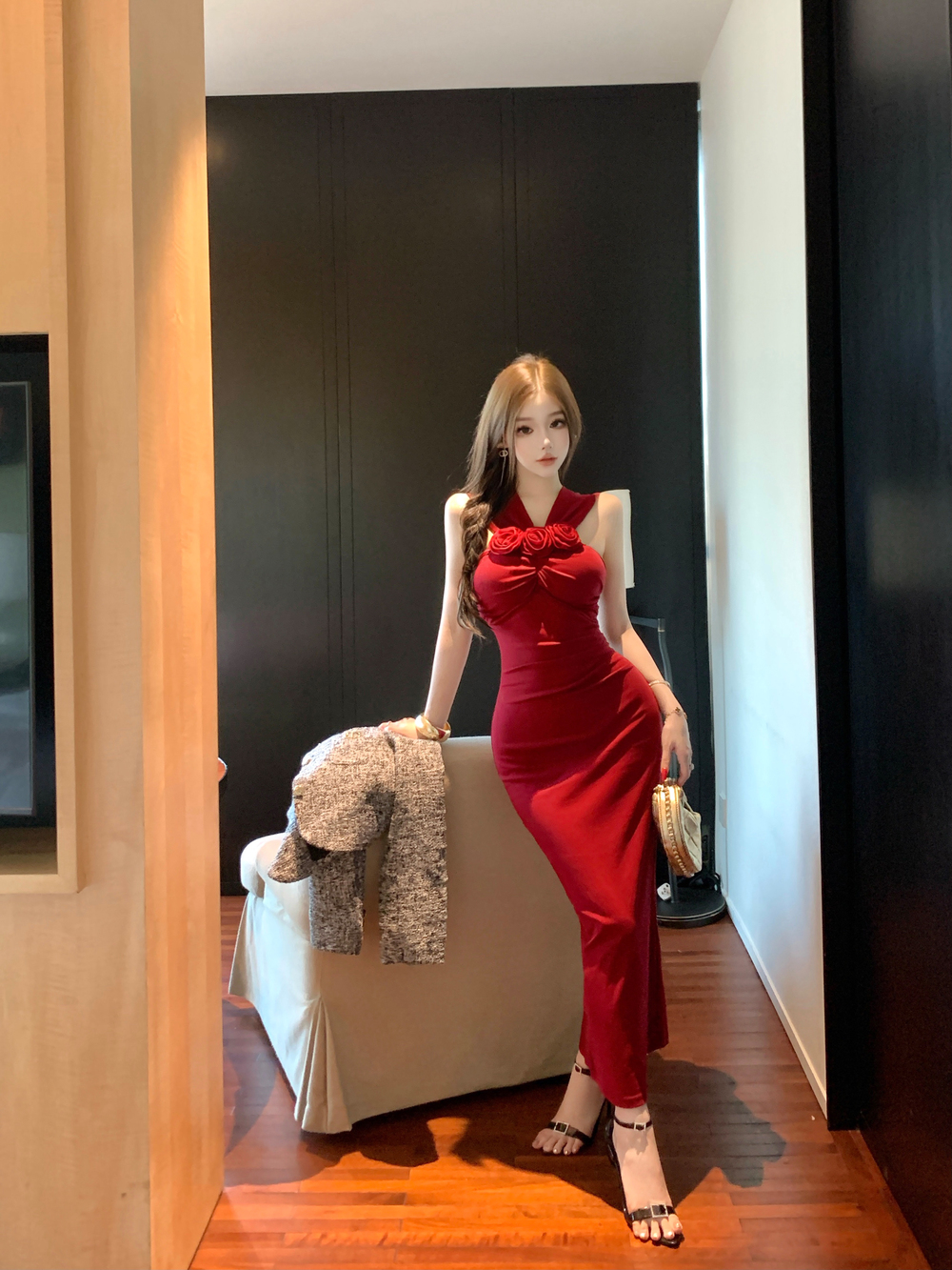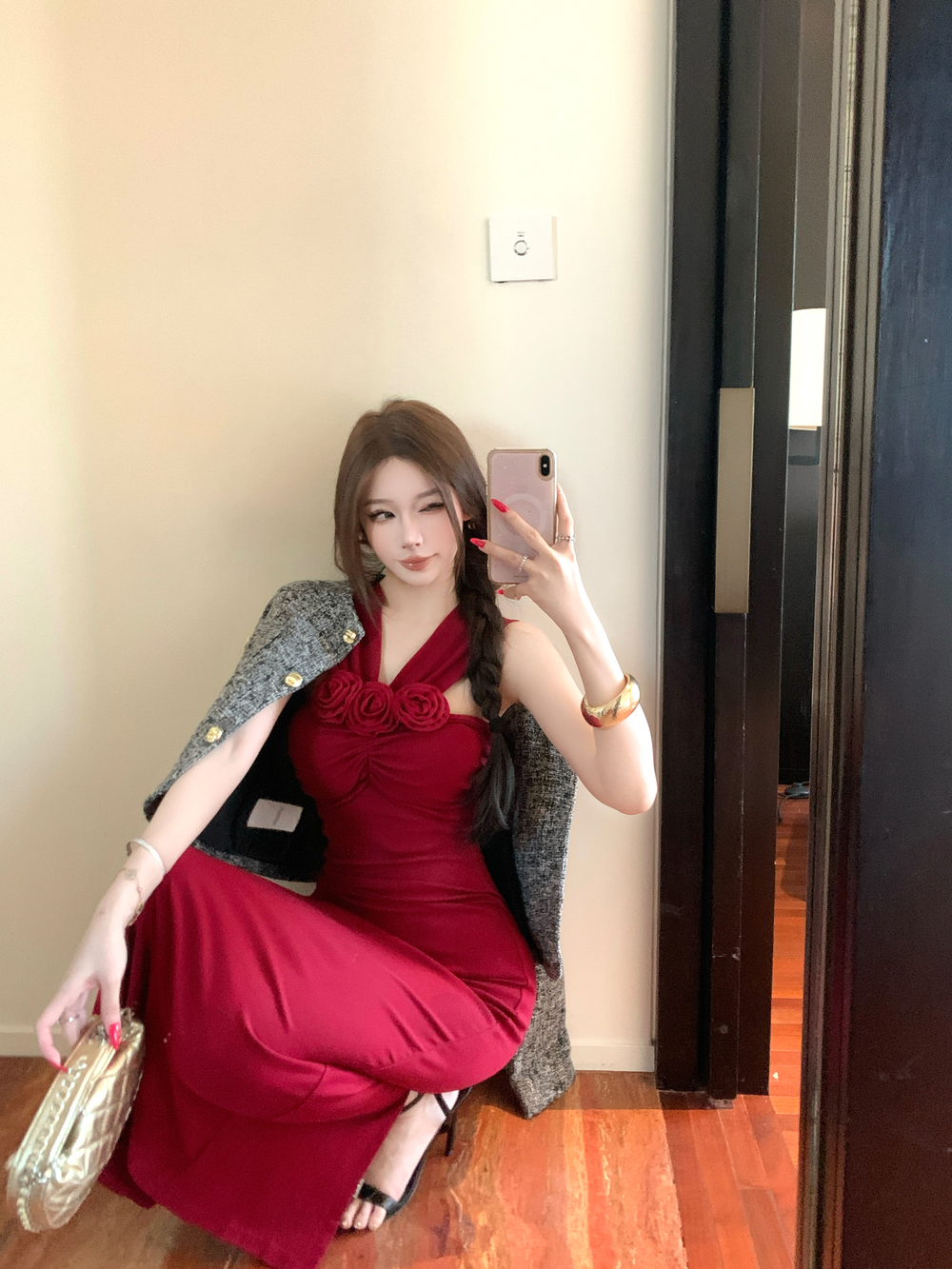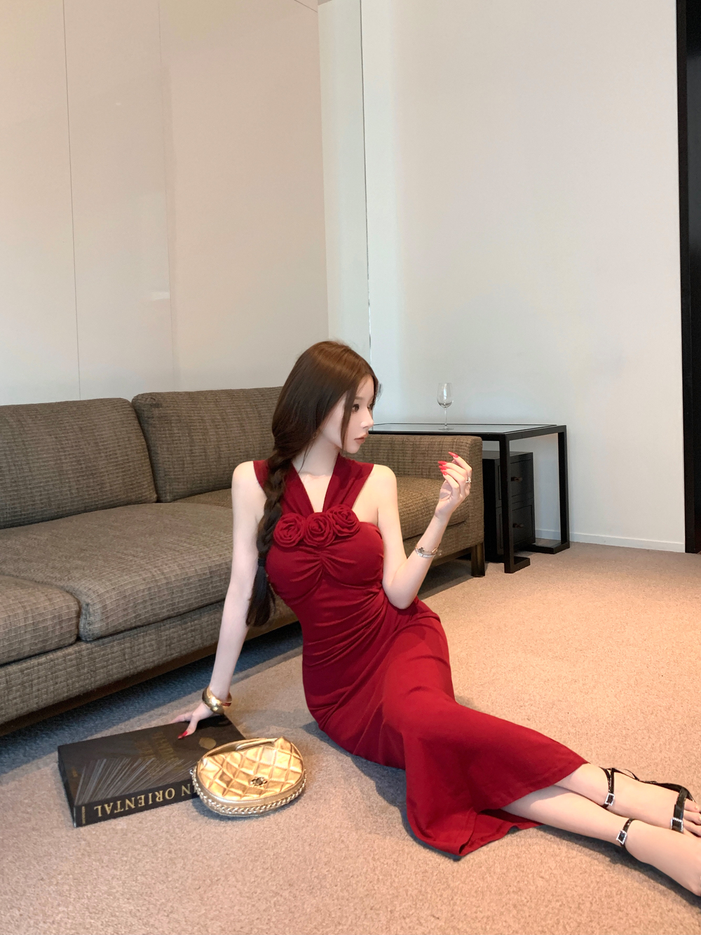 MY13633# 法式名媛性感一字肩立体花朵收腰显瘦包臀连衣裙女裝貨源服裝批發