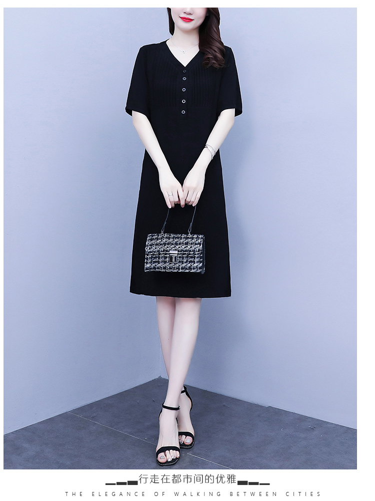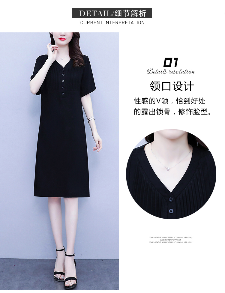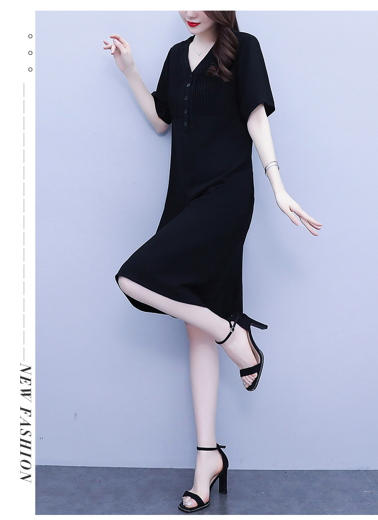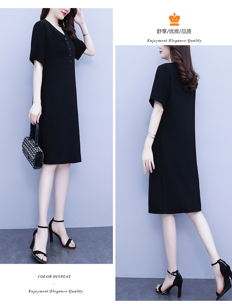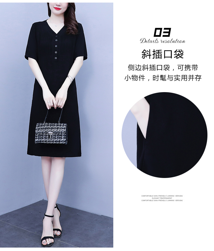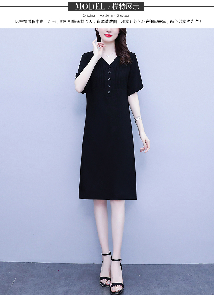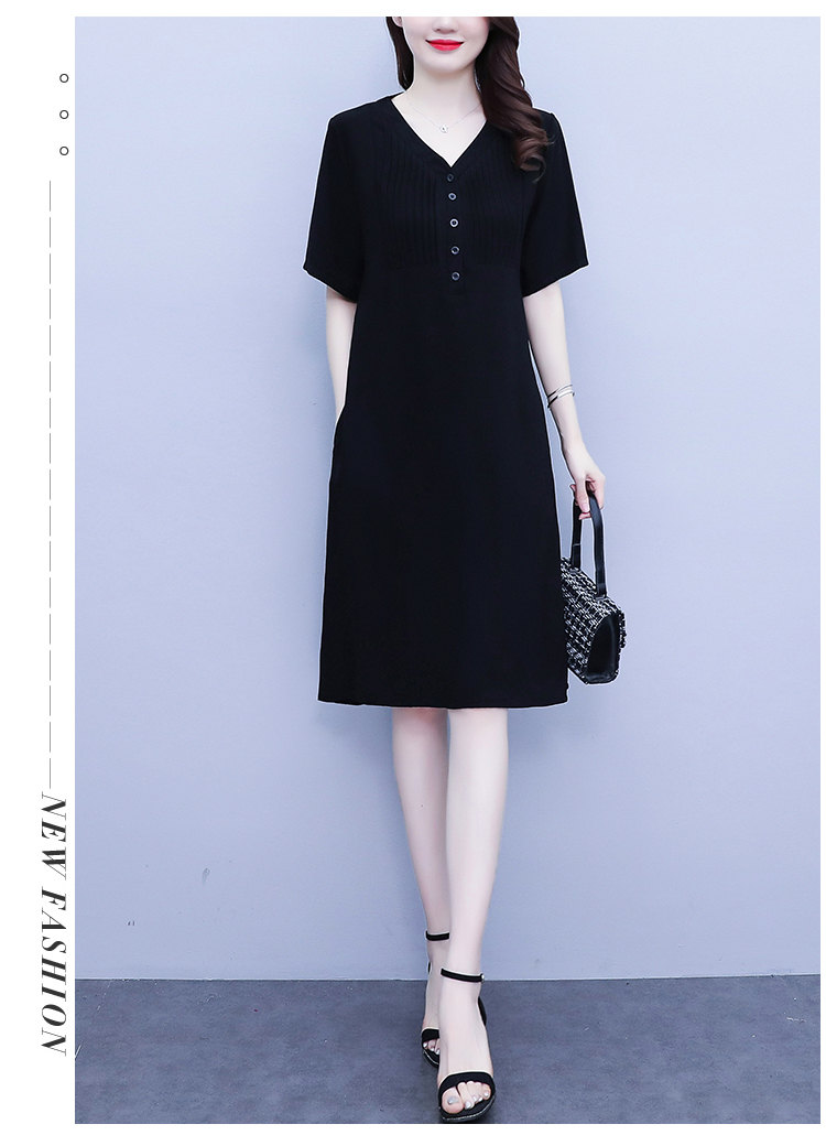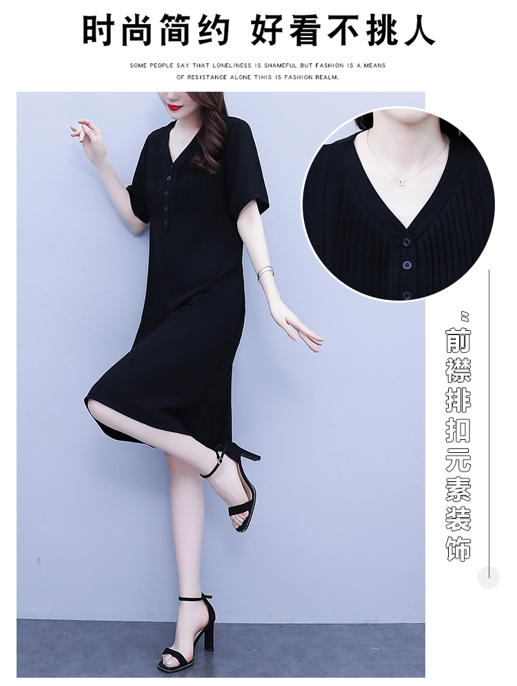 BY9151#夏季新款大码V领黑色雪纺宽松时尚气质遮肚显瘦连衣裙