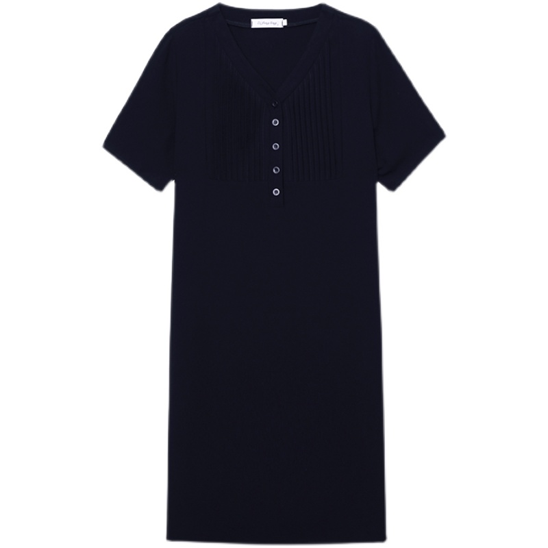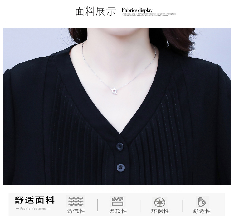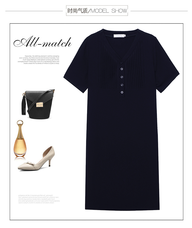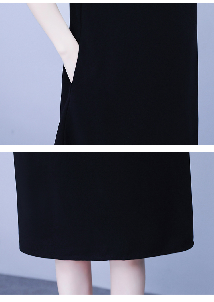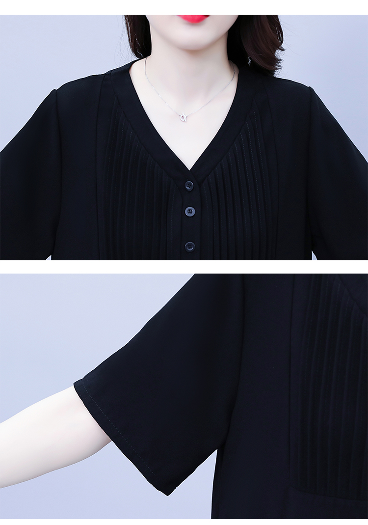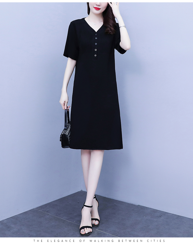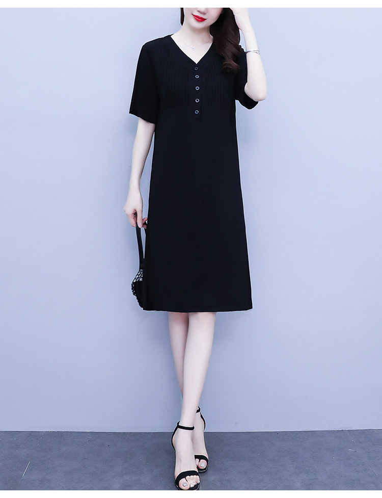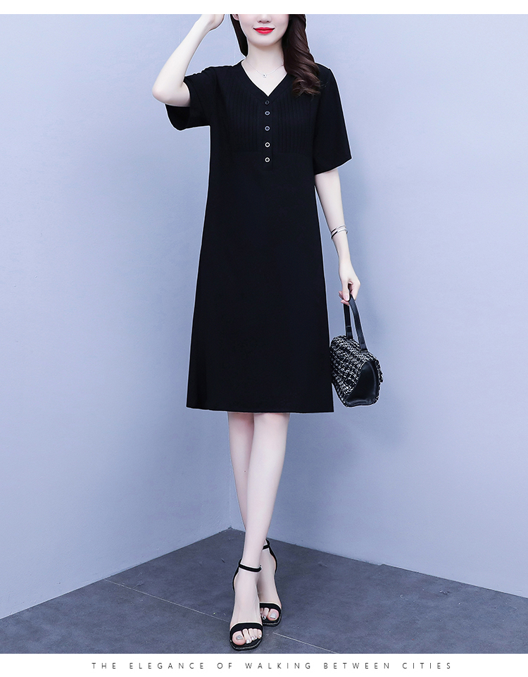 BY9151#夏季新款大码V领黑色雪纺宽松时尚气质遮肚显瘦连衣裙
