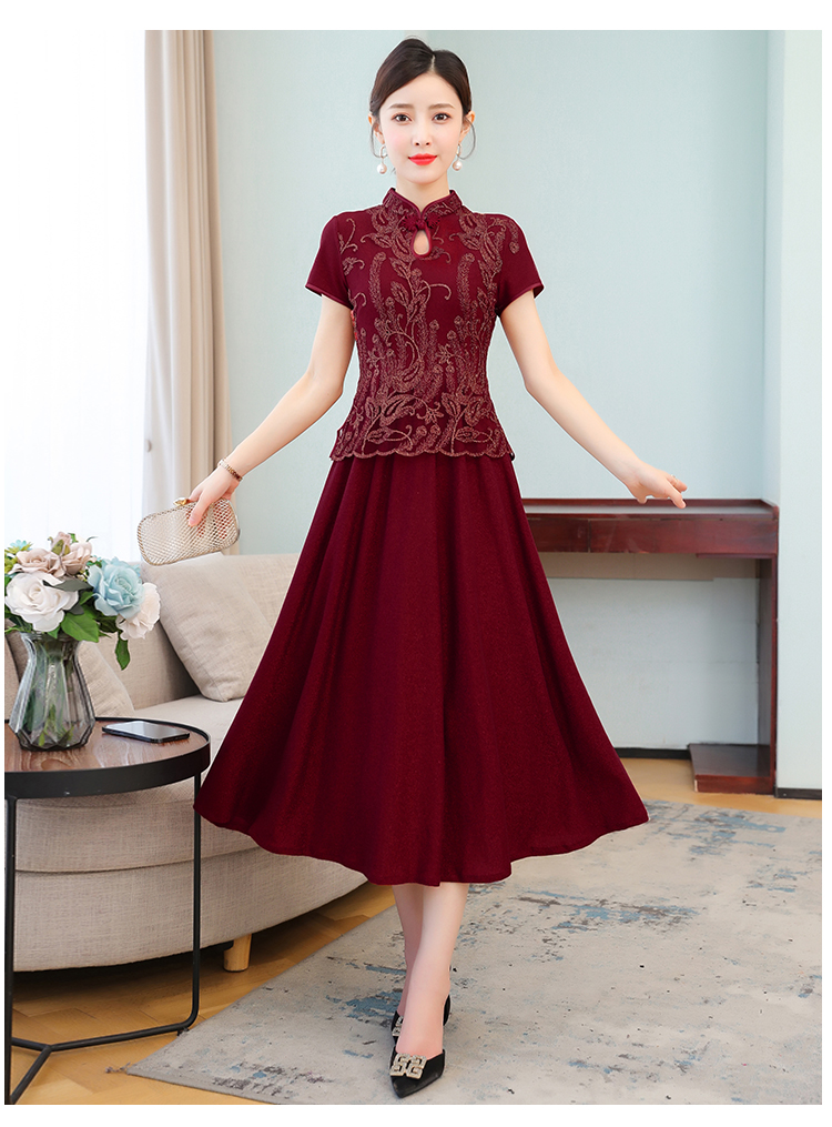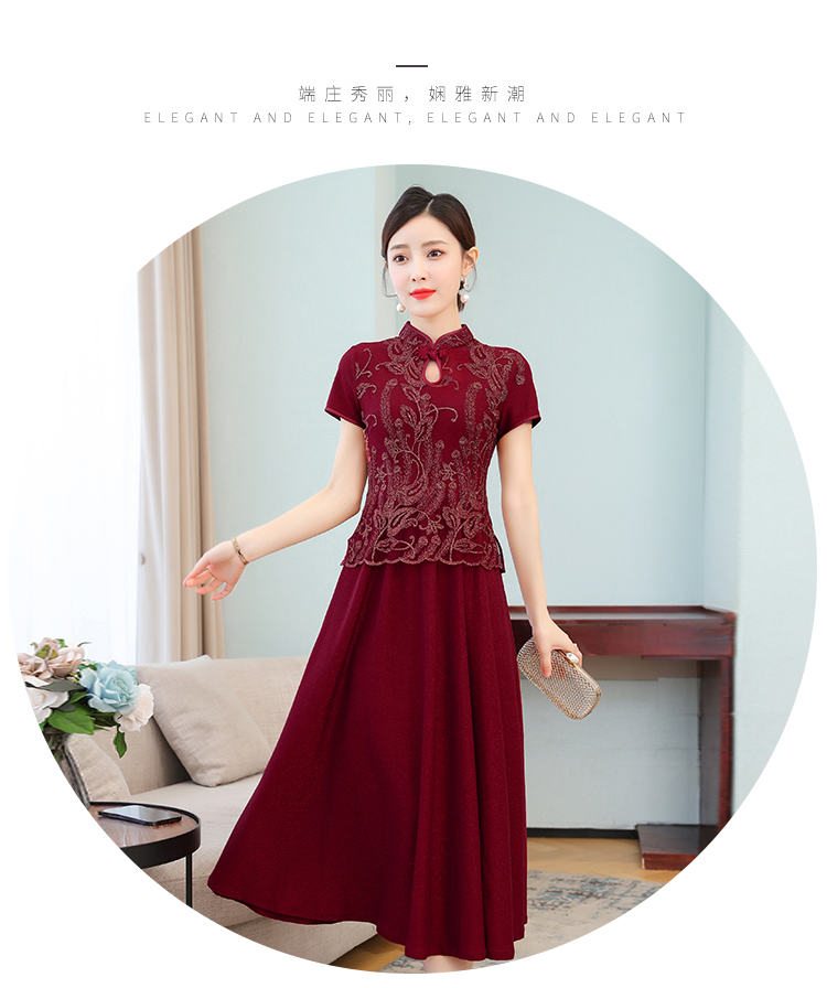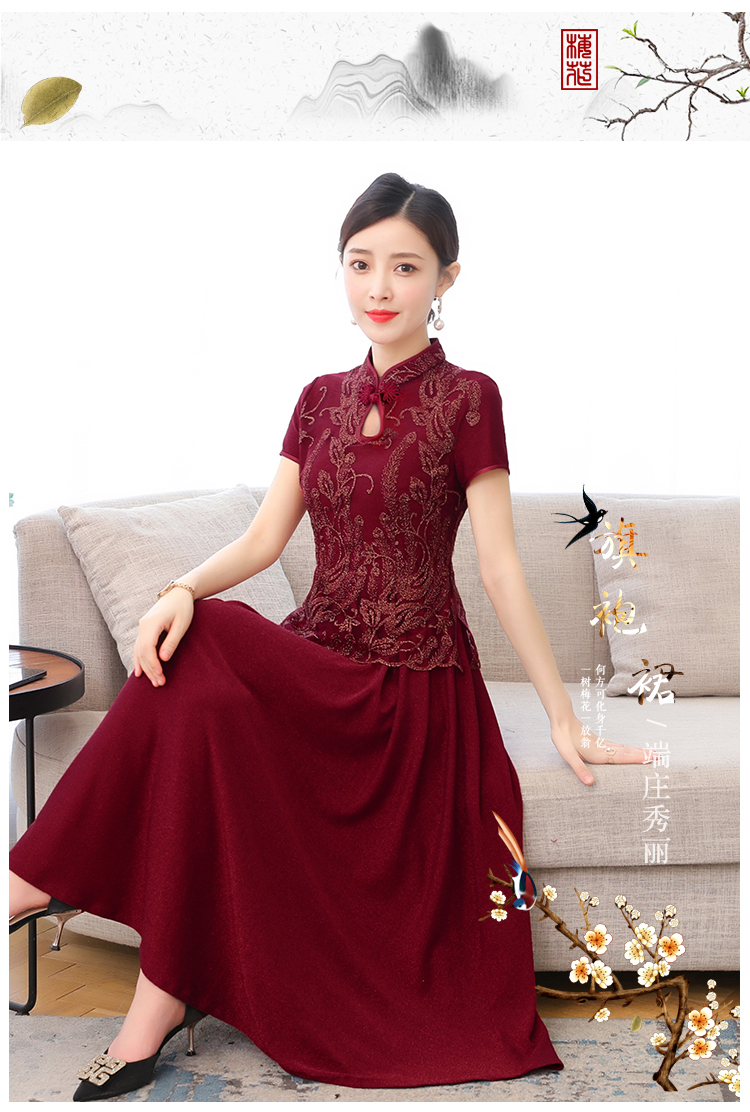 BY9153#婚礼喜婆婆妈妈改良旗袍连衣裙结婚宴装红色晚礼服高贵