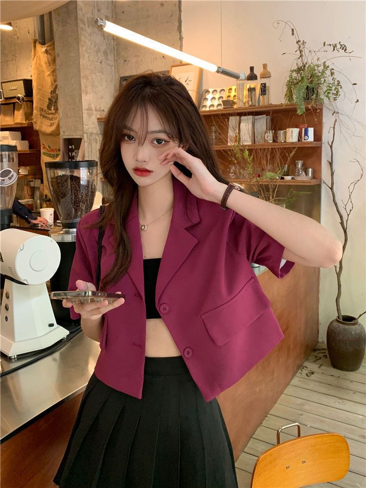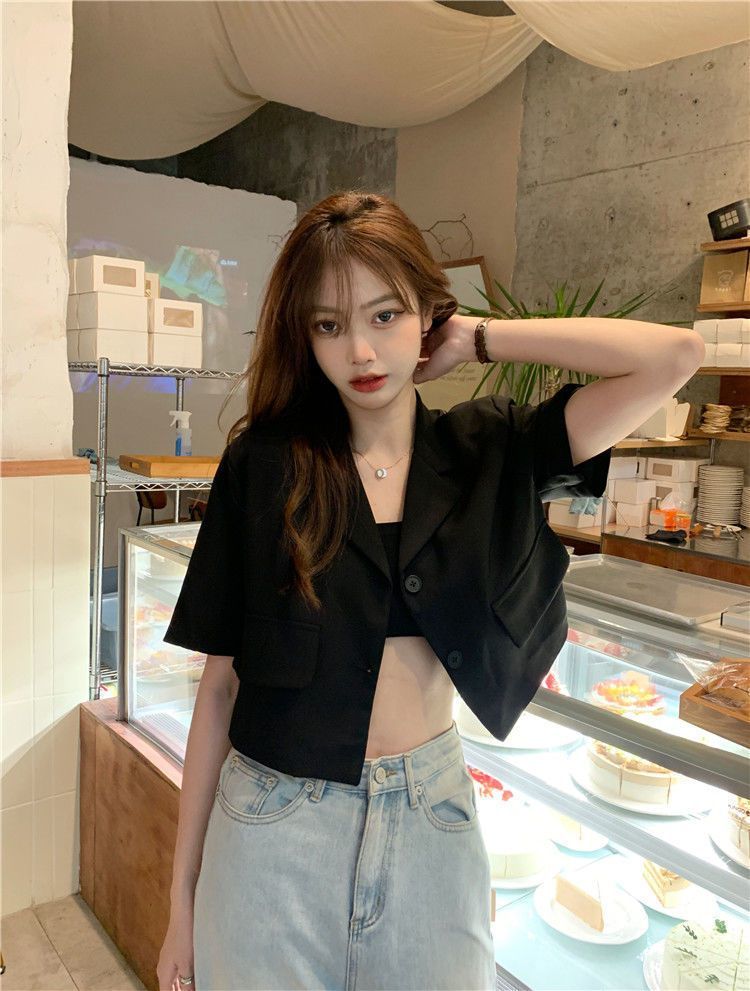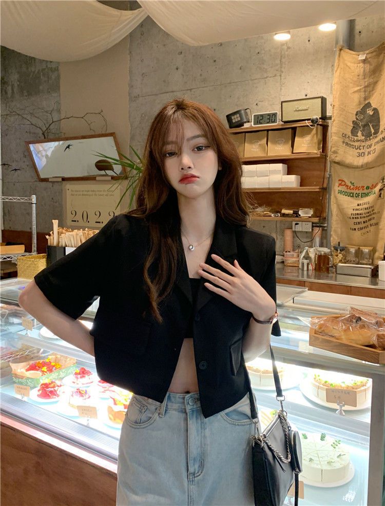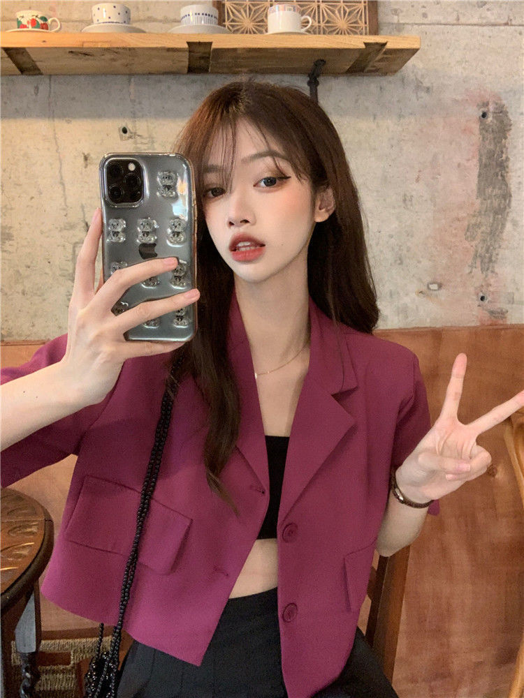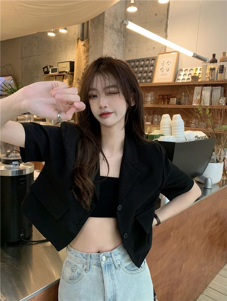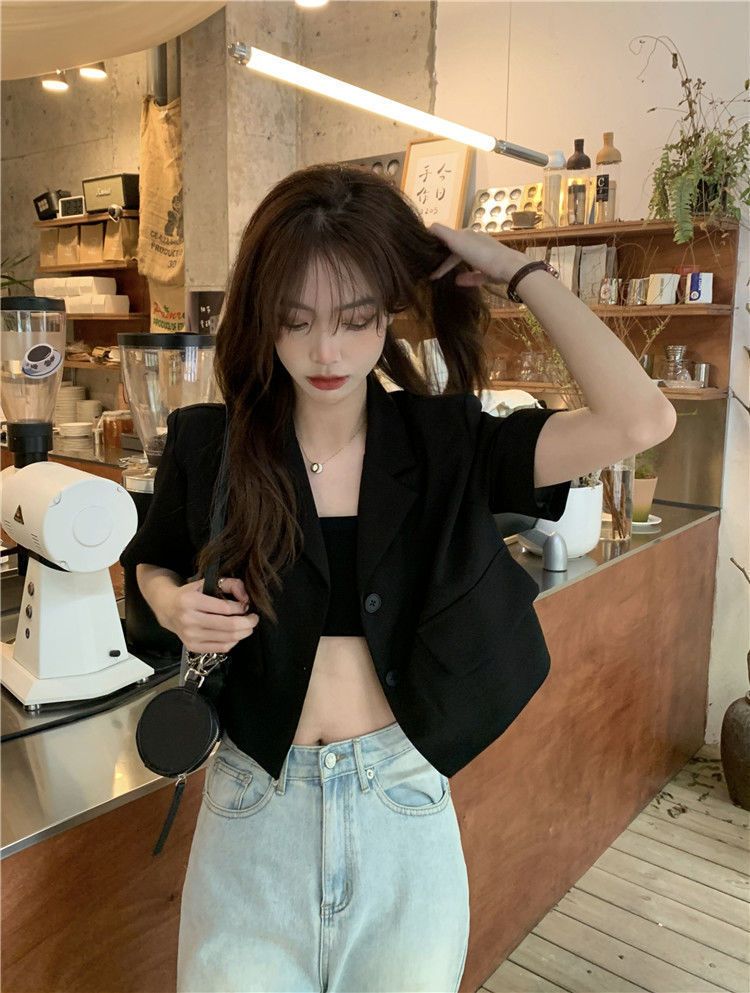 BY9155#短款西装短袖外套夏季新款甜酷辣妹炸街时尚小西服女ins