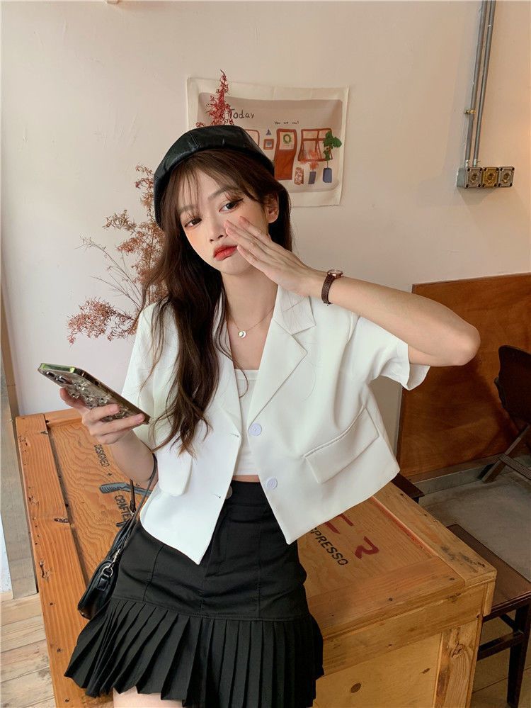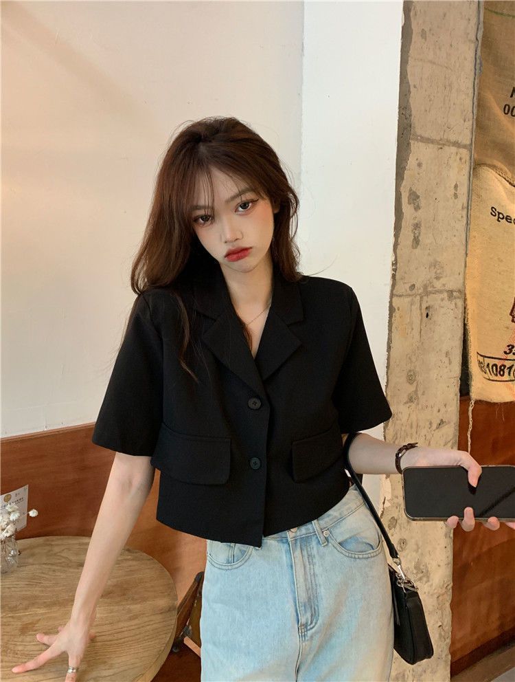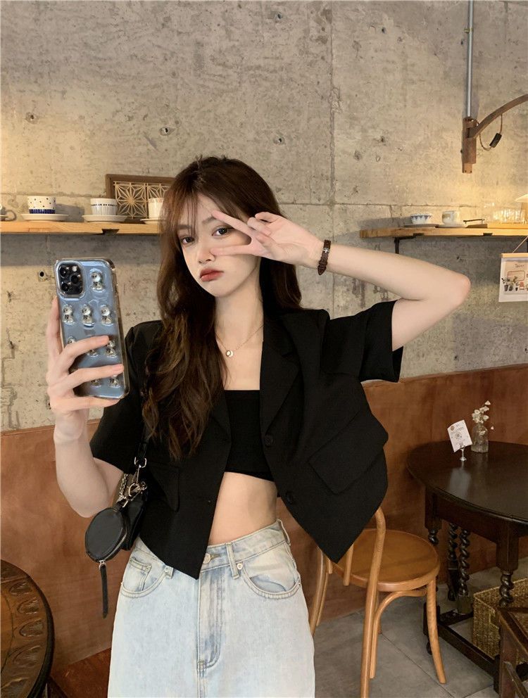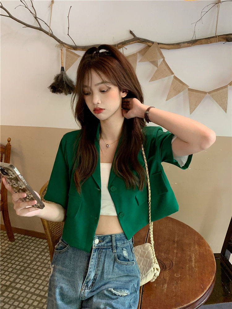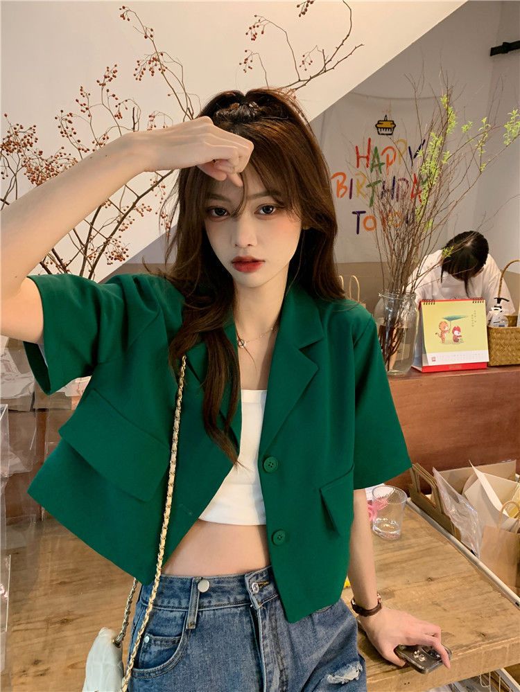 BY9155#短款西装短袖外套夏季新款甜酷辣妹炸街时尚小西服女ins