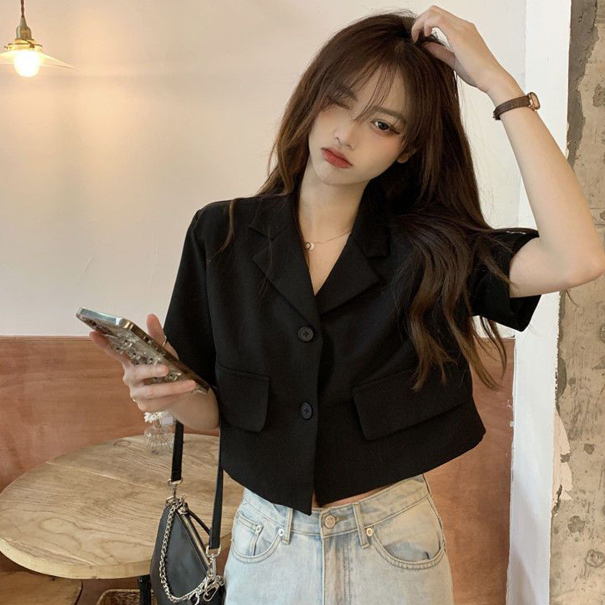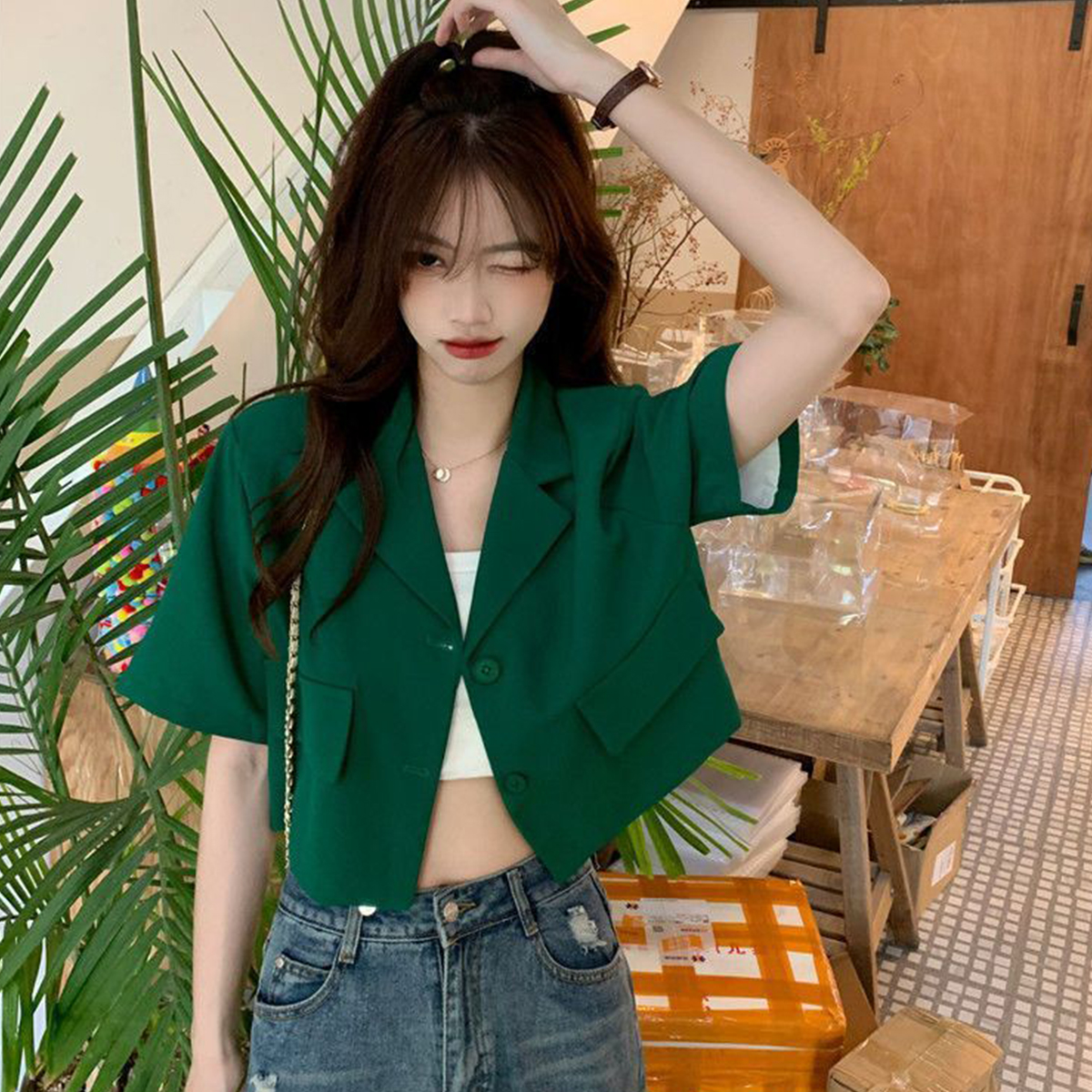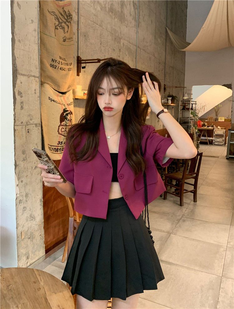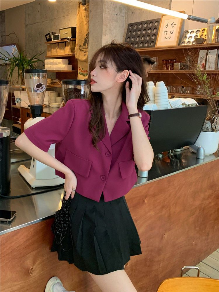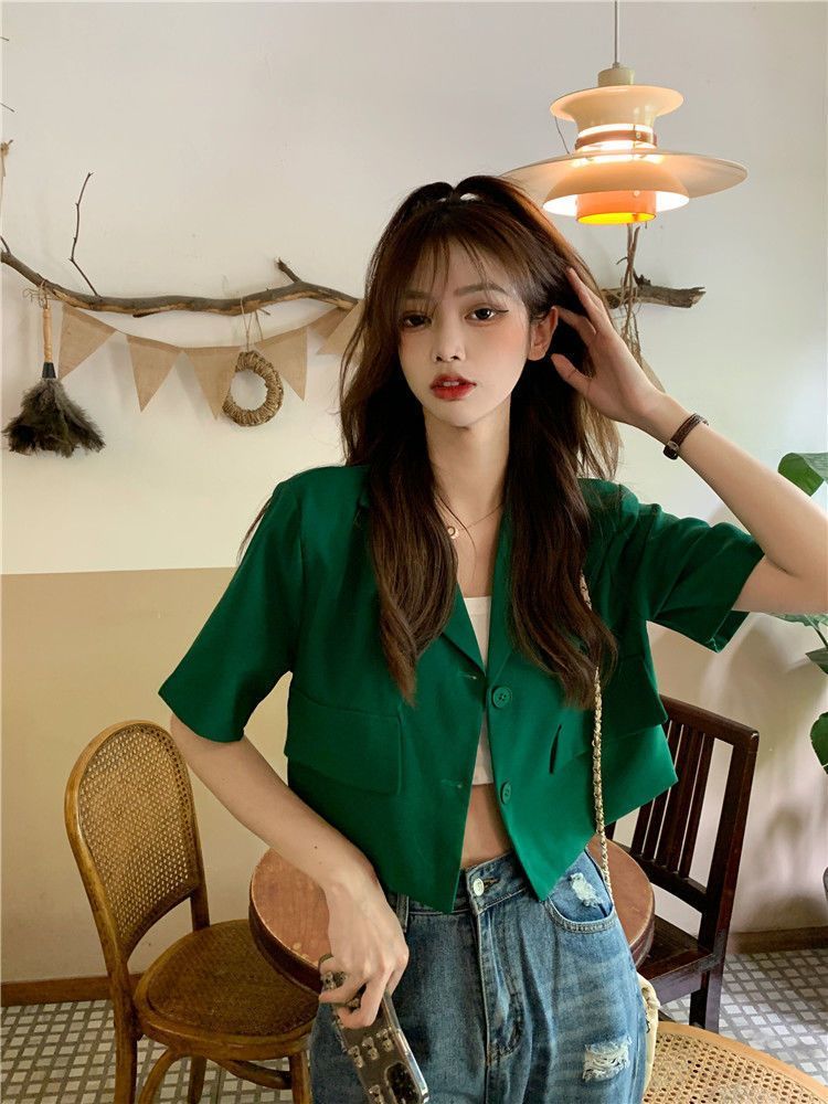 BY9155#短款西装短袖外套夏季新款甜酷辣妹炸街时尚小西服女ins