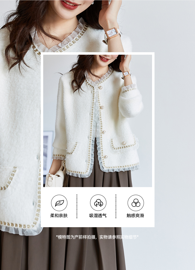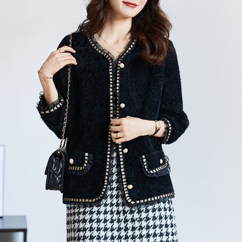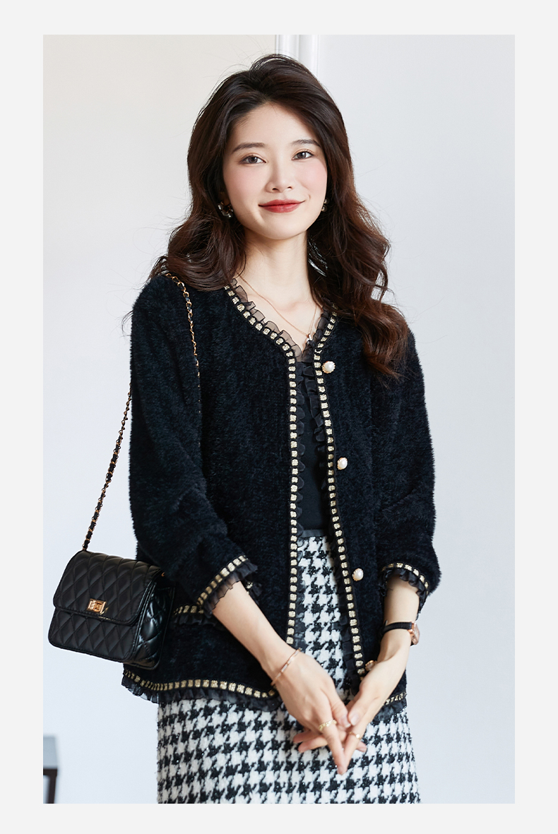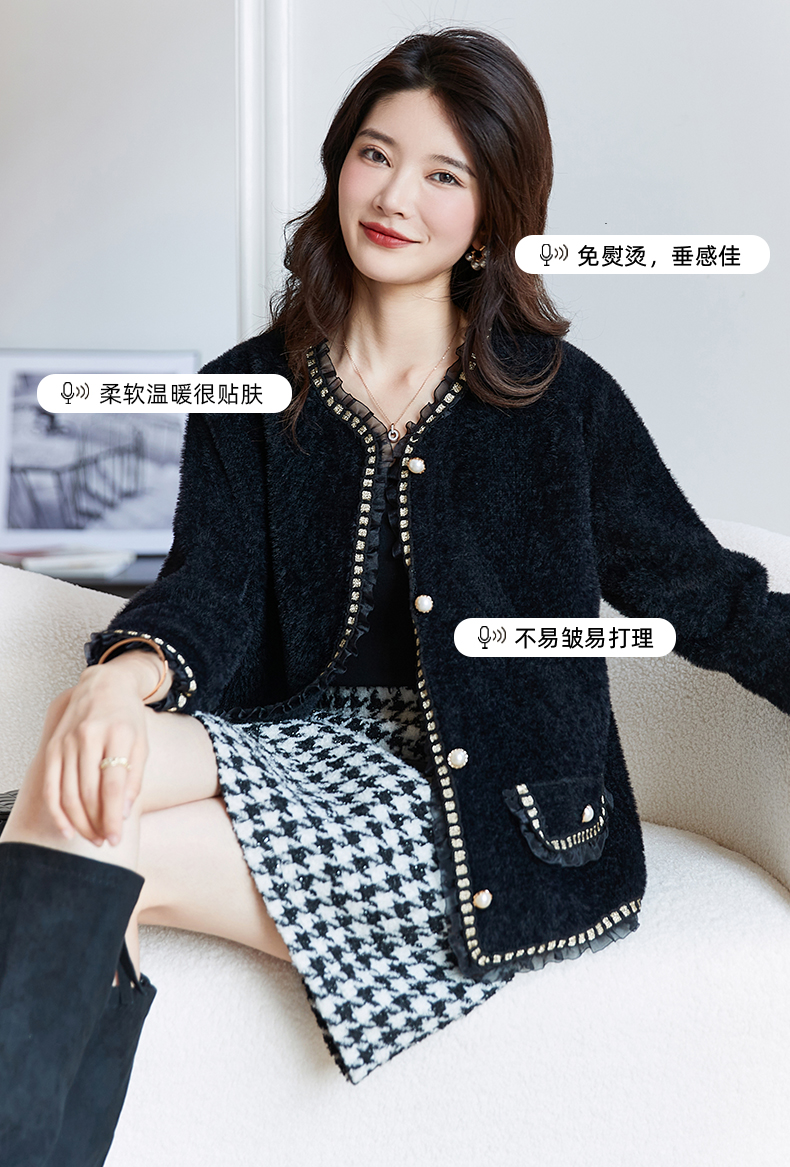 MY13908# 新款洋气减龄小香风毛衣外套高级感仿貂毛名媛风上衣女裝貨源服裝批發