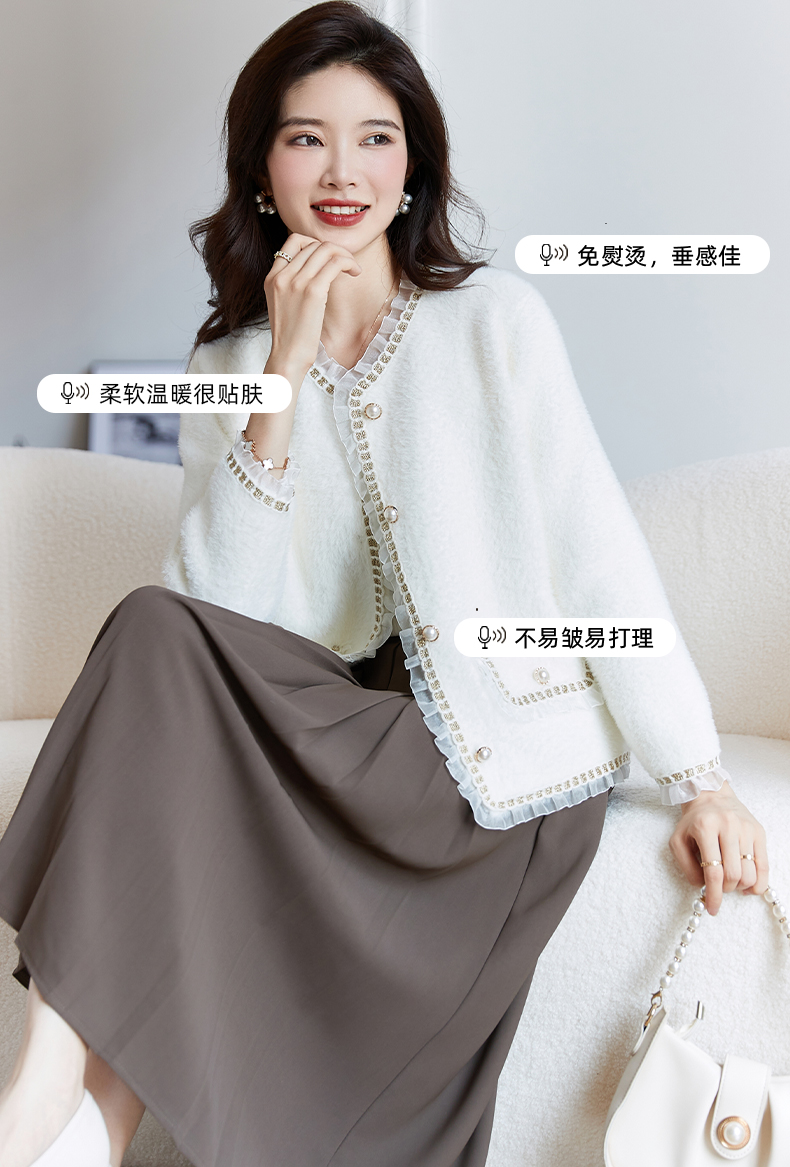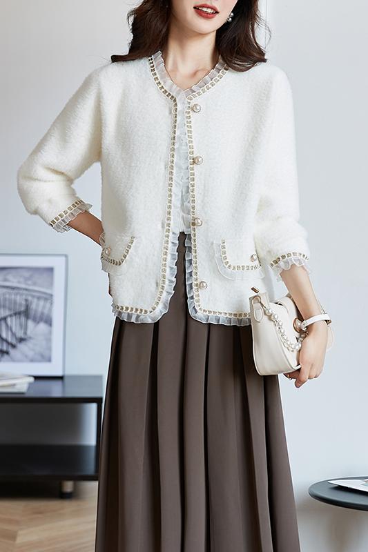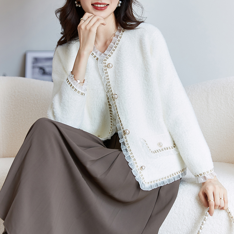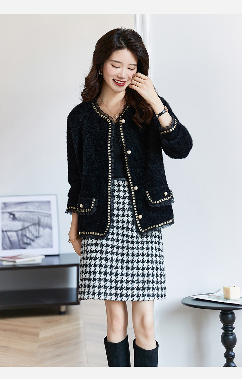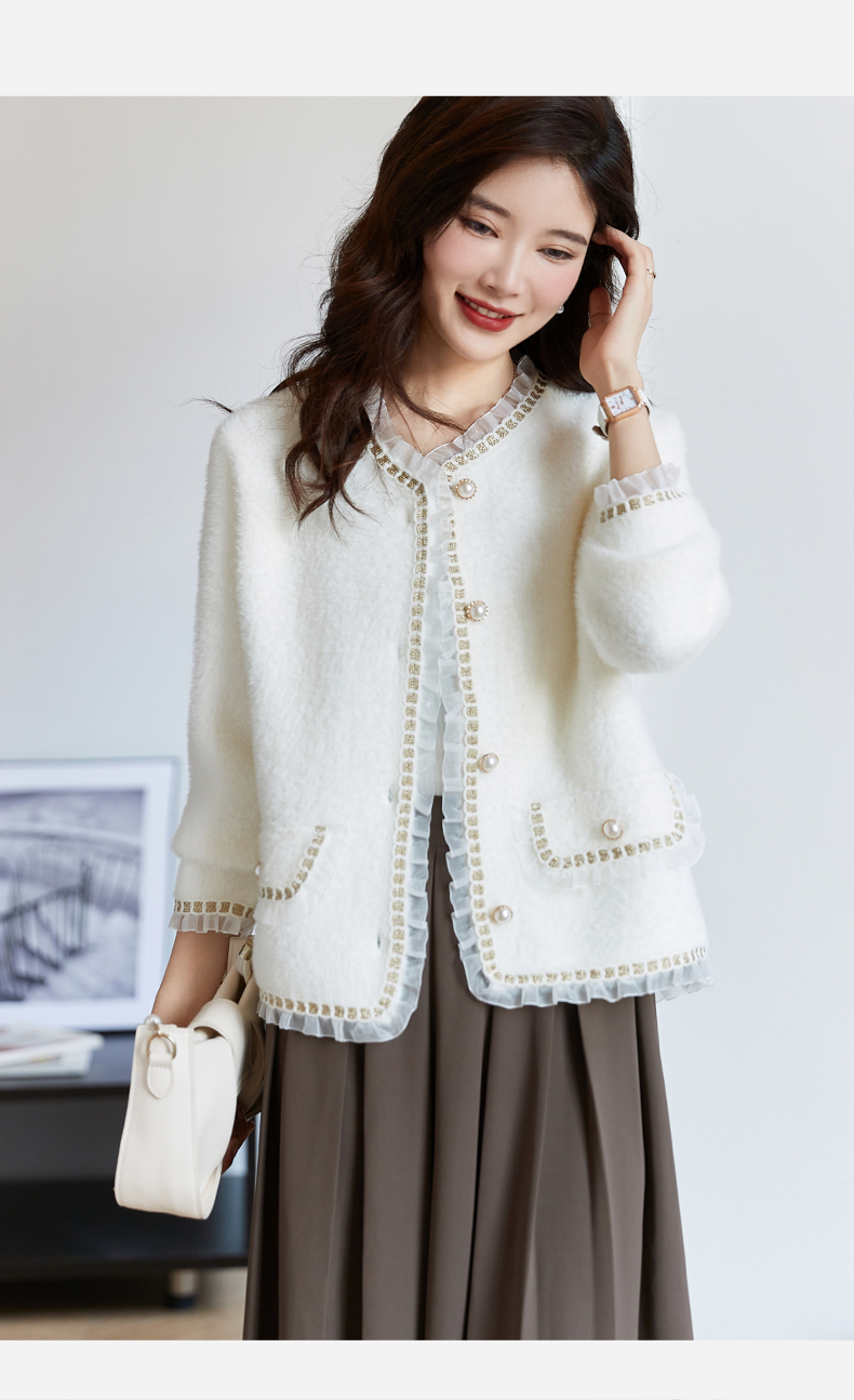 MY13908# 新款洋气减龄小香风毛衣外套高级感仿貂毛名媛风上衣女裝貨源服裝批發