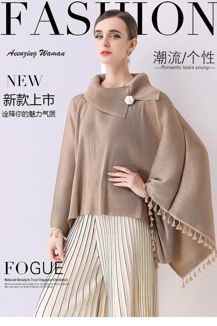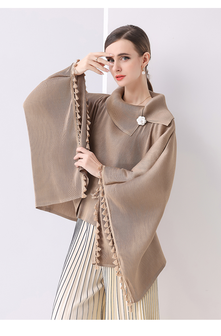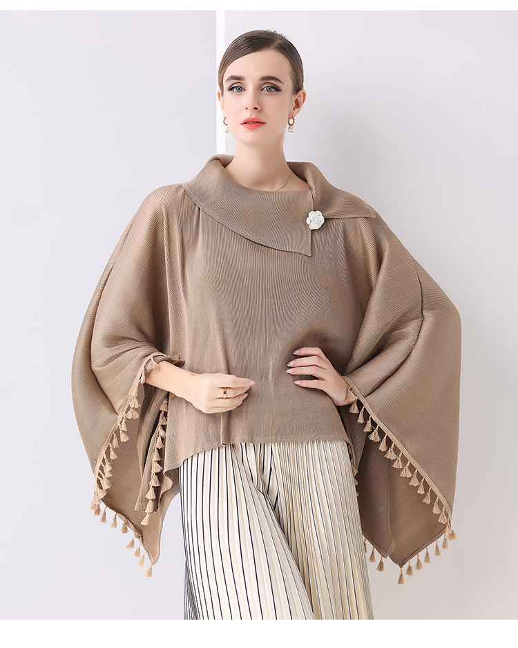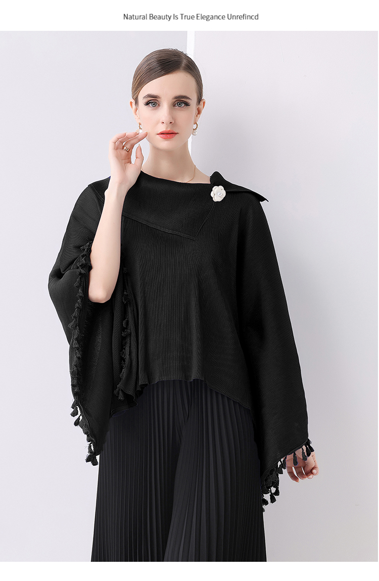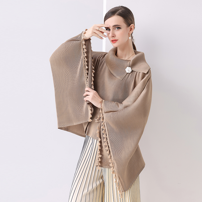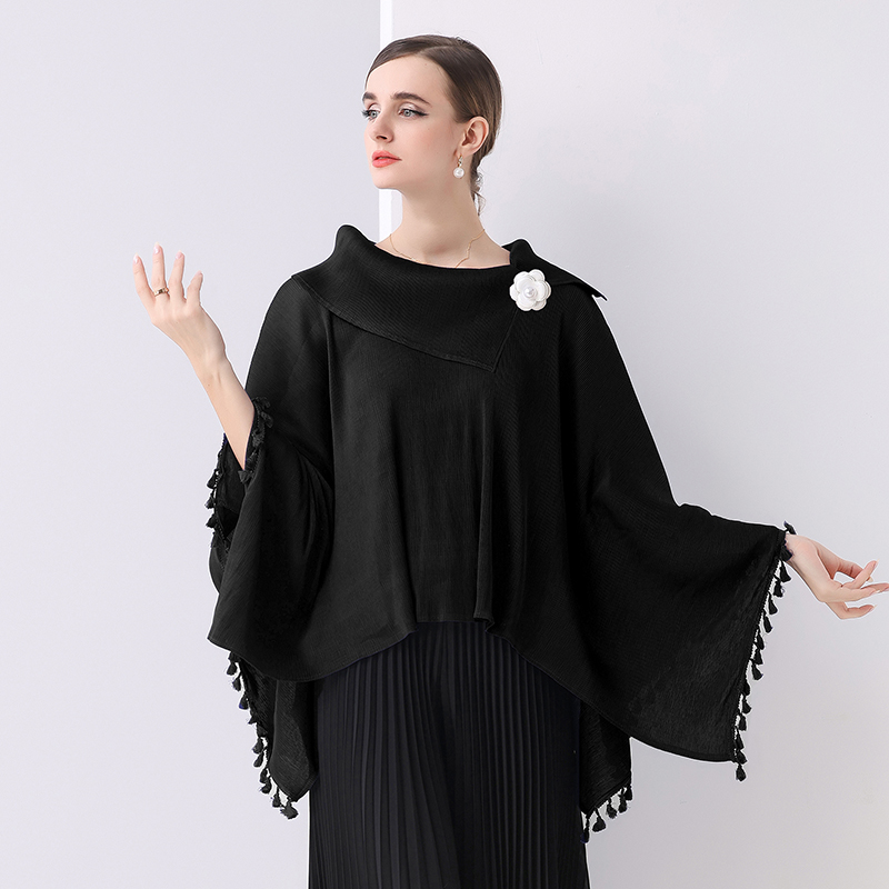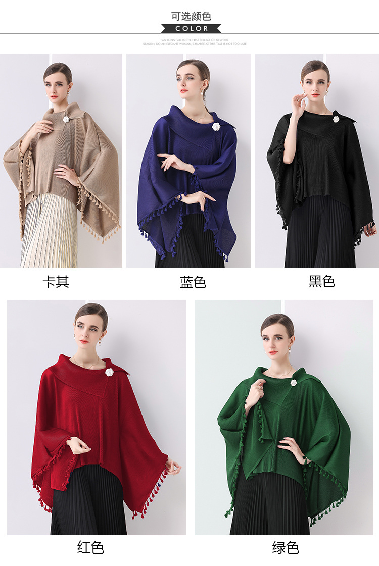 MY13948# 女装宽松蝙蝠衫披肩外套翻领套头花边流苏斗篷女女裝貨源服裝批發