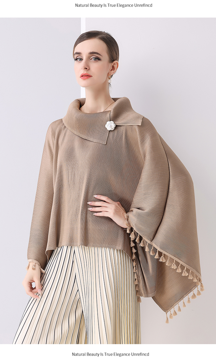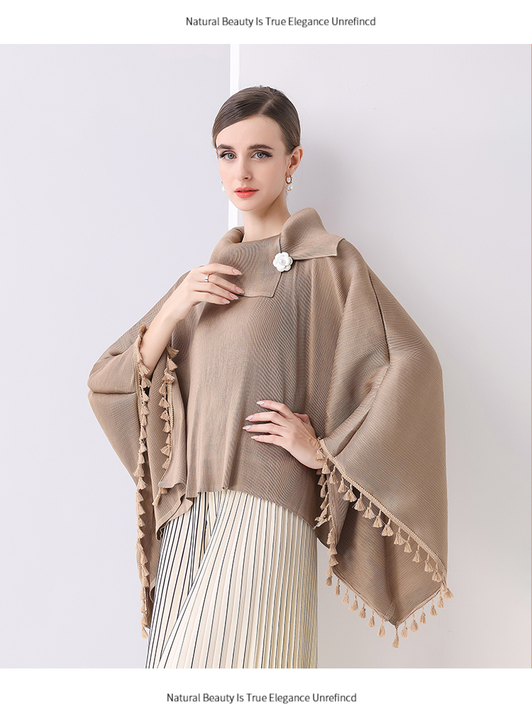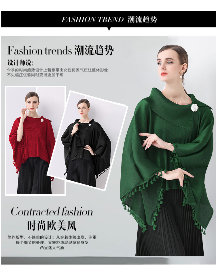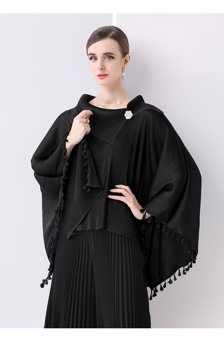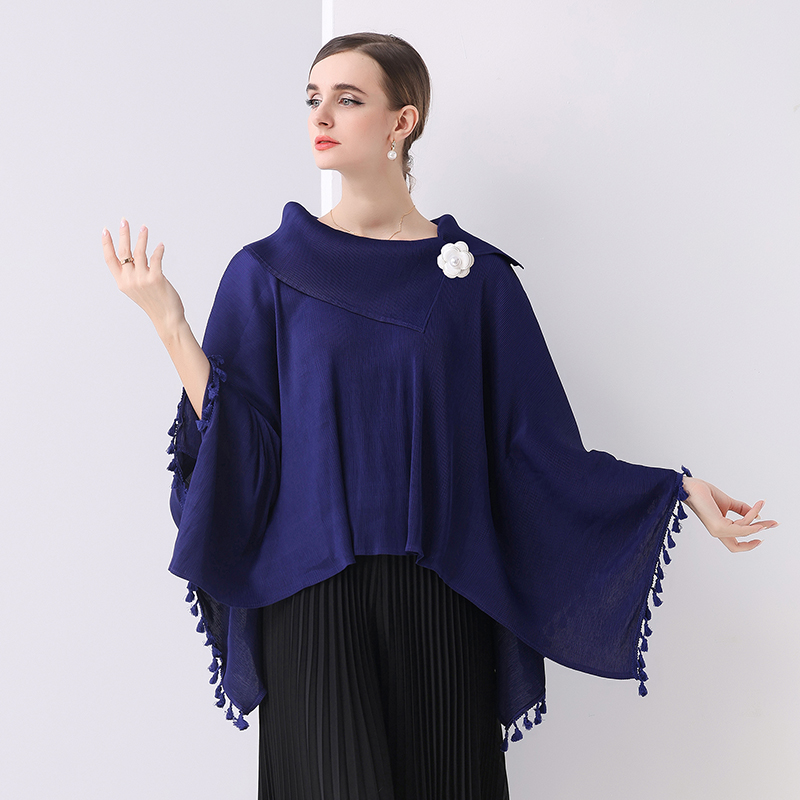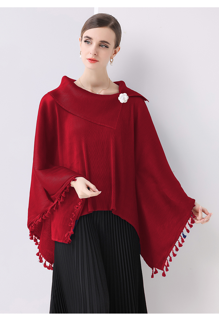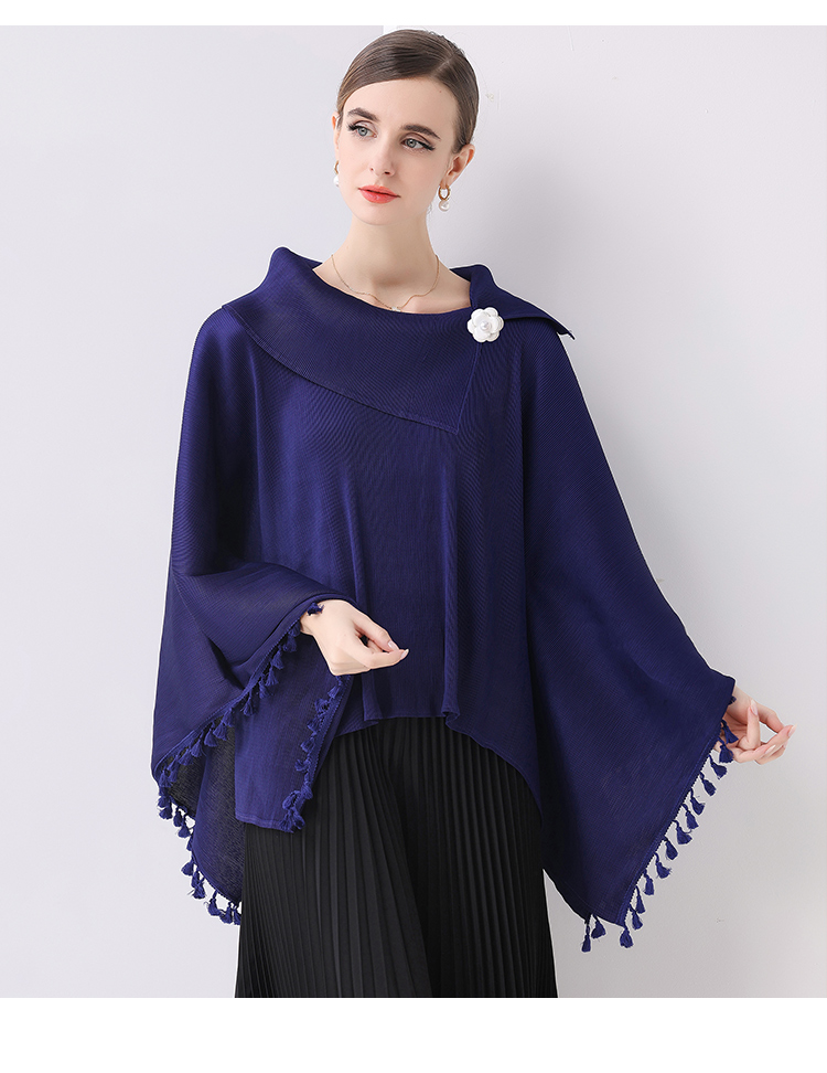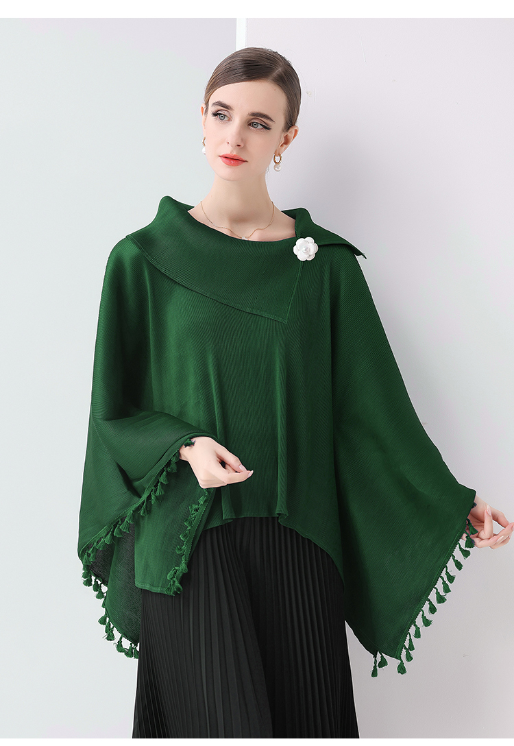 MY13948# 女装宽松蝙蝠衫披肩外套翻领套头花边流苏斗篷女女裝貨源服裝批發