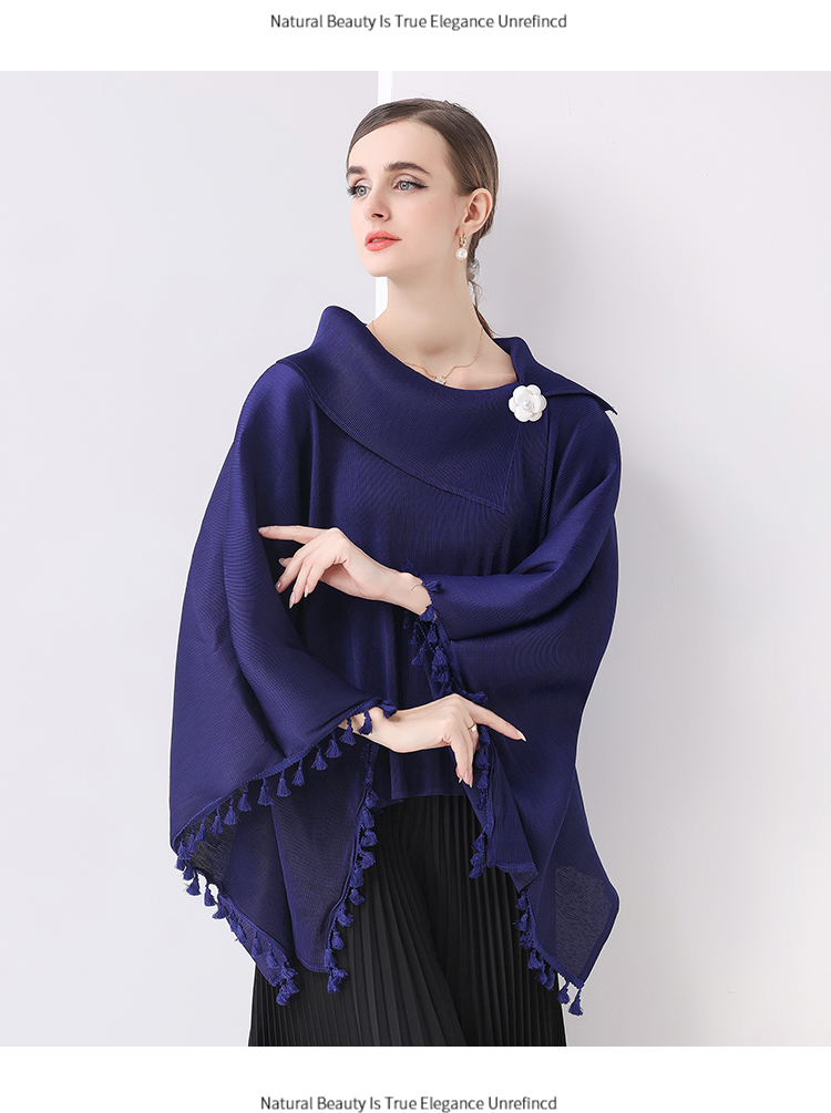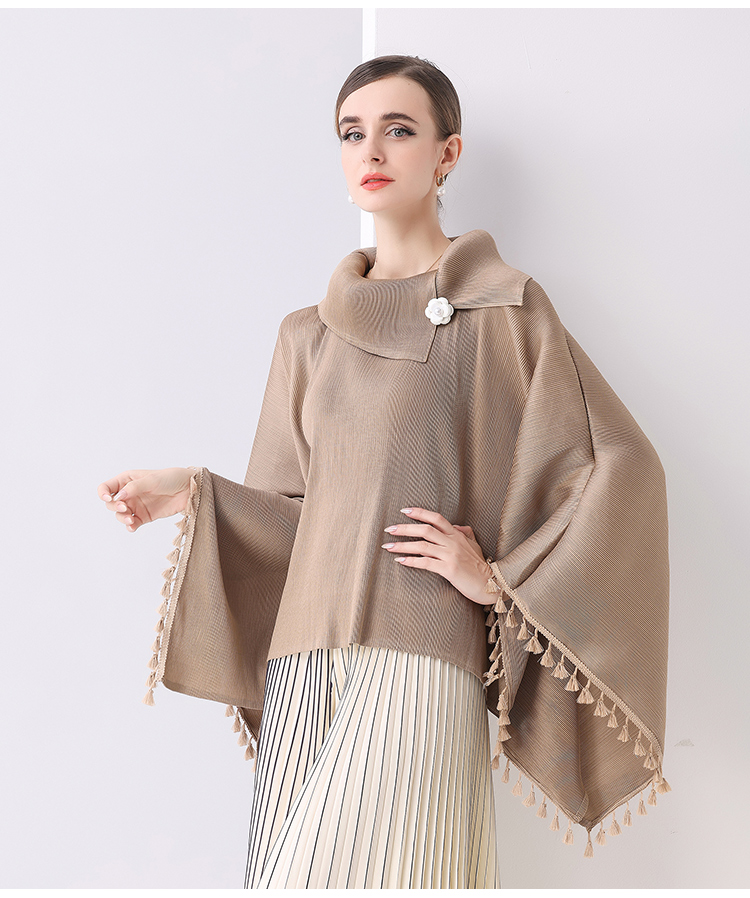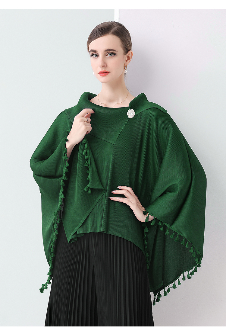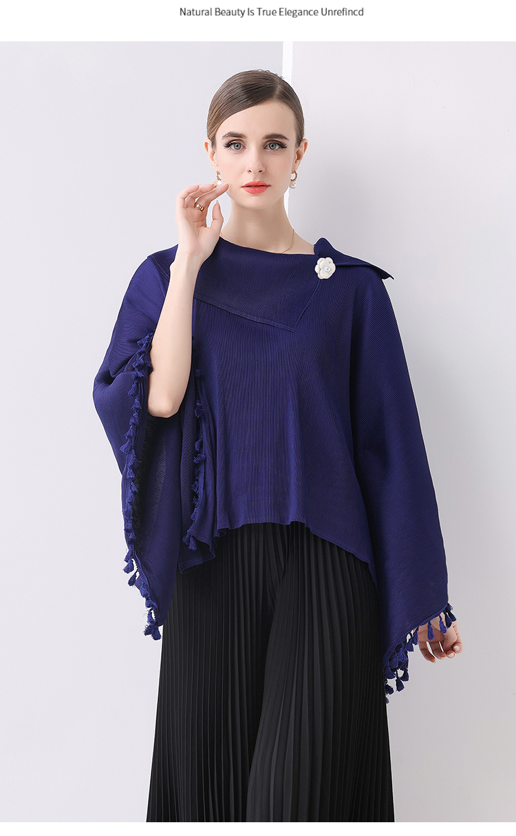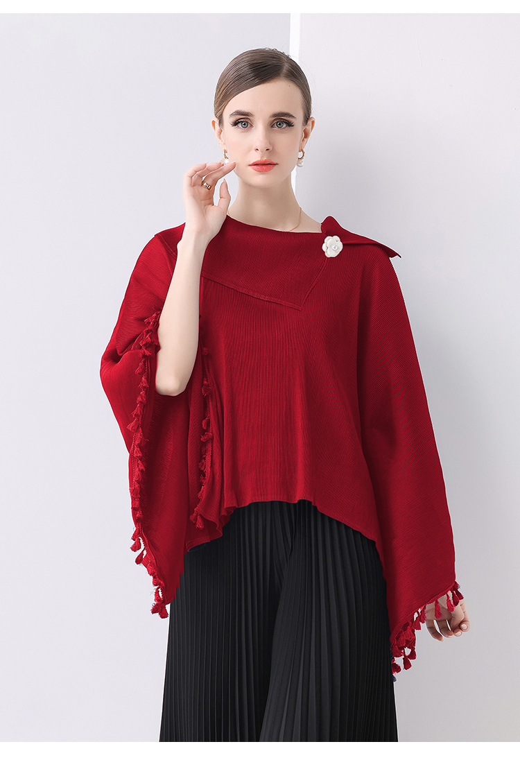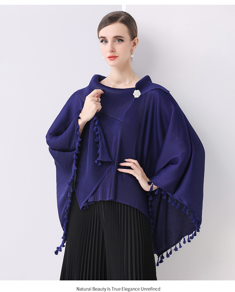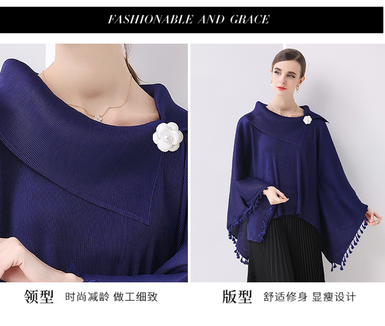 MY13948# 女装宽松蝙蝠衫披肩外套翻领套头花边流苏斗篷女女裝貨源服裝批發
