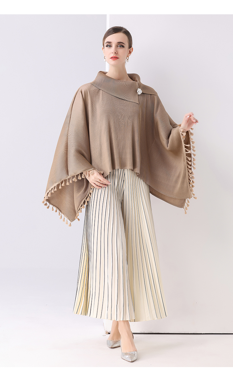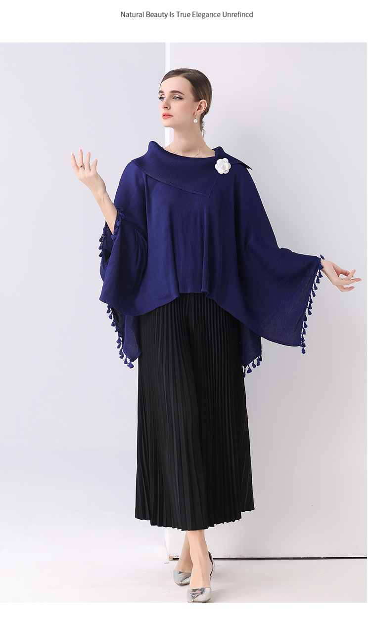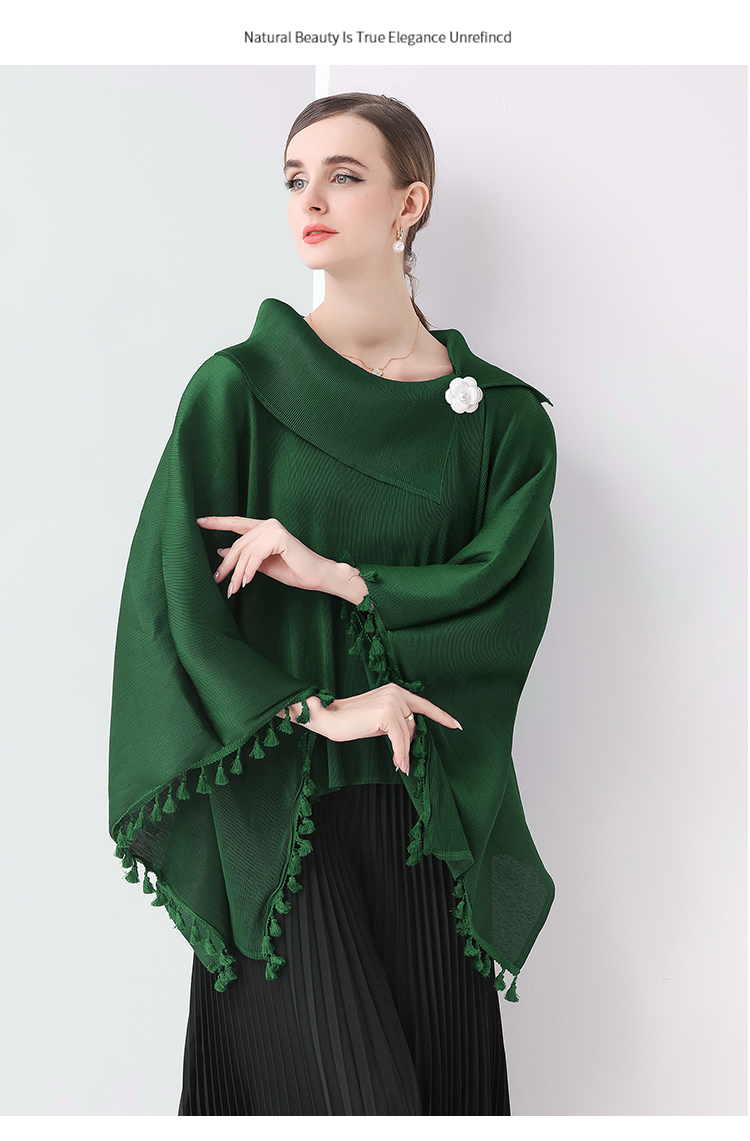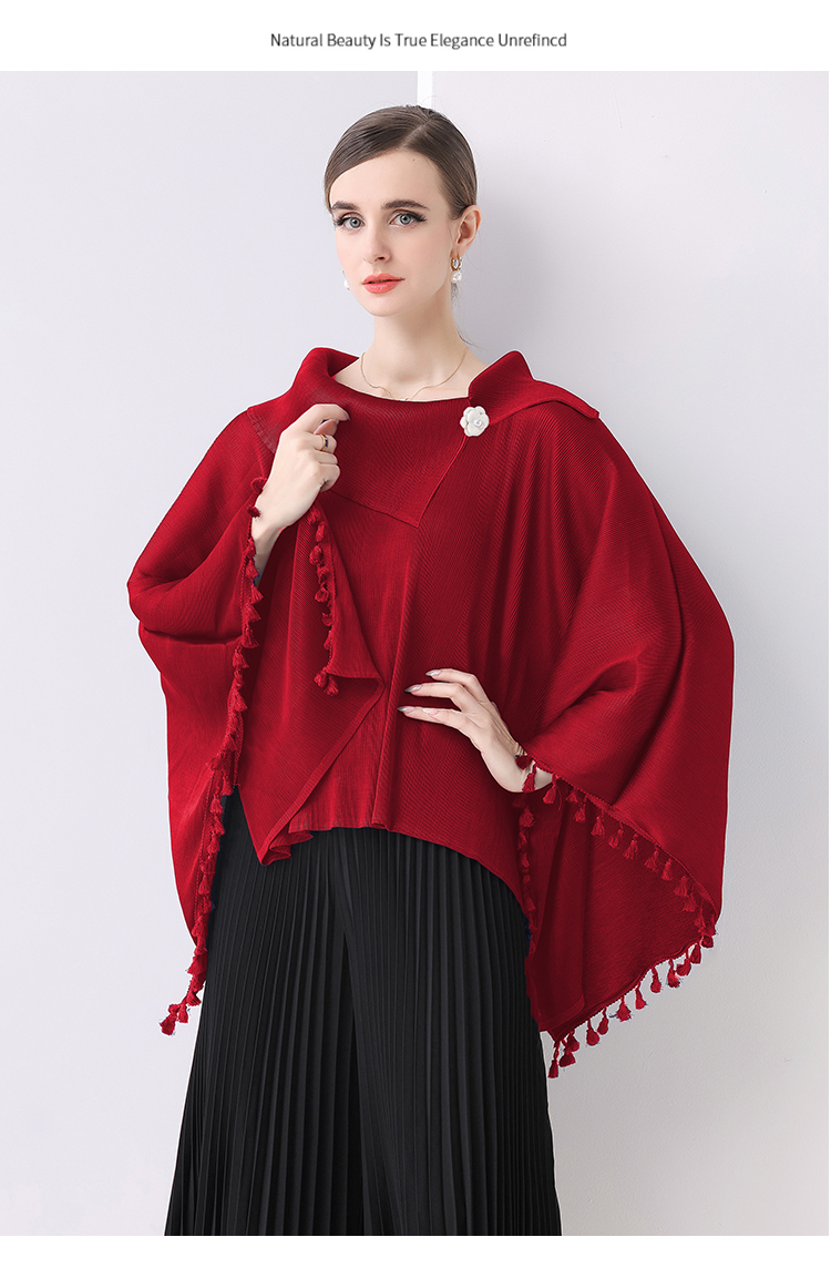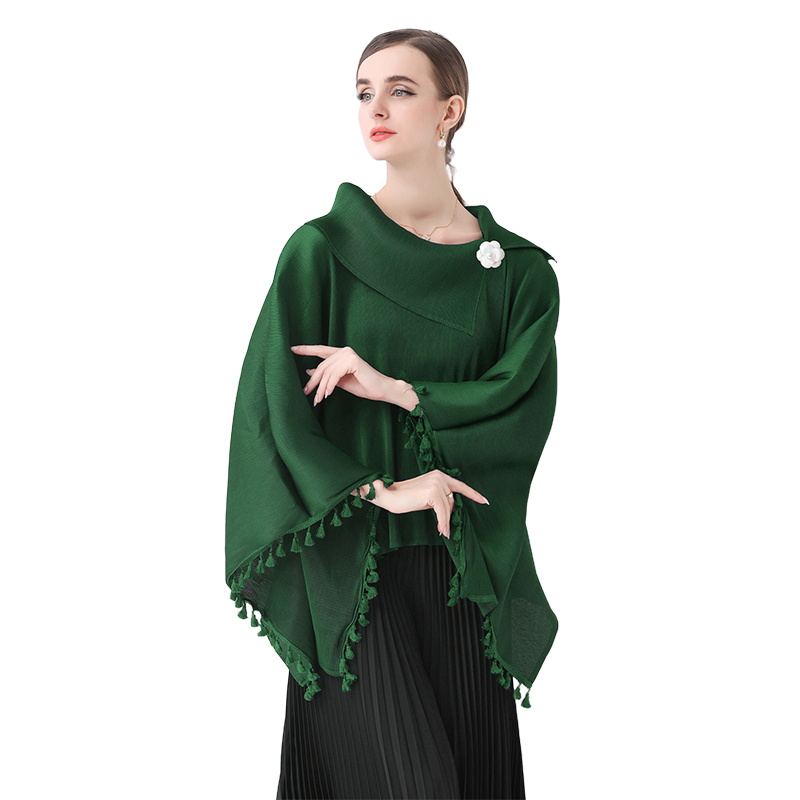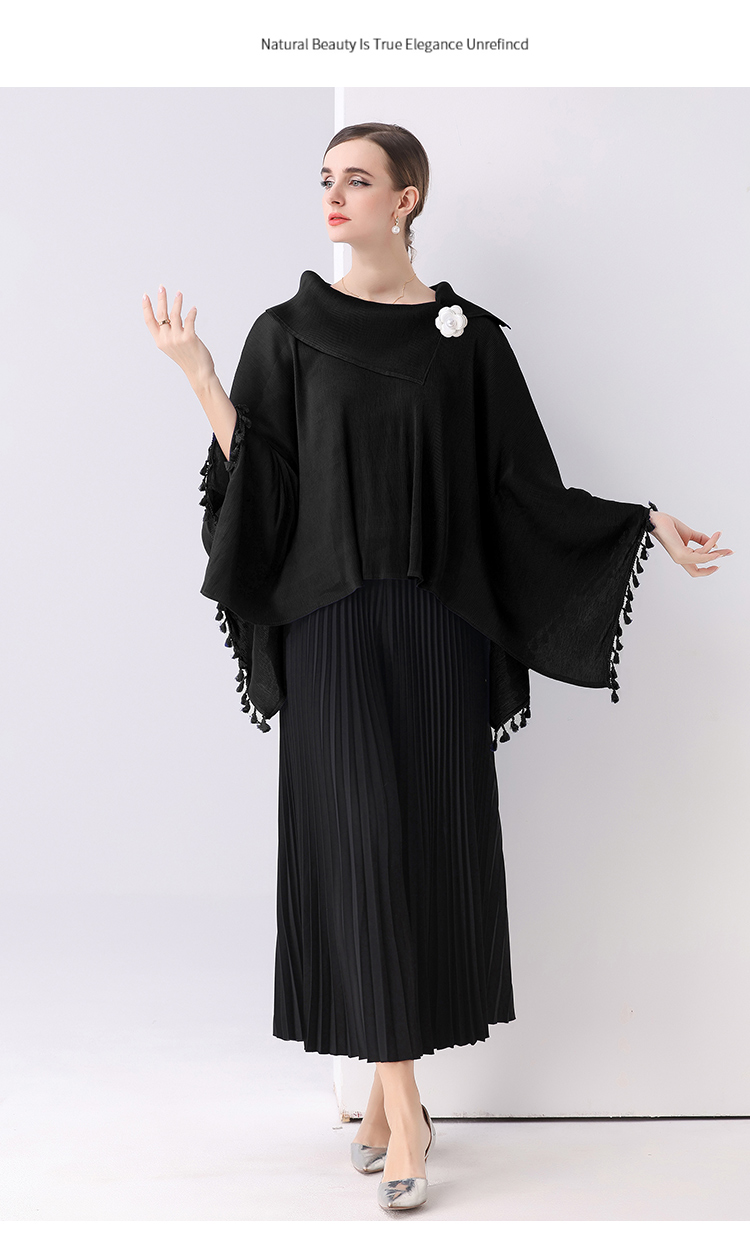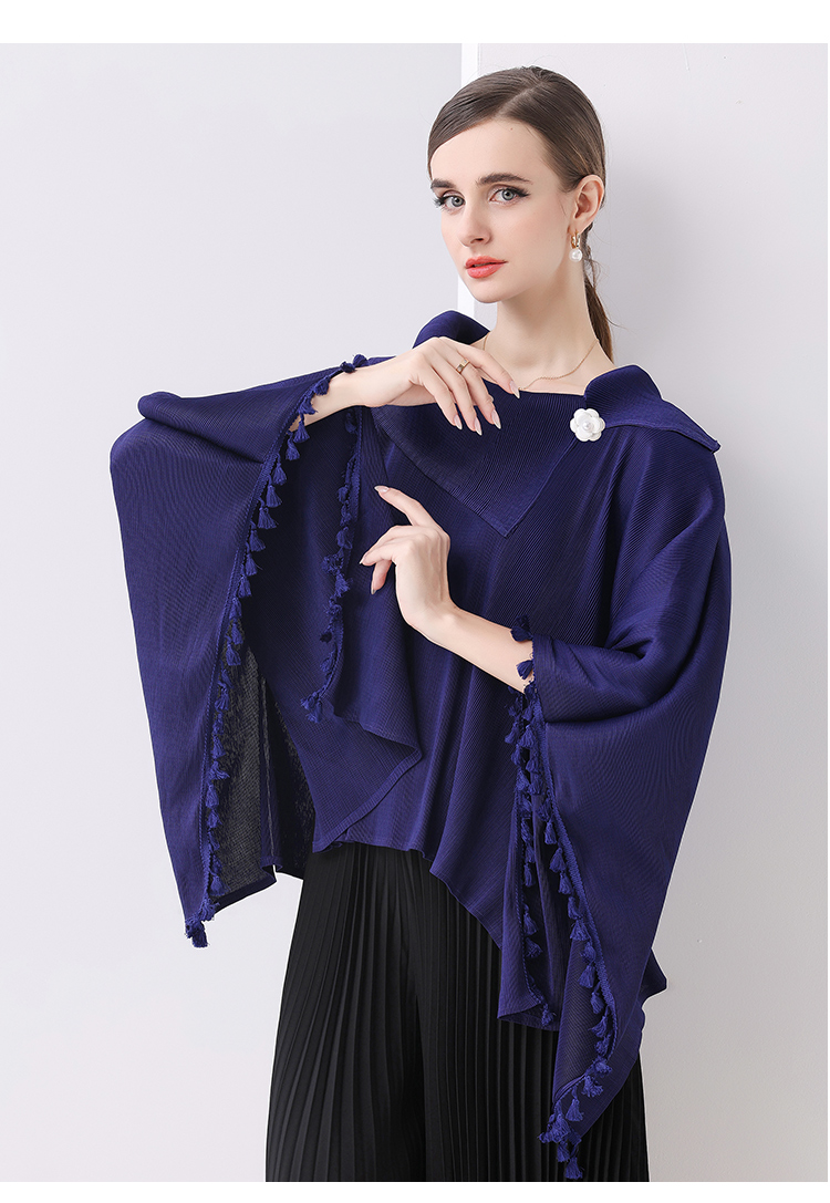MY13948# 女装宽松蝙蝠衫披肩外套翻领套头花边流苏斗篷女女裝貨源服裝批發