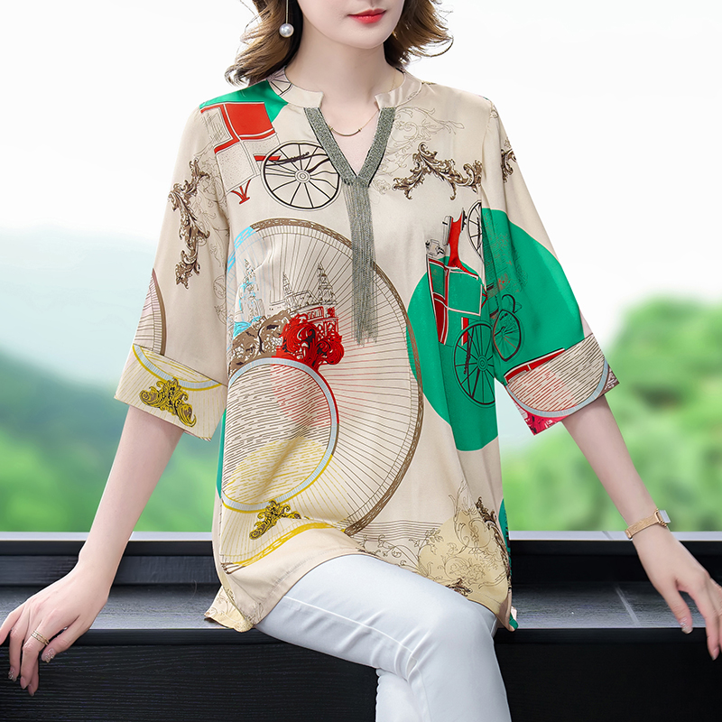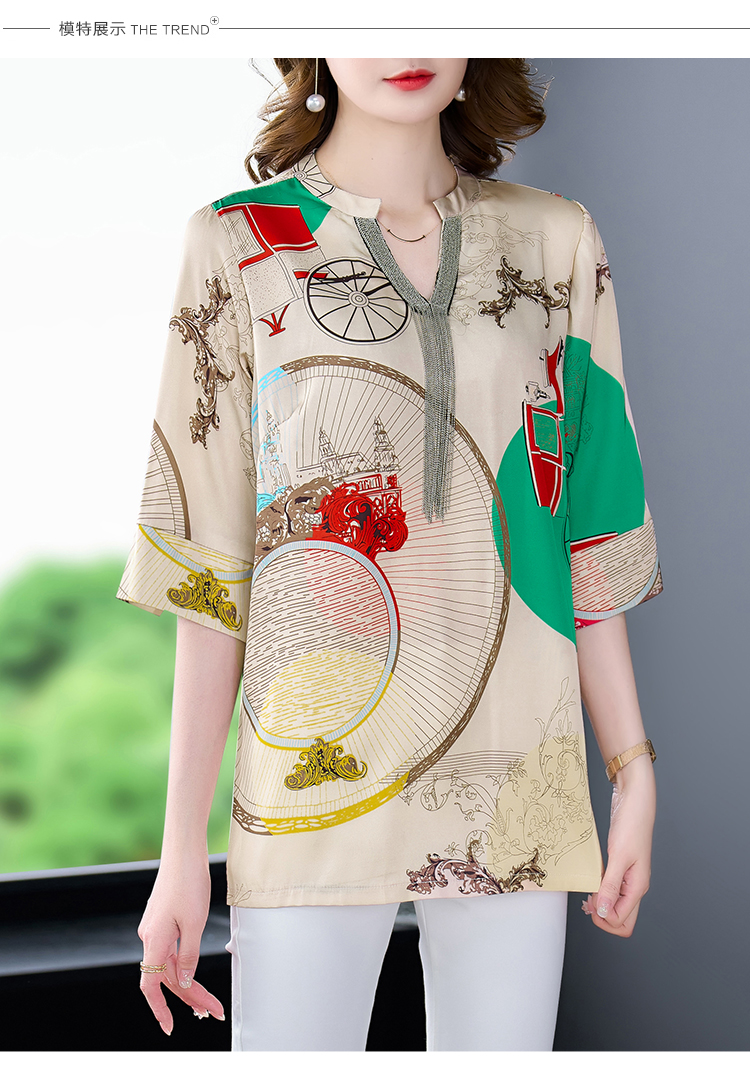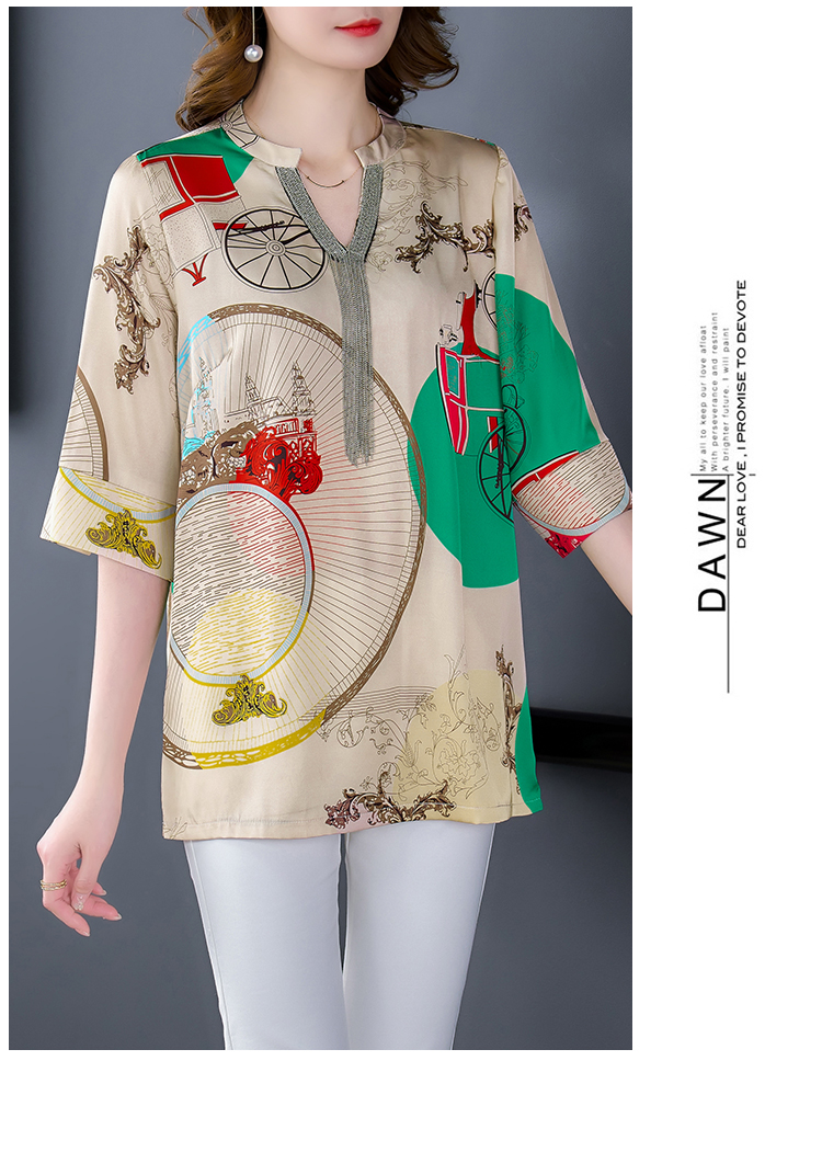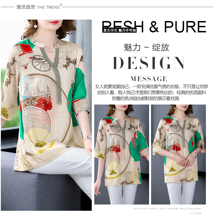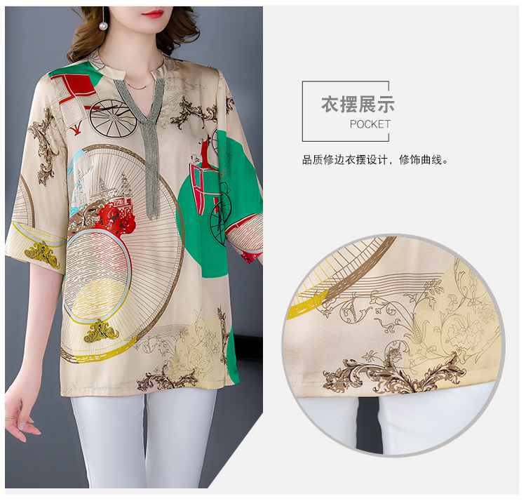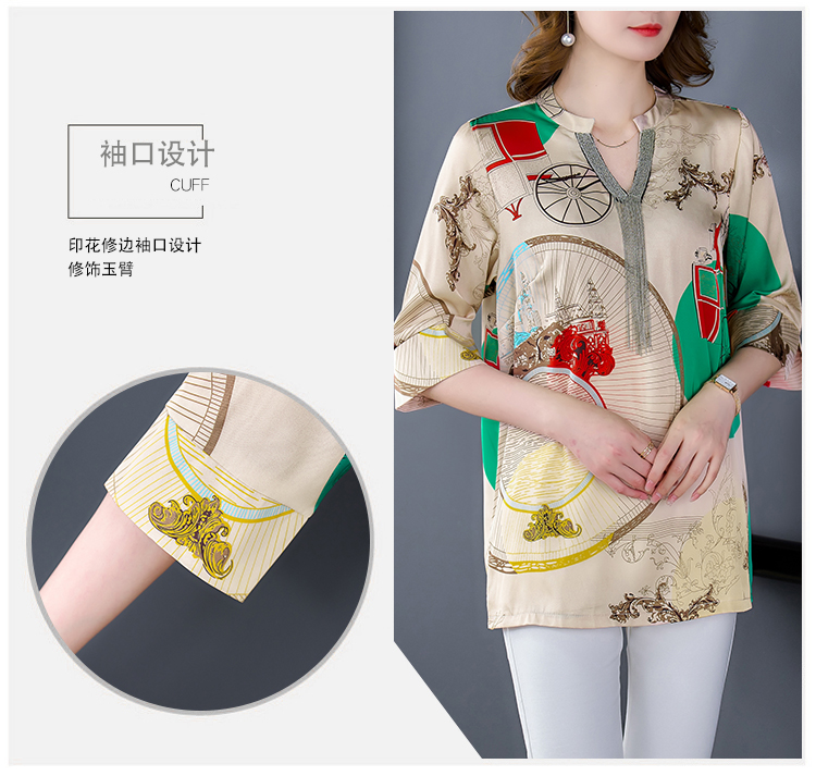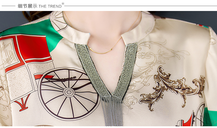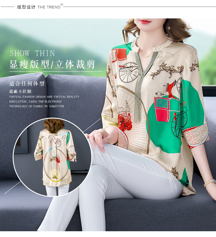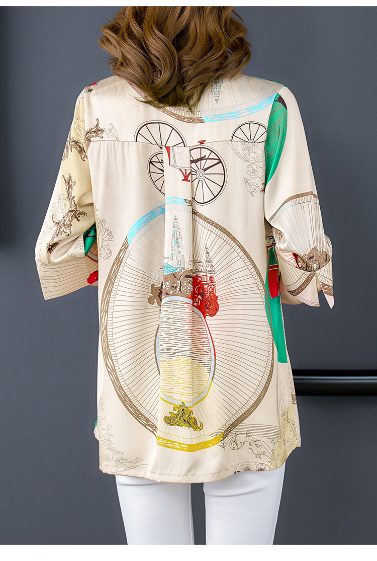 BY9157#印花真丝衬衫女 中长款宽松大春夏上衣