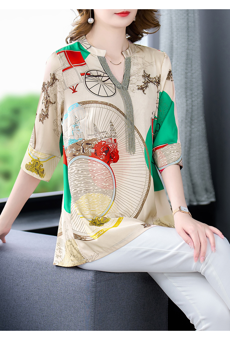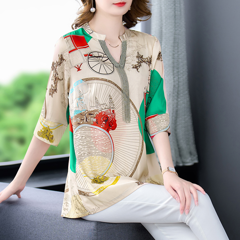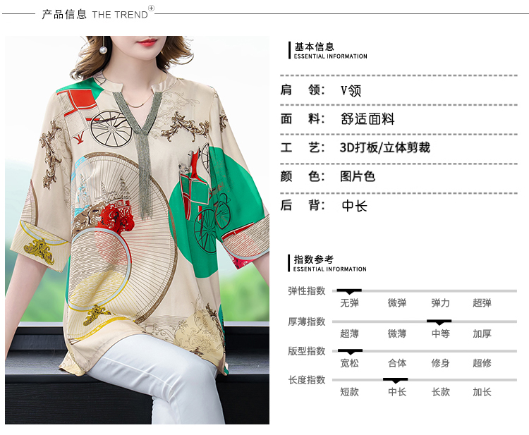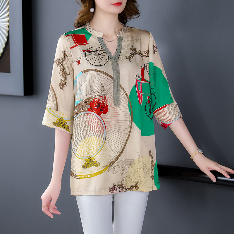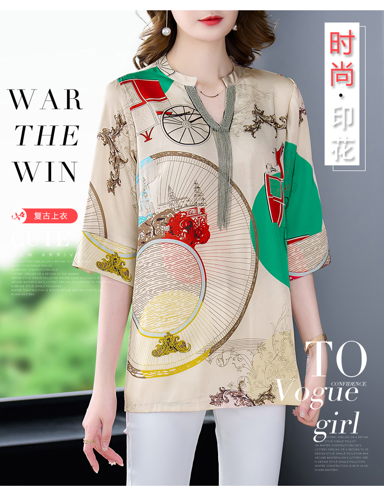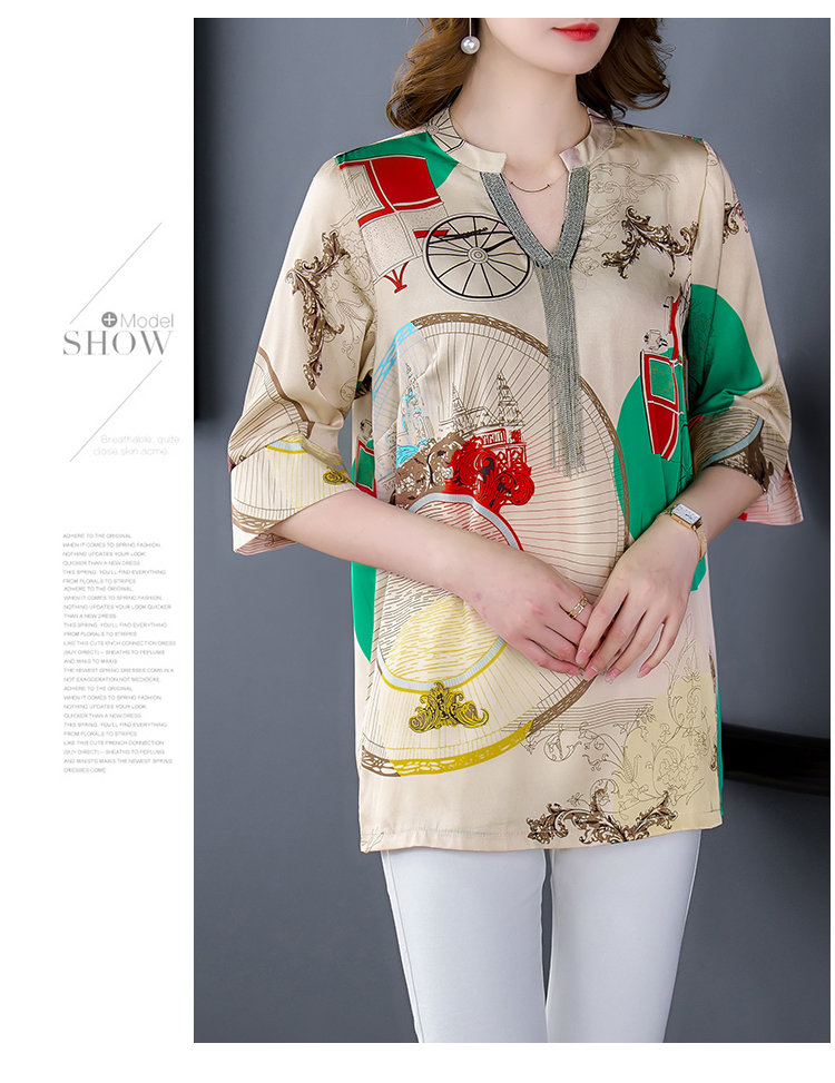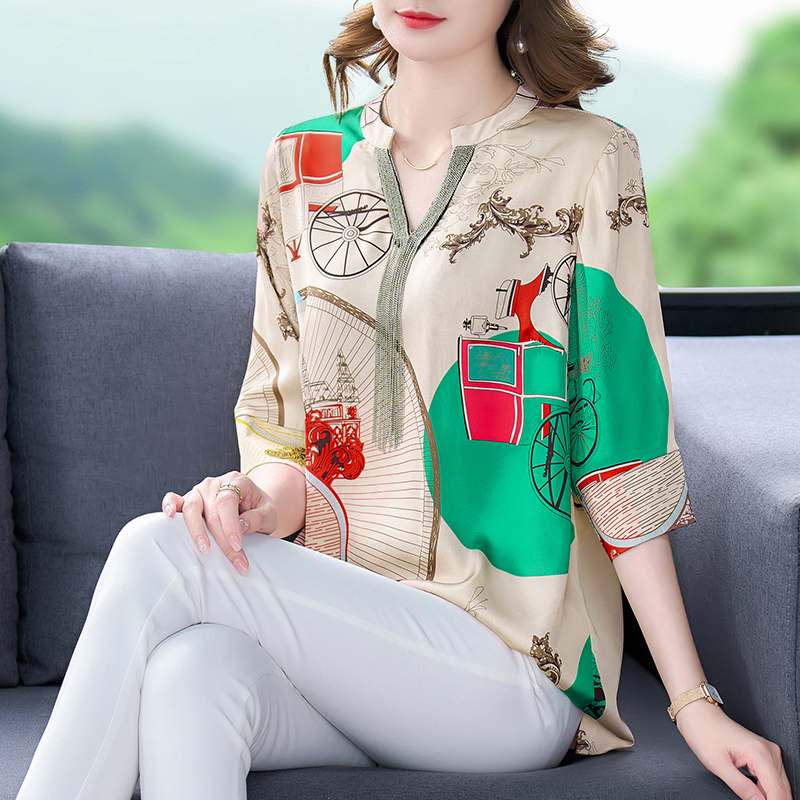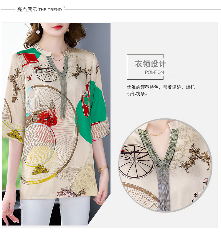 BY9157#印花真丝衬衫女 中长款宽松大春夏上衣