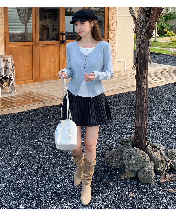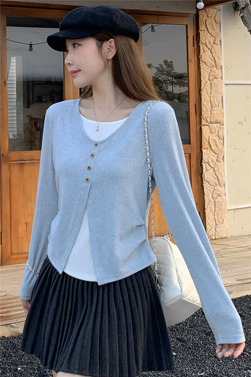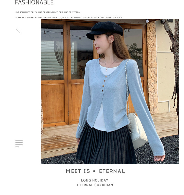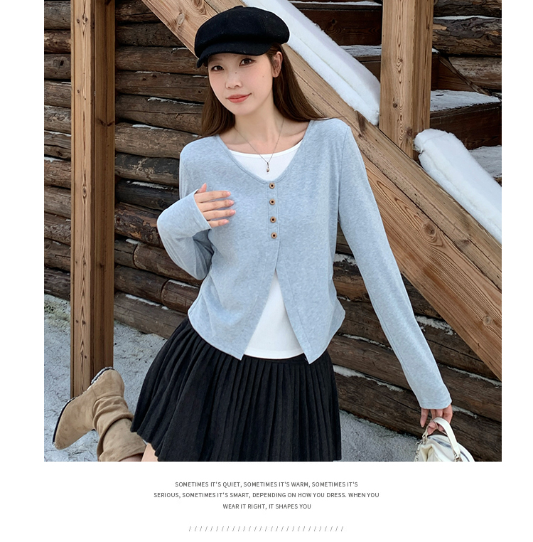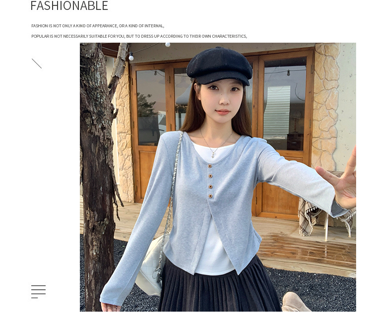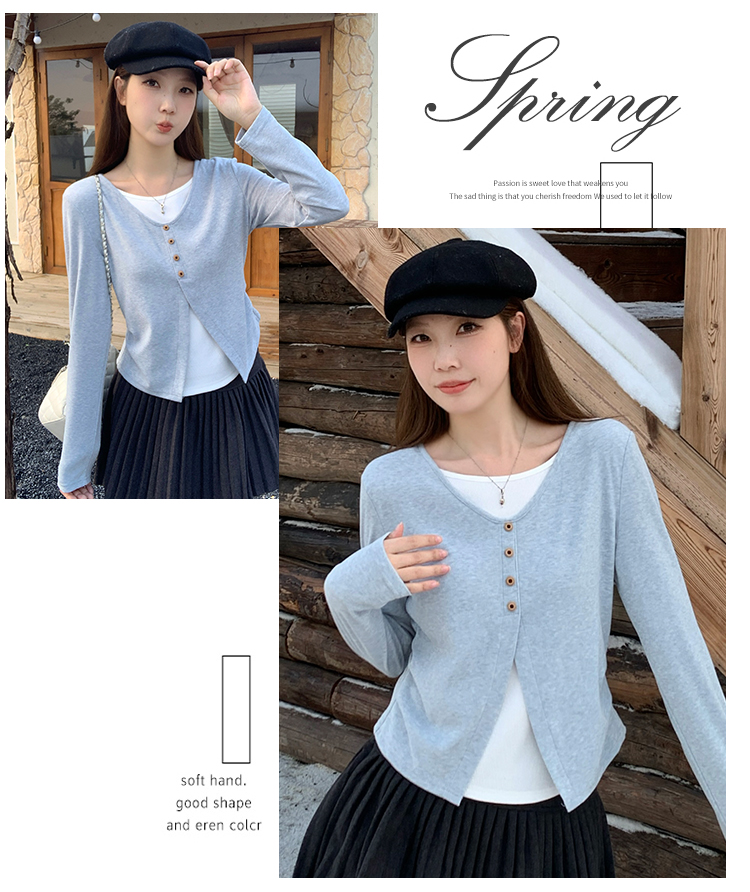 MY14020# 大码气质温柔假两件撞色拼接T恤绝美内搭打底衫别致上衣女裝貨源服裝批發