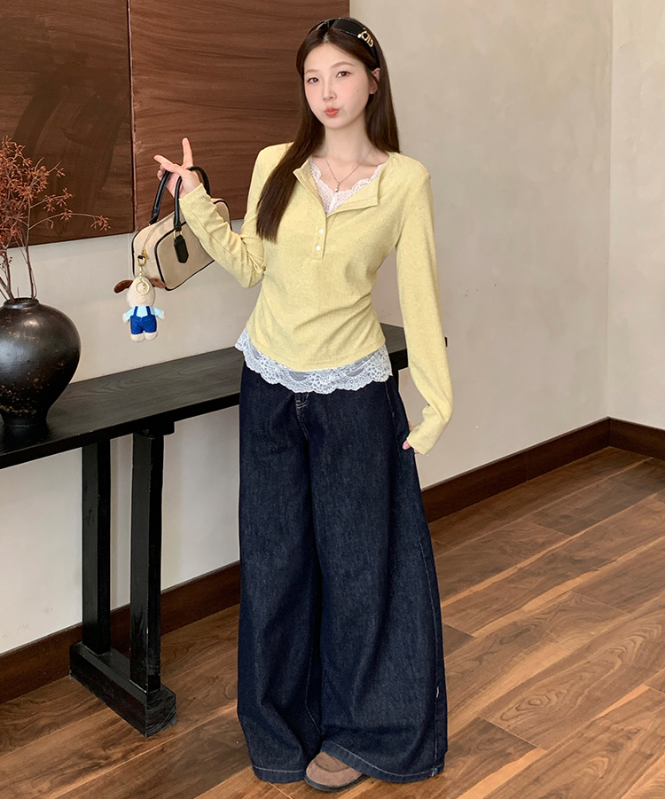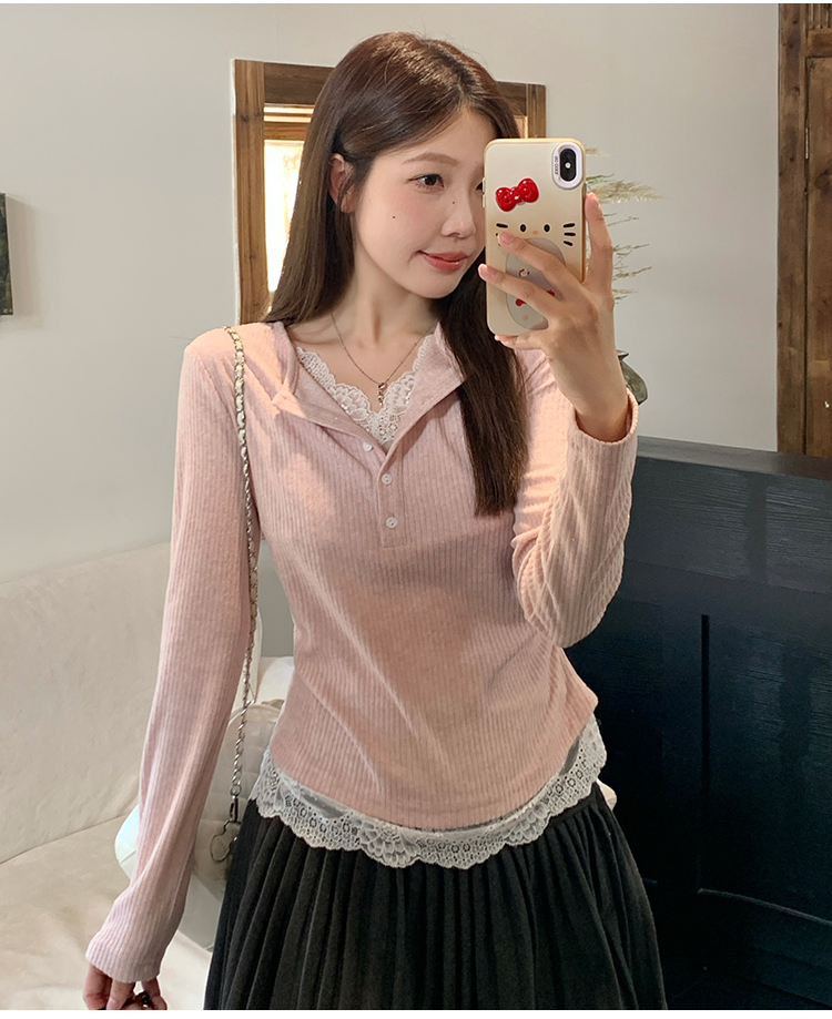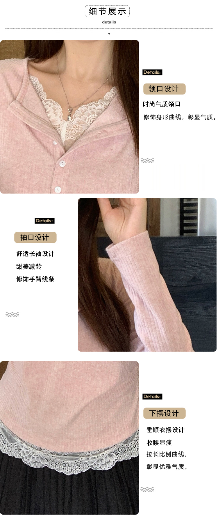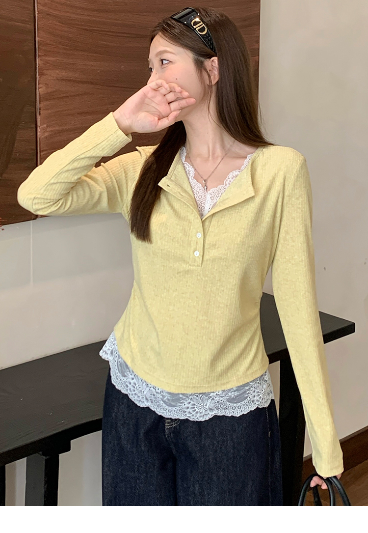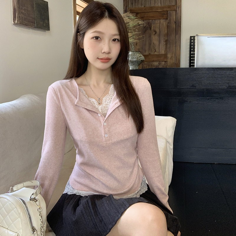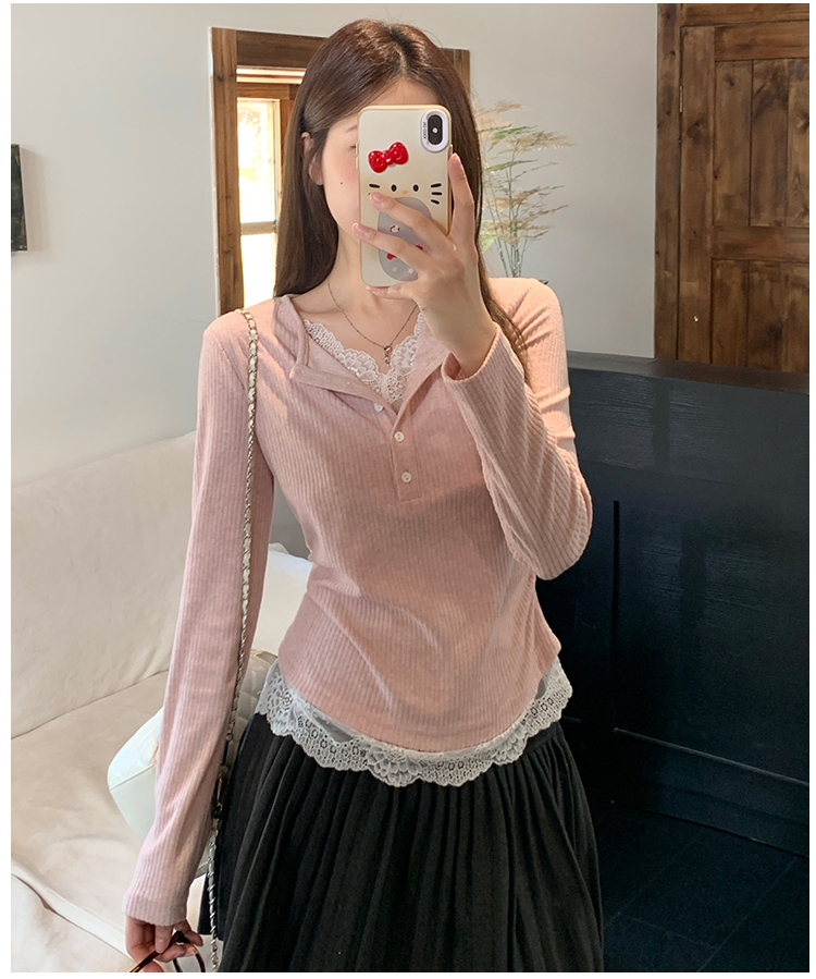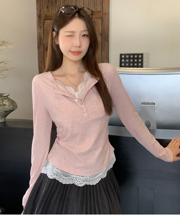 MY14024# 胖淑女蕾丝花边拼接假两件T恤上衣针织衫洋气打底衫女裝貨源服裝批發