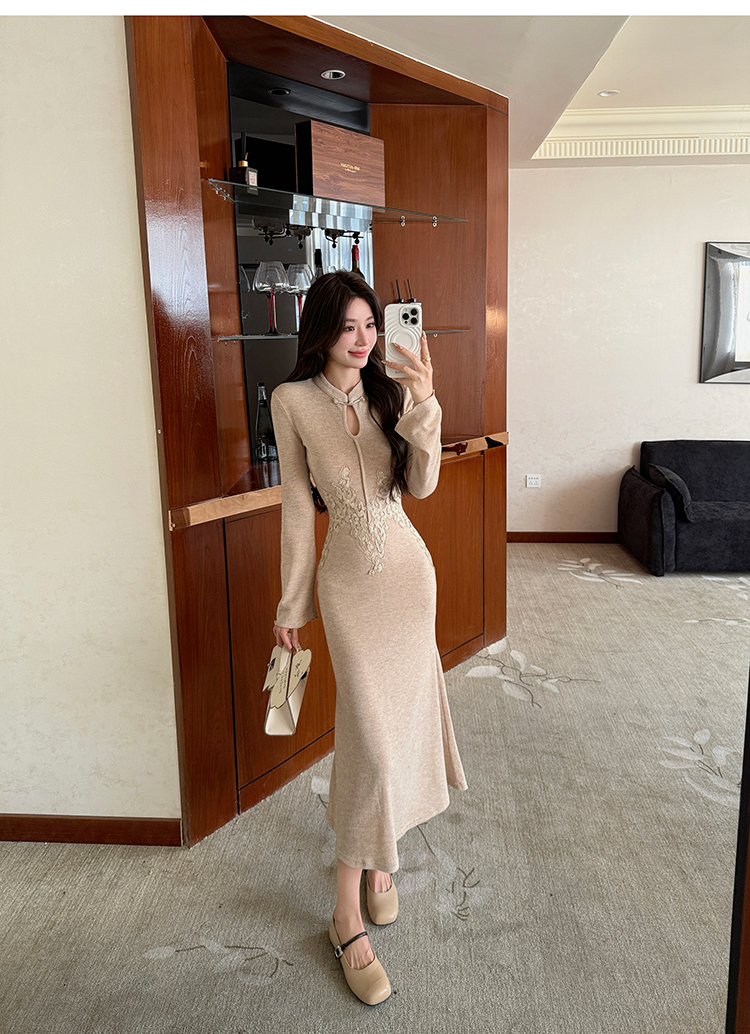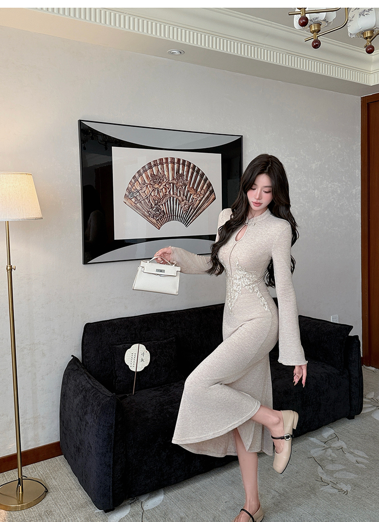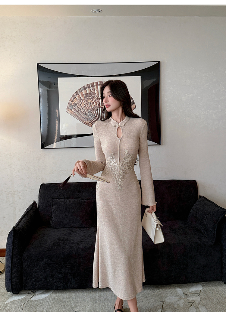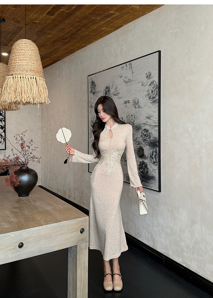 MY14051# 新中式巨好看的包臀连衣裙立领刺绣针织鱼尾长裙女女裝貨源服裝批發