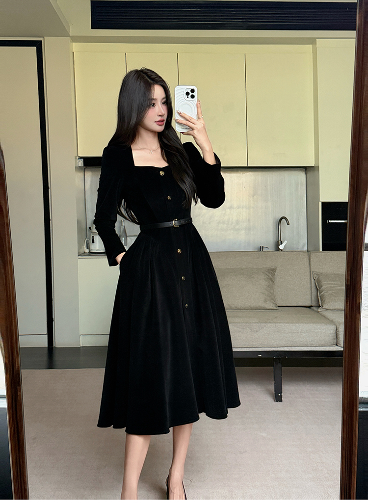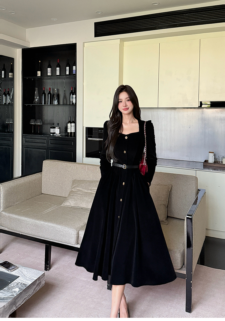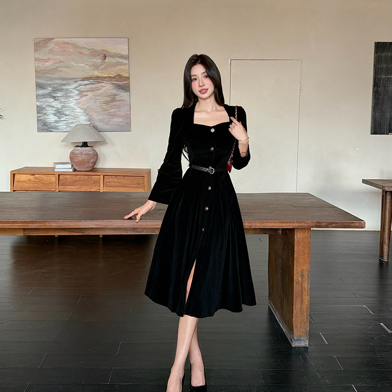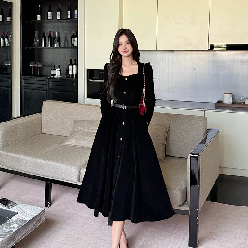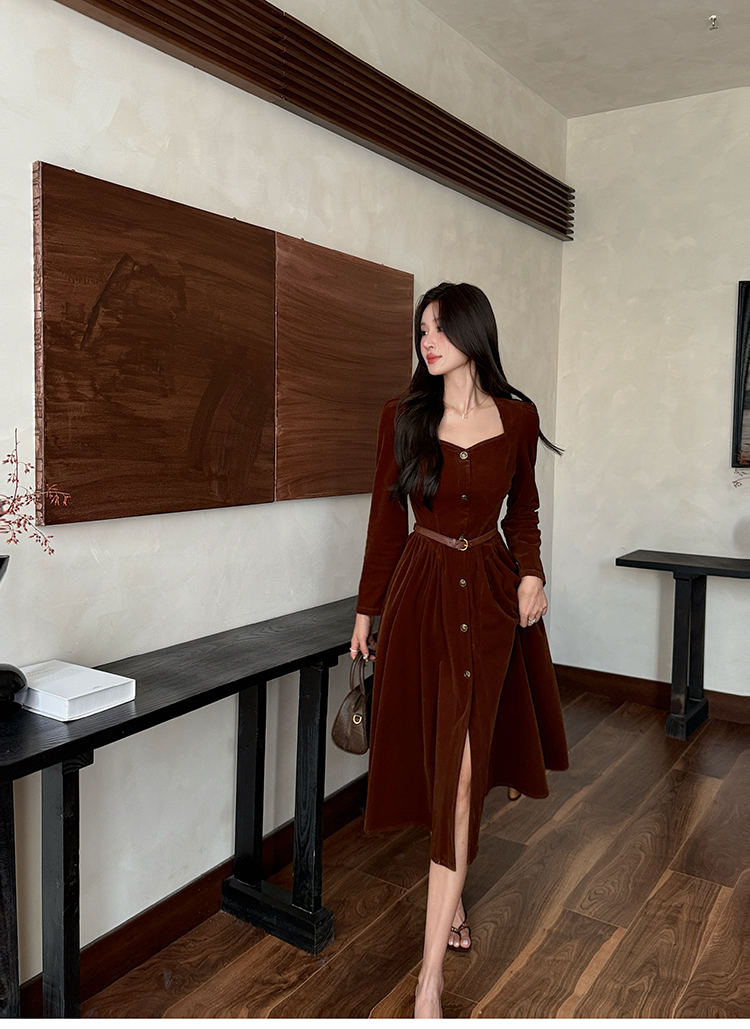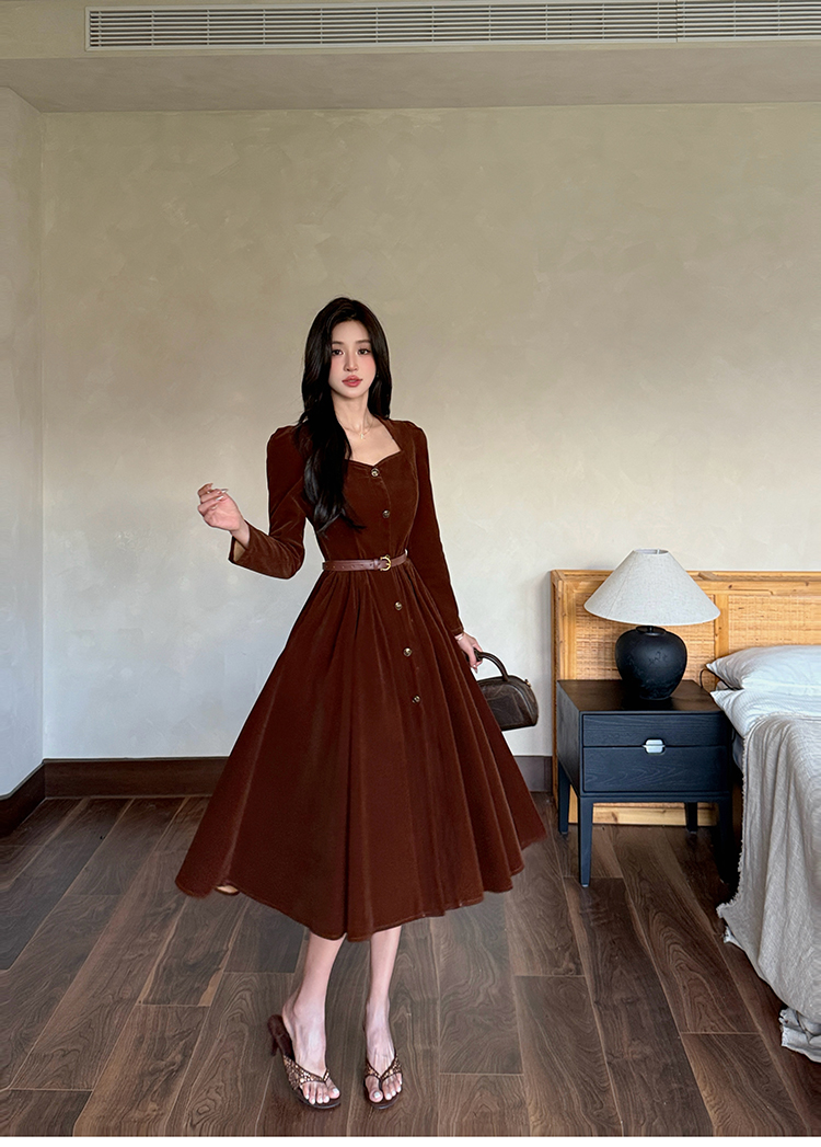 MY14052# 须尽欢 灯芯绒连衣裙秋轻奢高级感长袖法式长裙子女裝貨源服裝批發