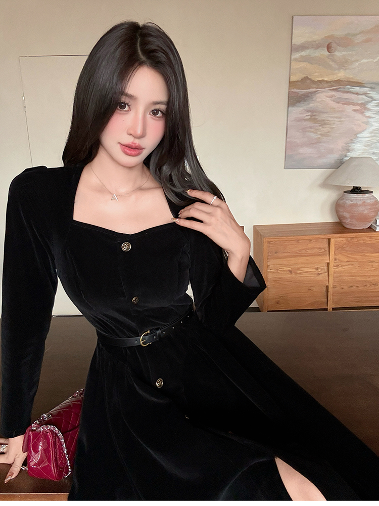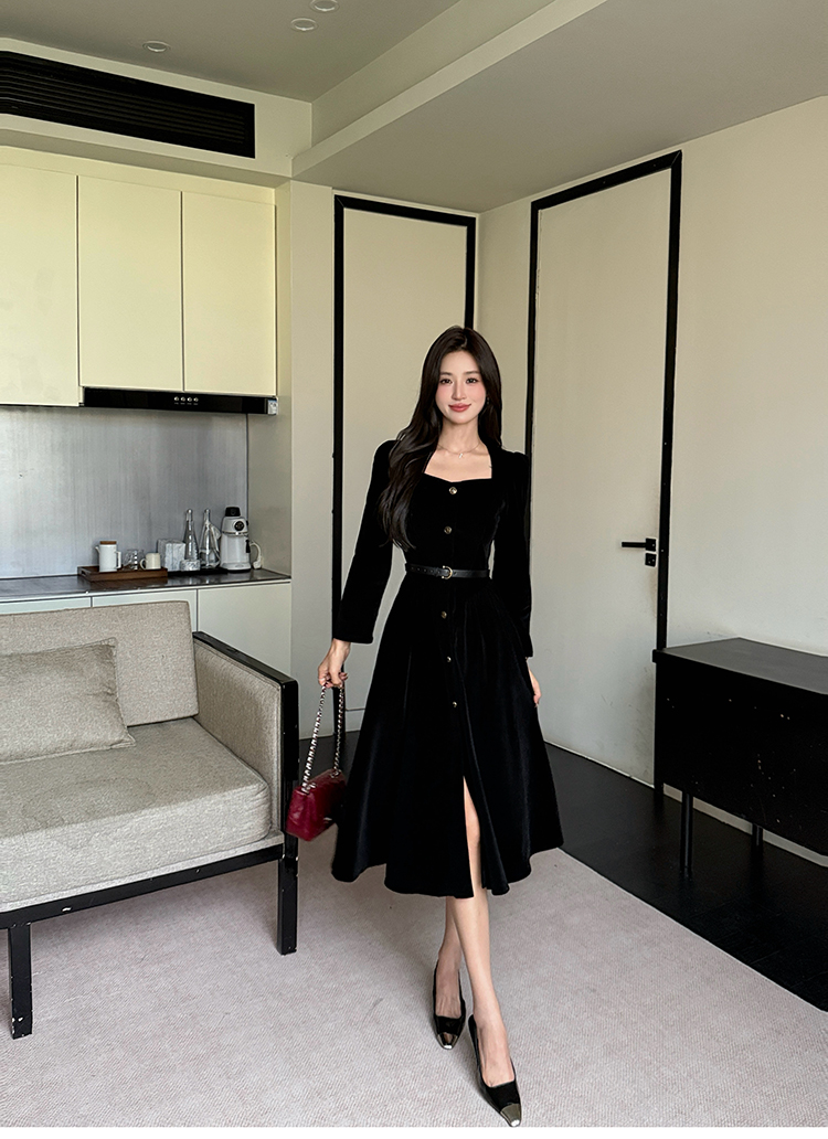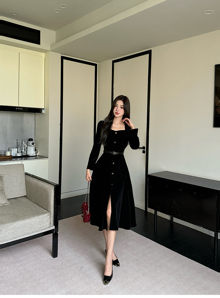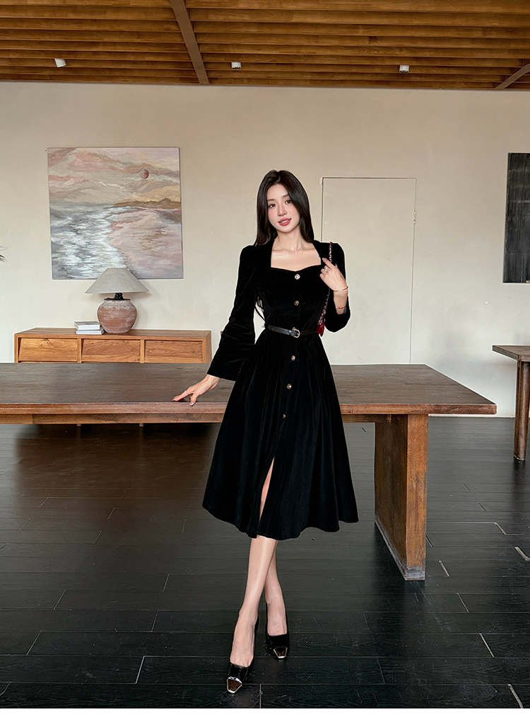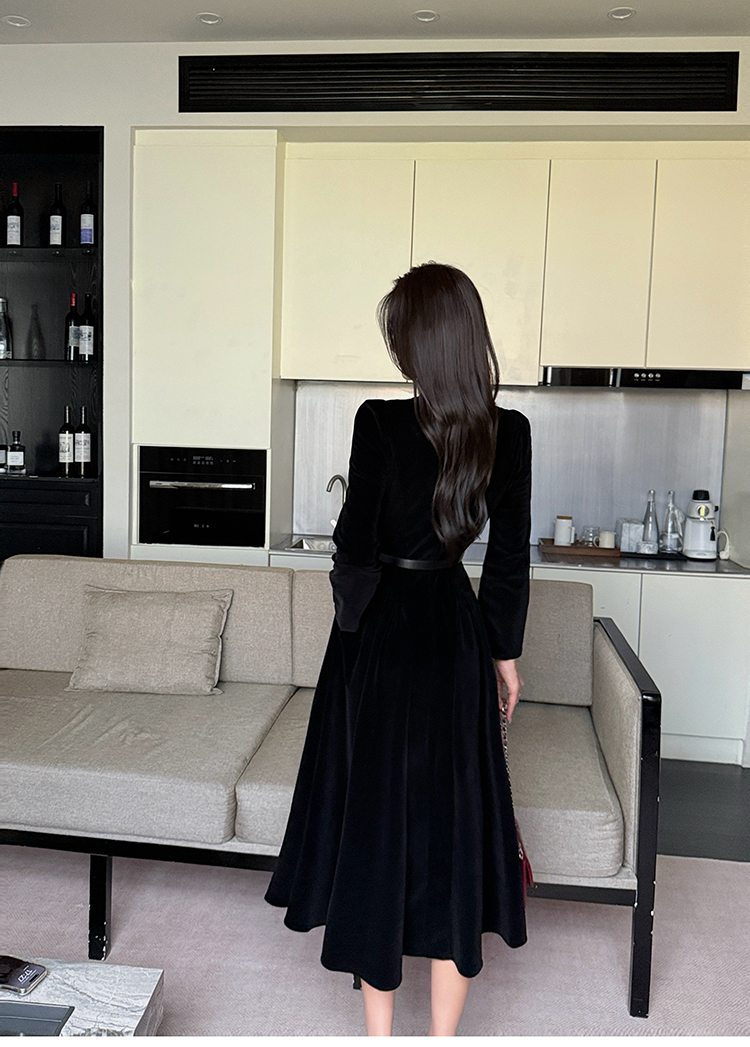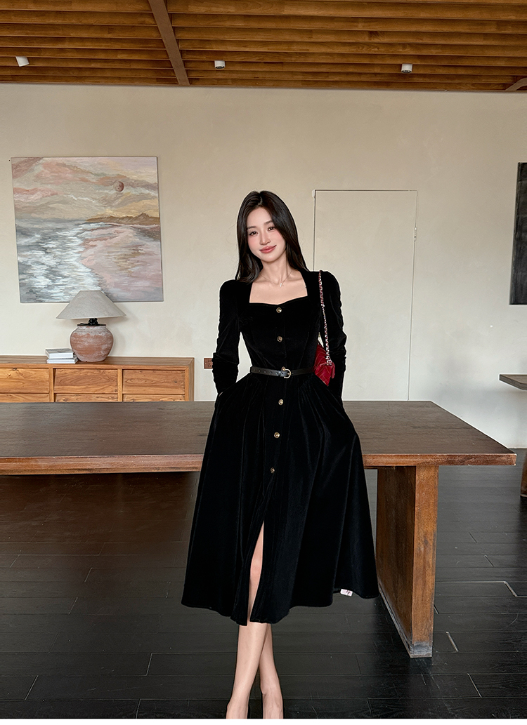 MY14052# 须尽欢 灯芯绒连衣裙秋轻奢高级感长袖法式长裙子女裝貨源服裝批發