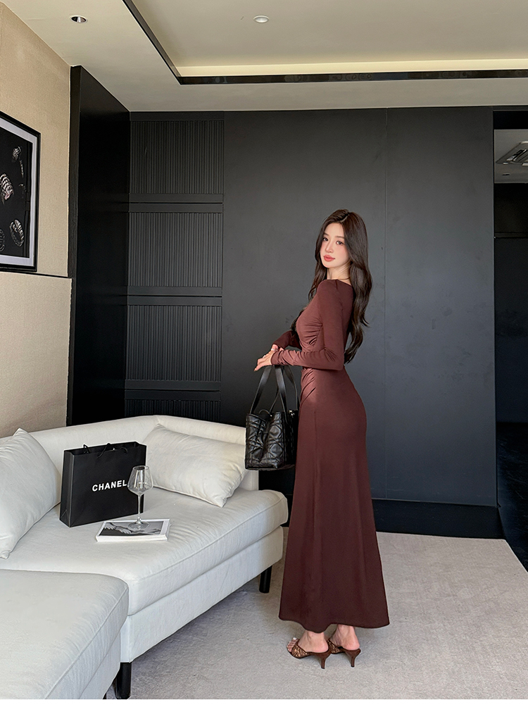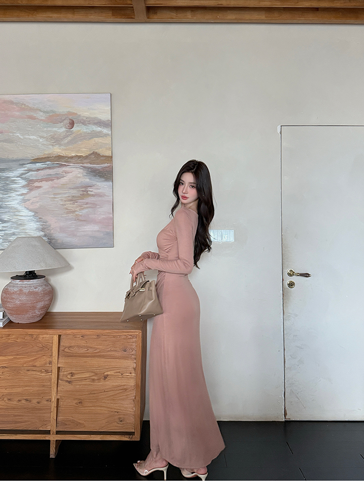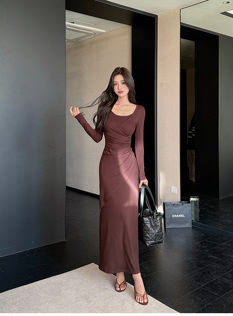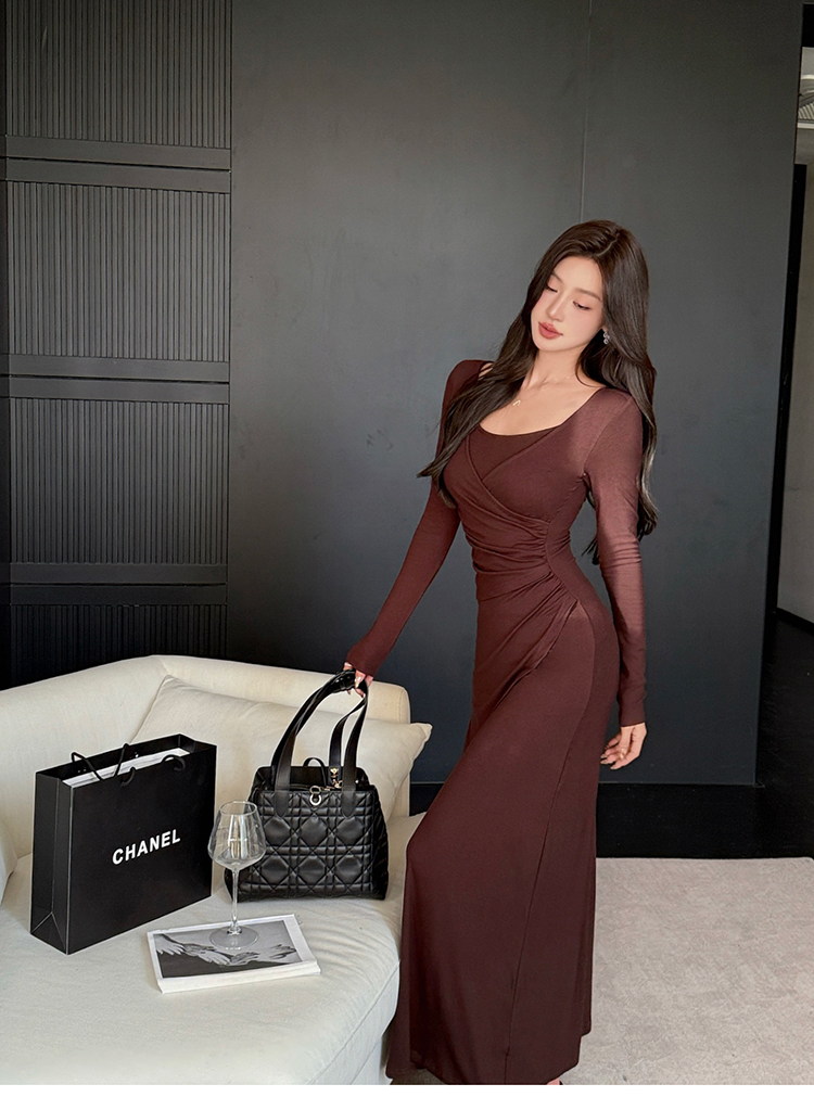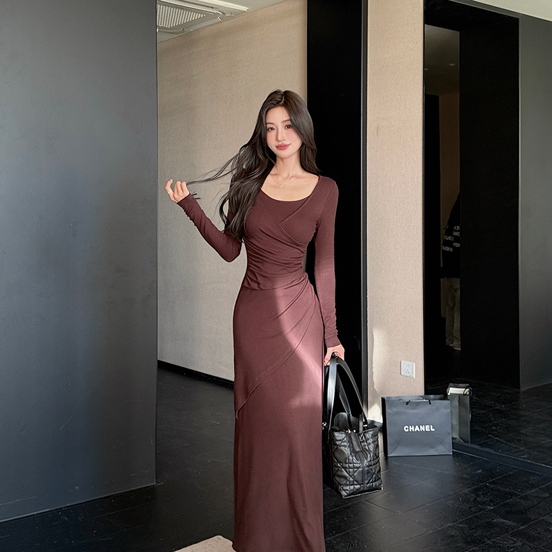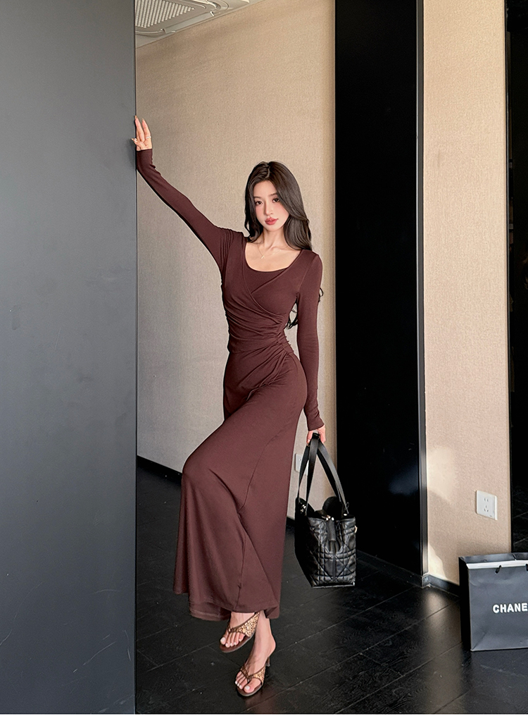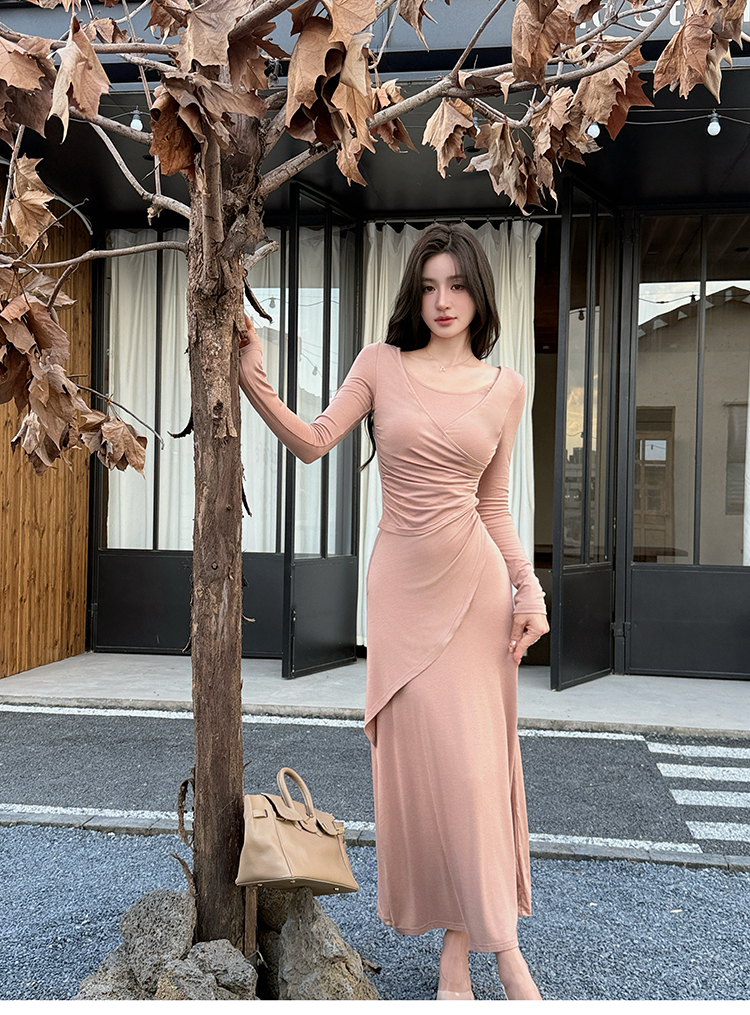 MY14054# 艺术白月光 气质收腰长款褶皱A字连衣裙内搭打底裙子女裝貨源服裝批發
