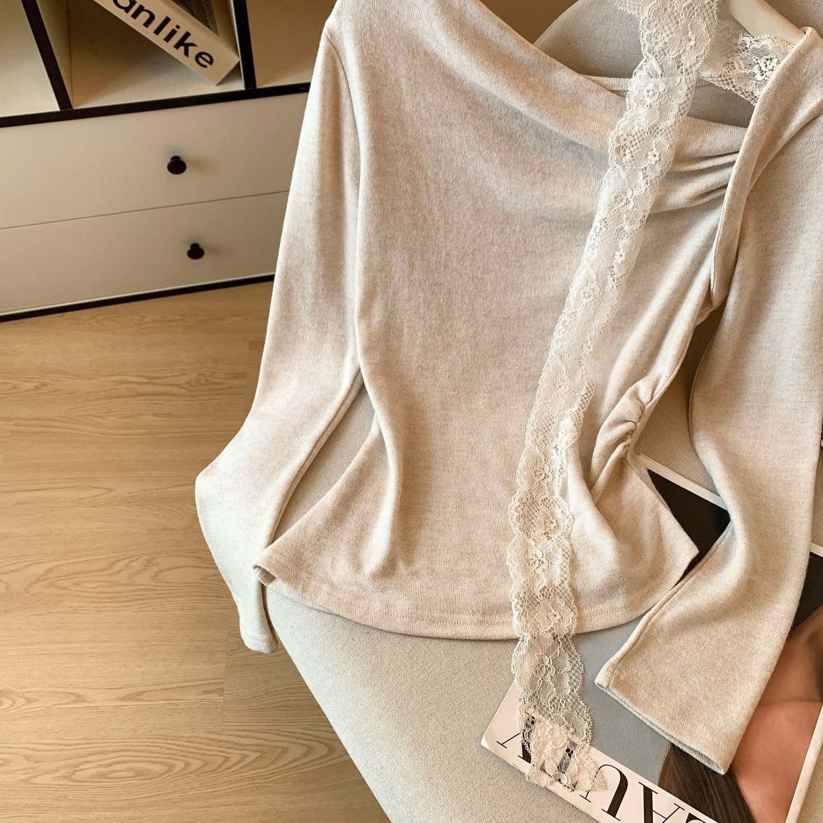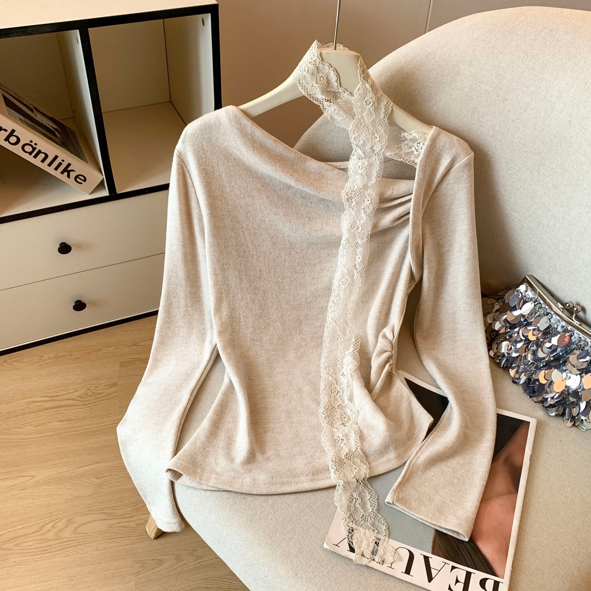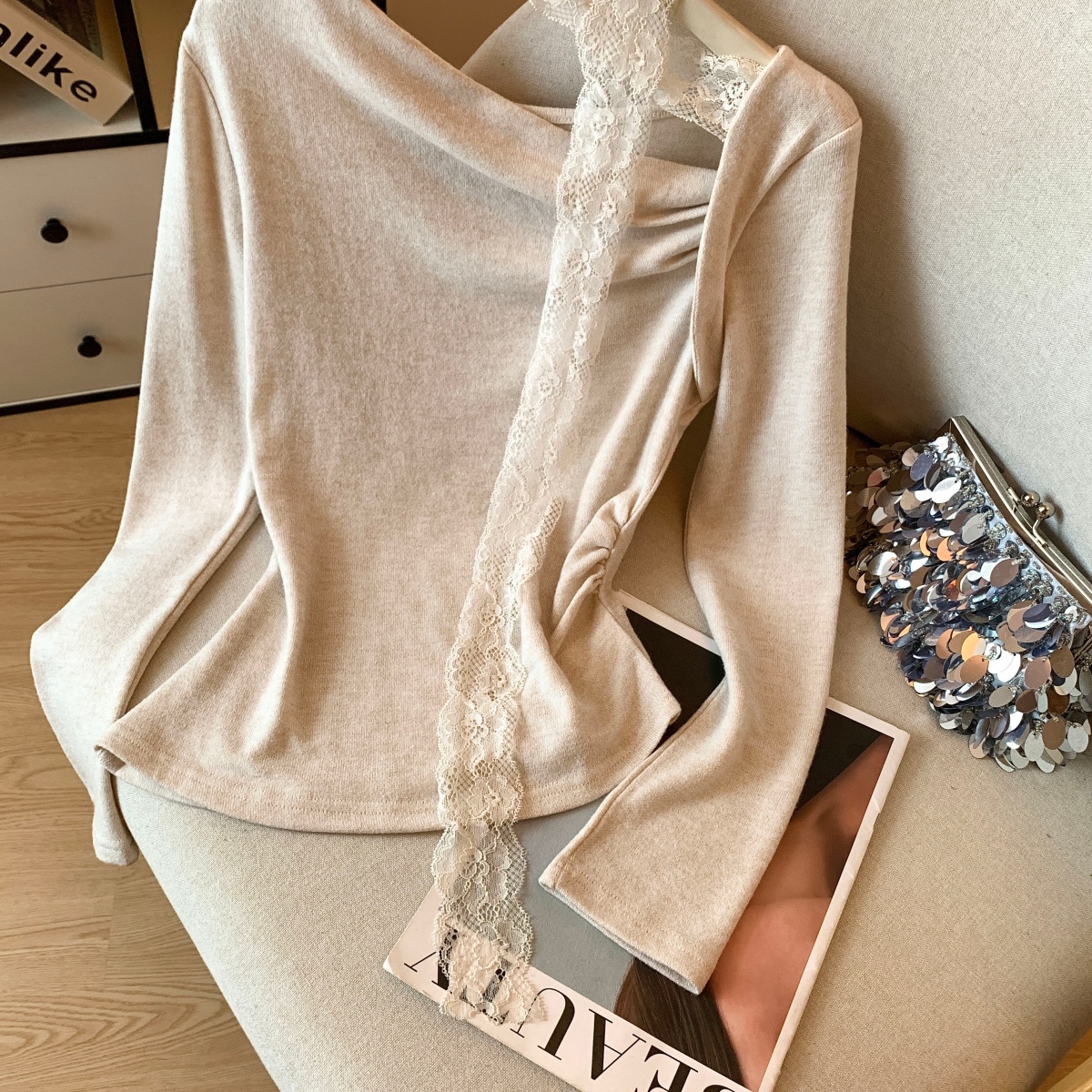 MY14085# 纯欲蕾丝女V领长袖上衣女裝貨源服裝批發