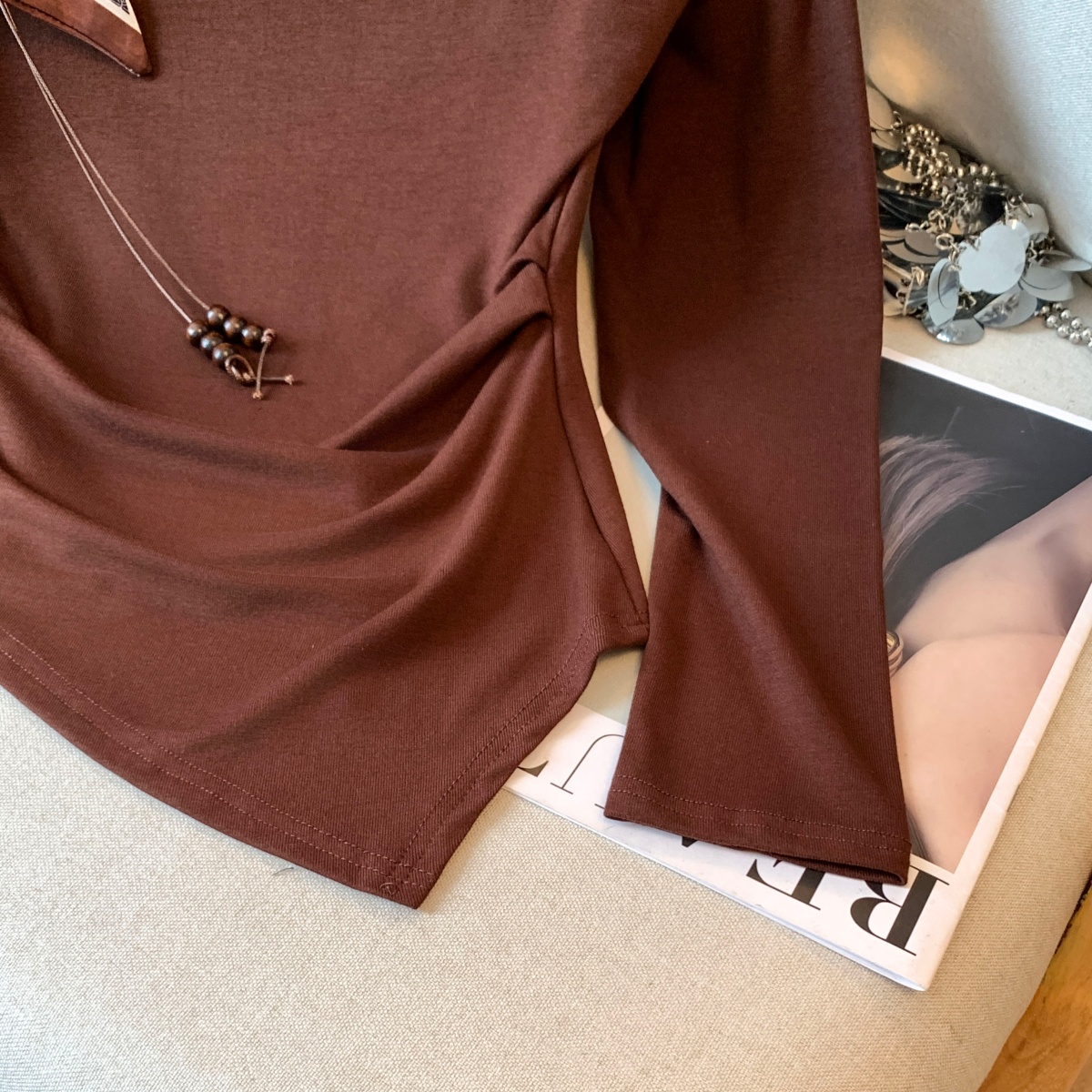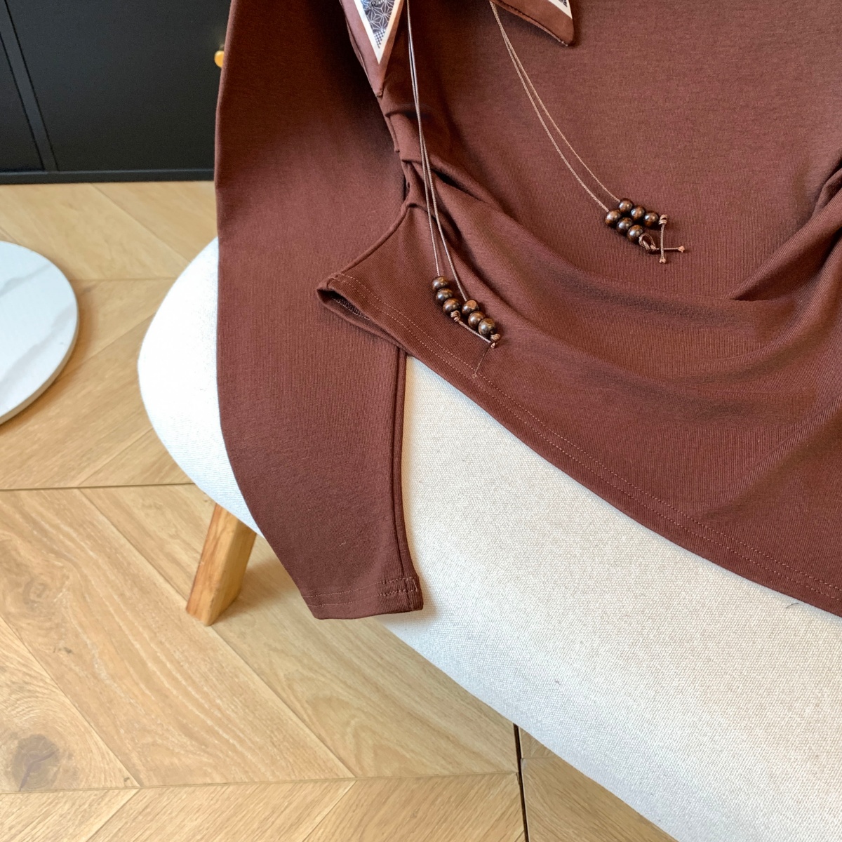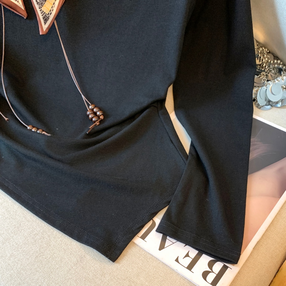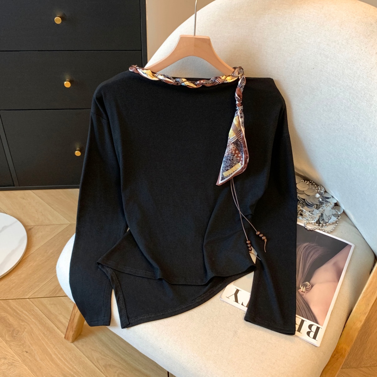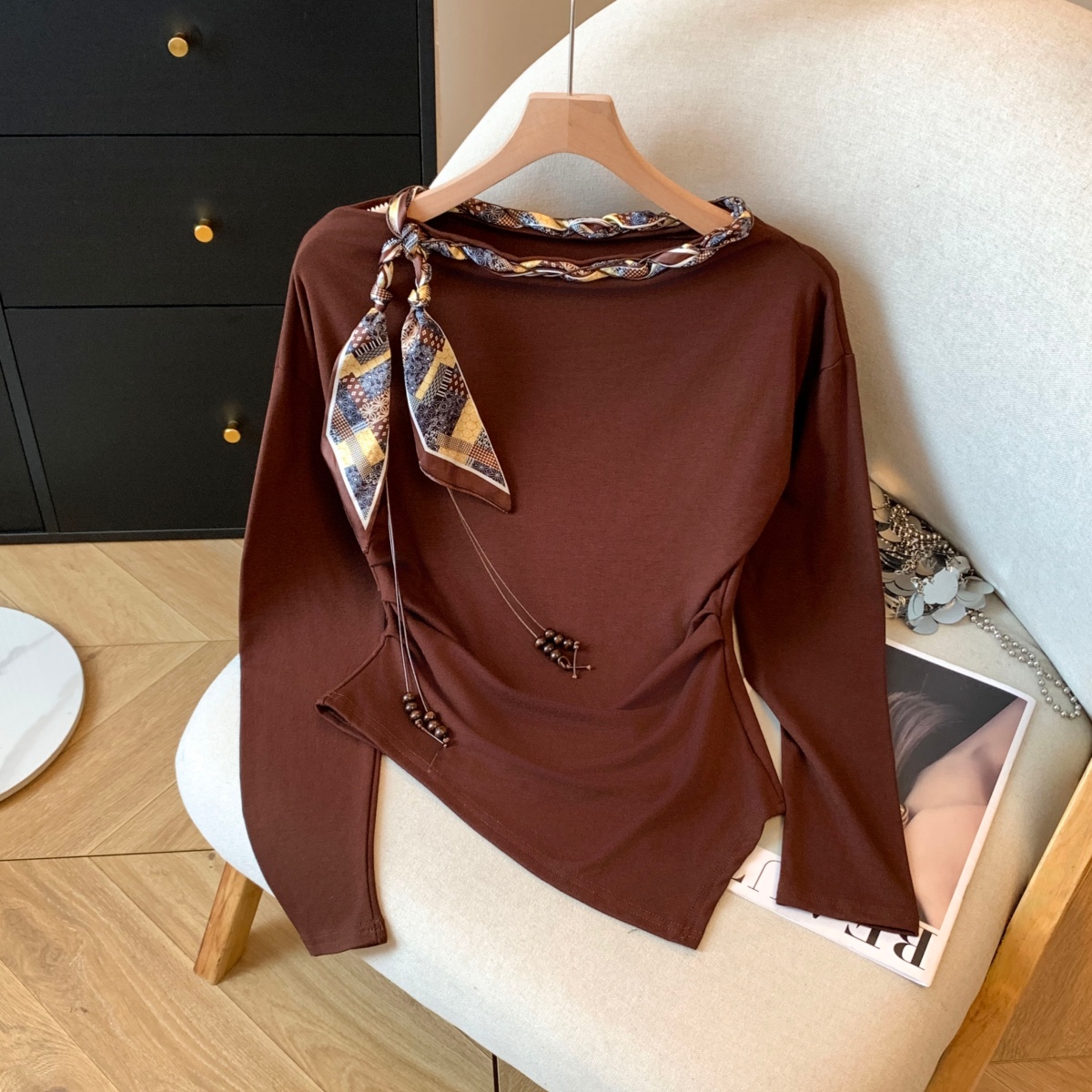 MY14069# 新款修身搭配丝巾设计通勤显瘦百搭一字肩套头针织衫女裝貨源服裝批發