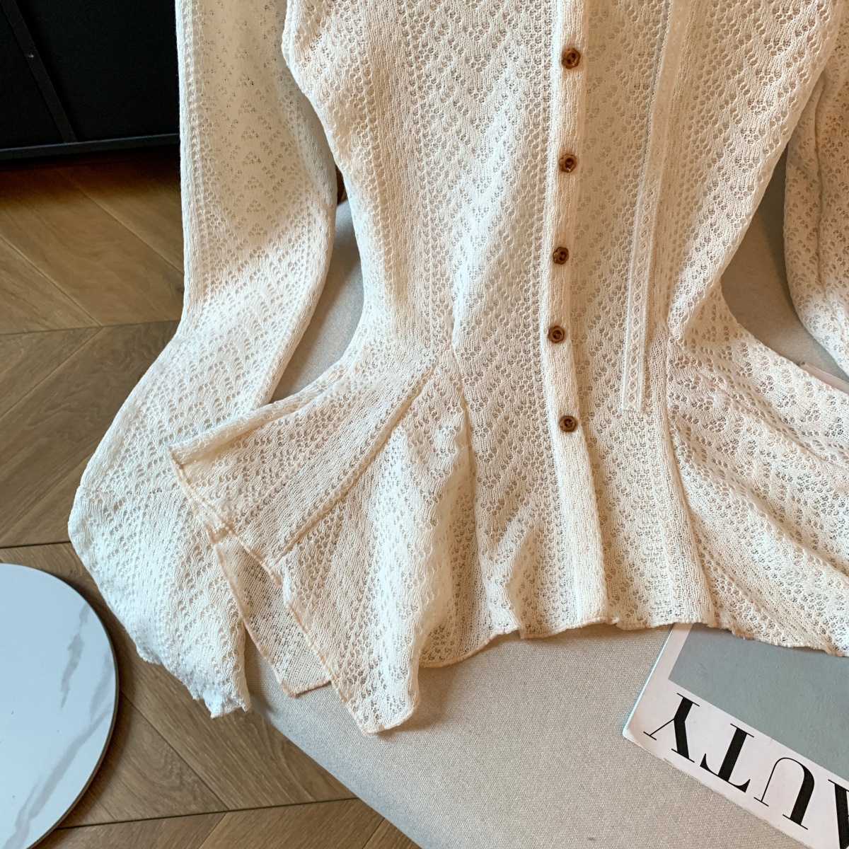 MY14065# 新款蕾丝拼接长袖女装韩系穿搭收腰开叉别致喇叭袖上衣女裝貨...