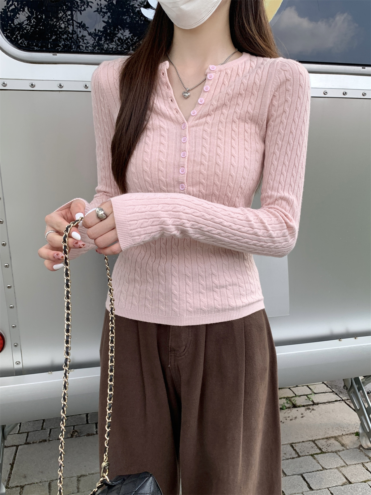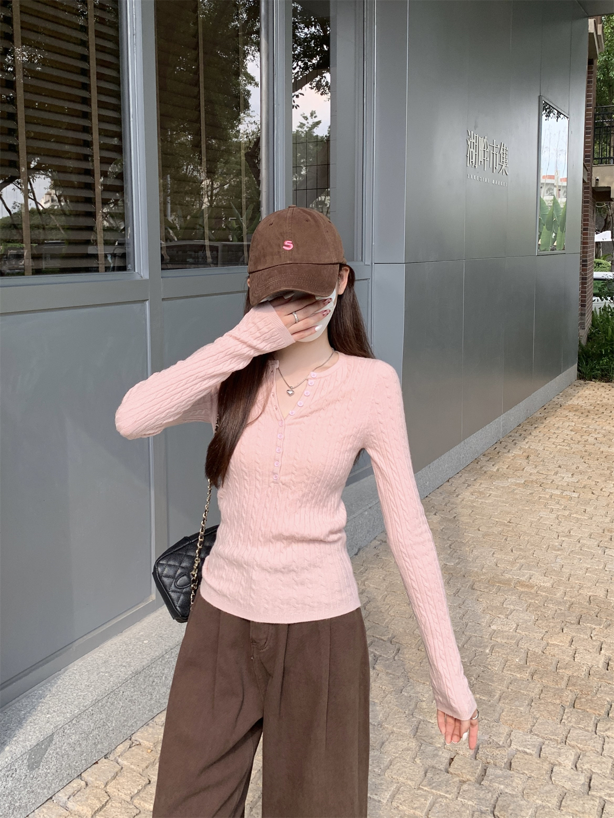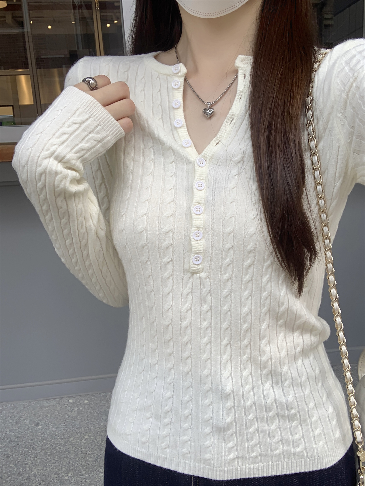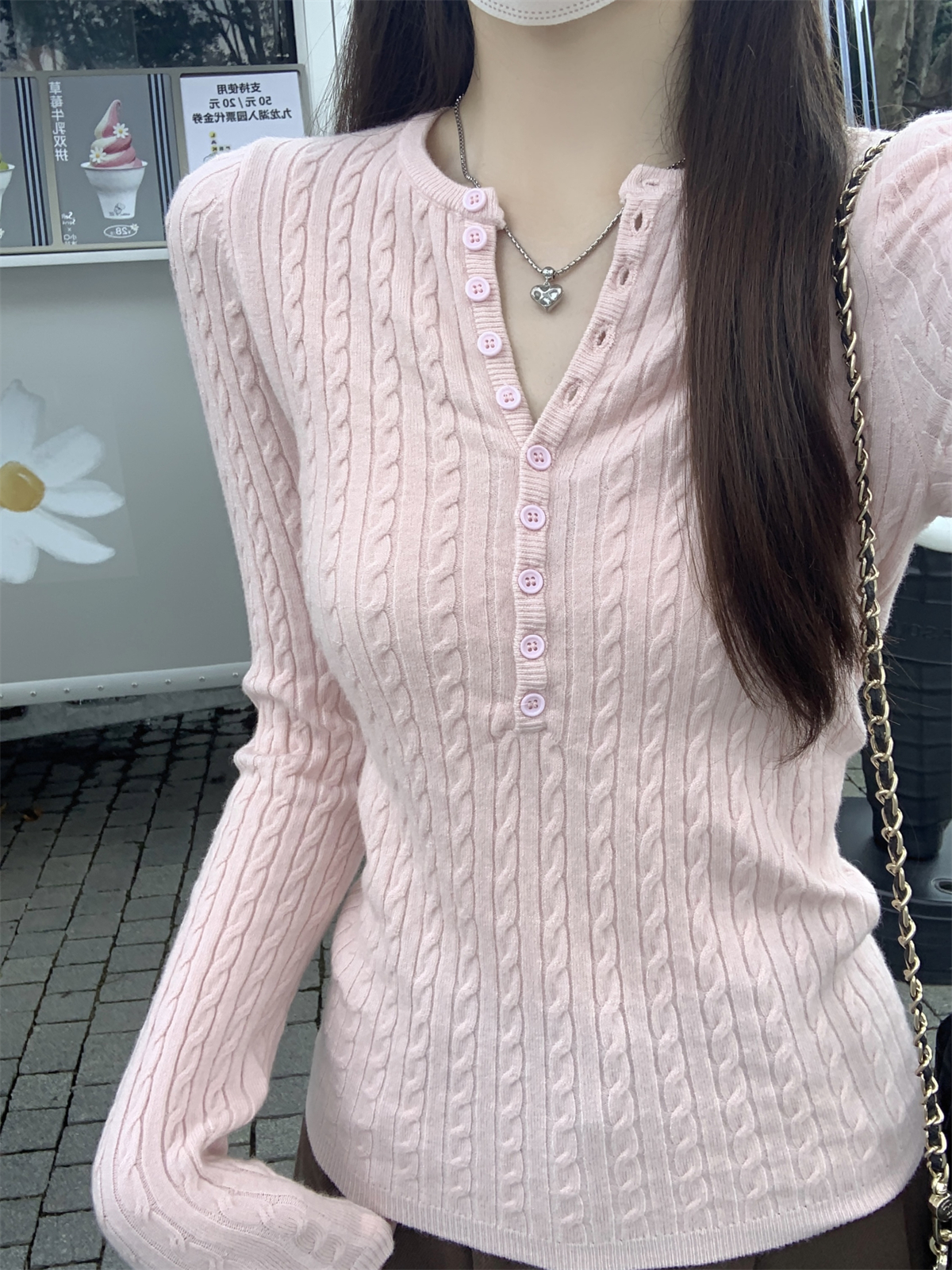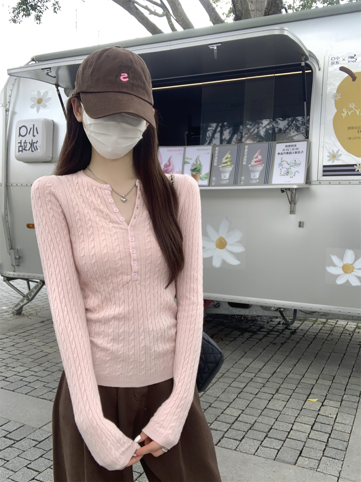 MY14084# 韩版麻花温柔百搭纽扣半开领安迪绒内搭针织衫毛衣女裝貨源服裝批發