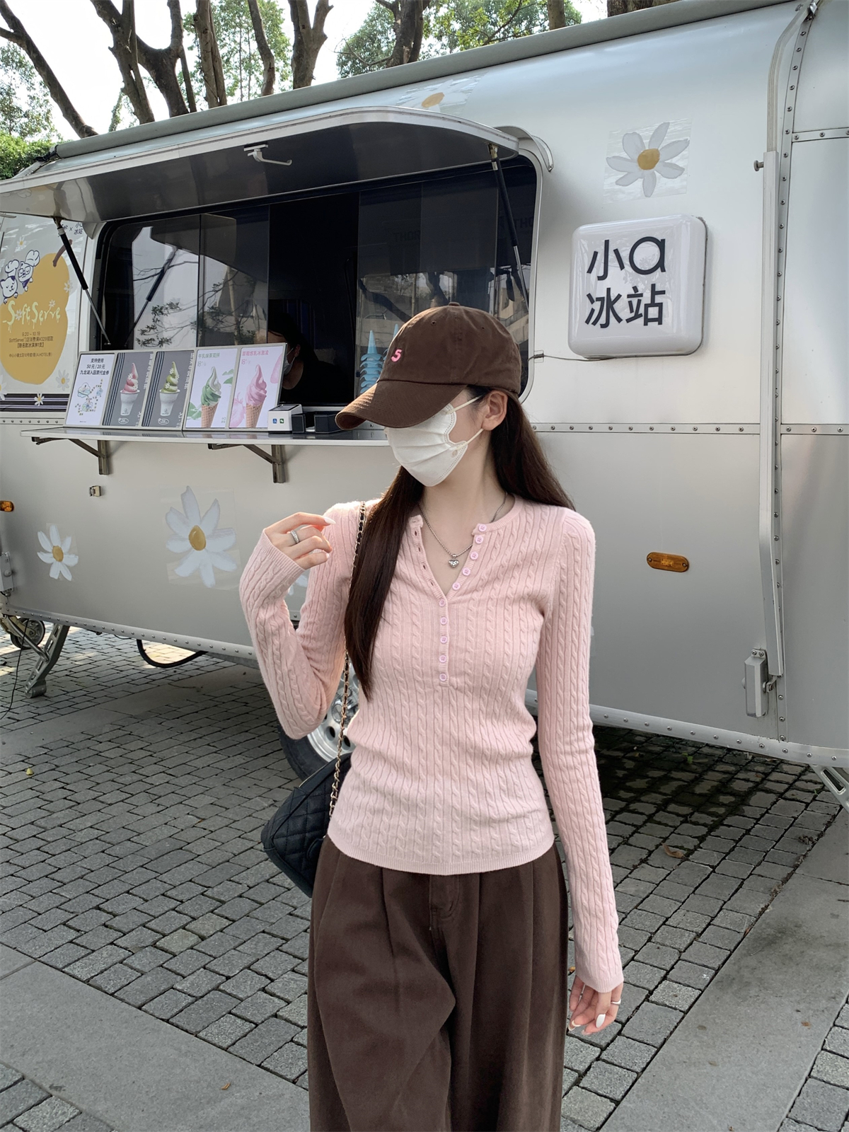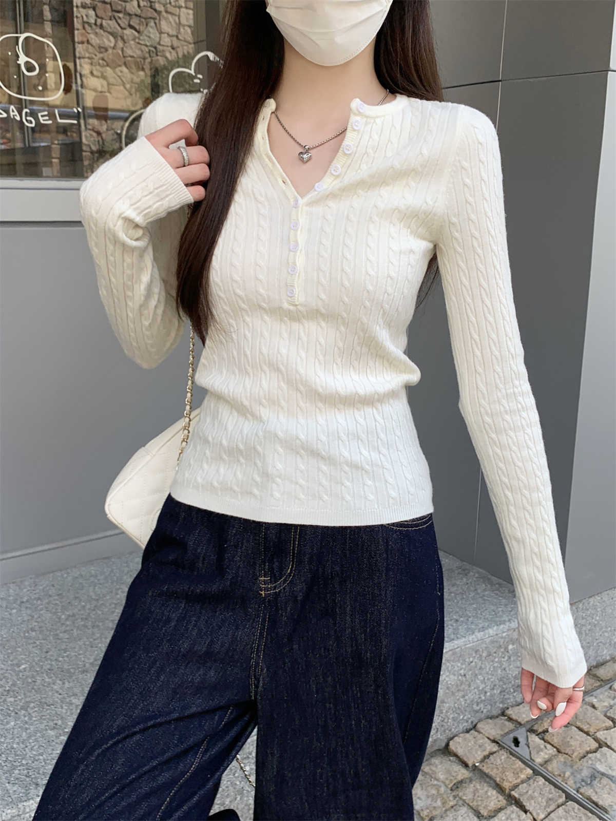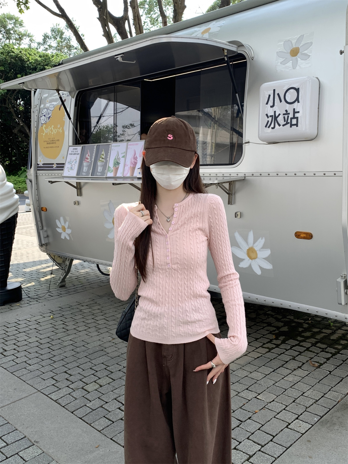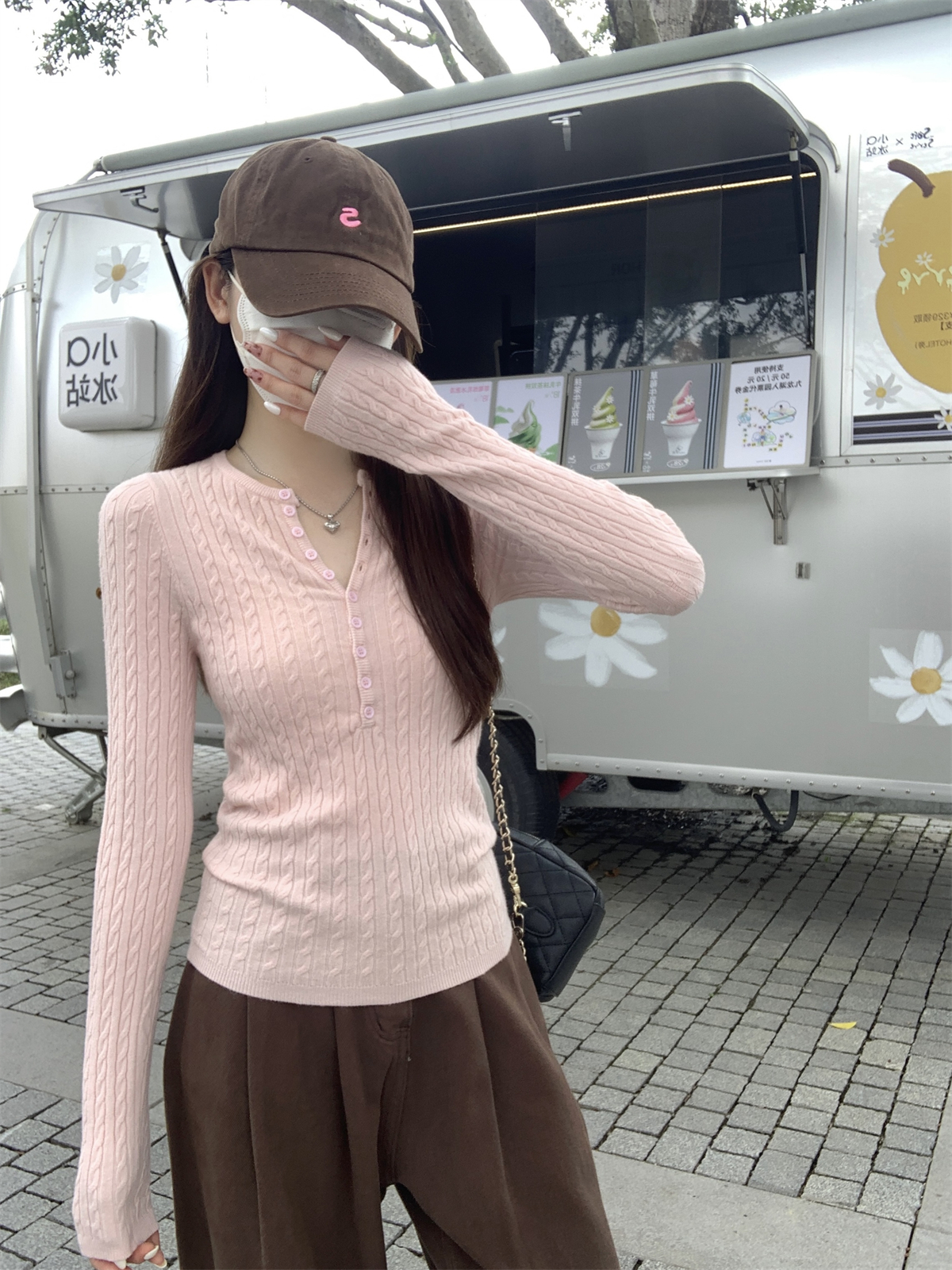 MY14084# 韩版麻花温柔百搭纽扣半开领安迪绒内搭针织衫毛衣女裝貨源服裝批發