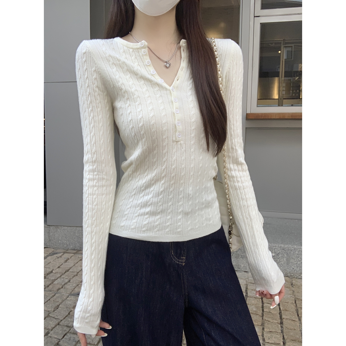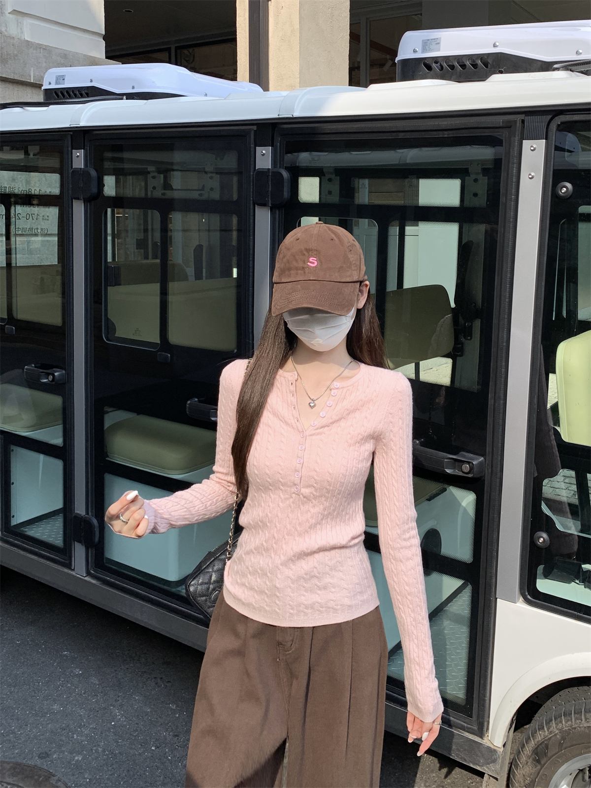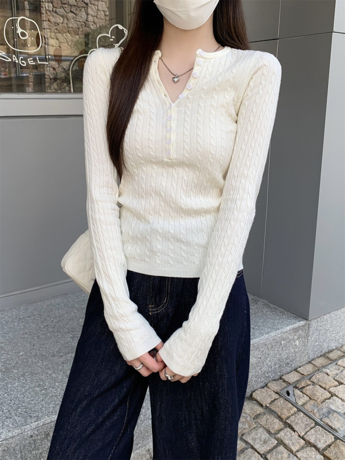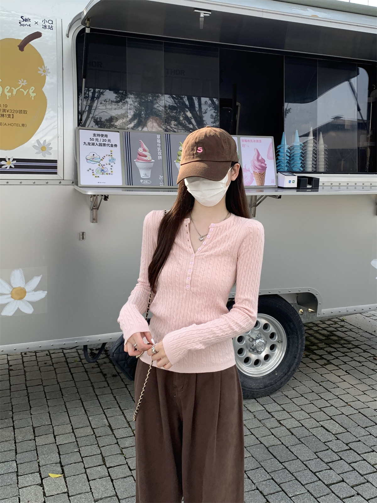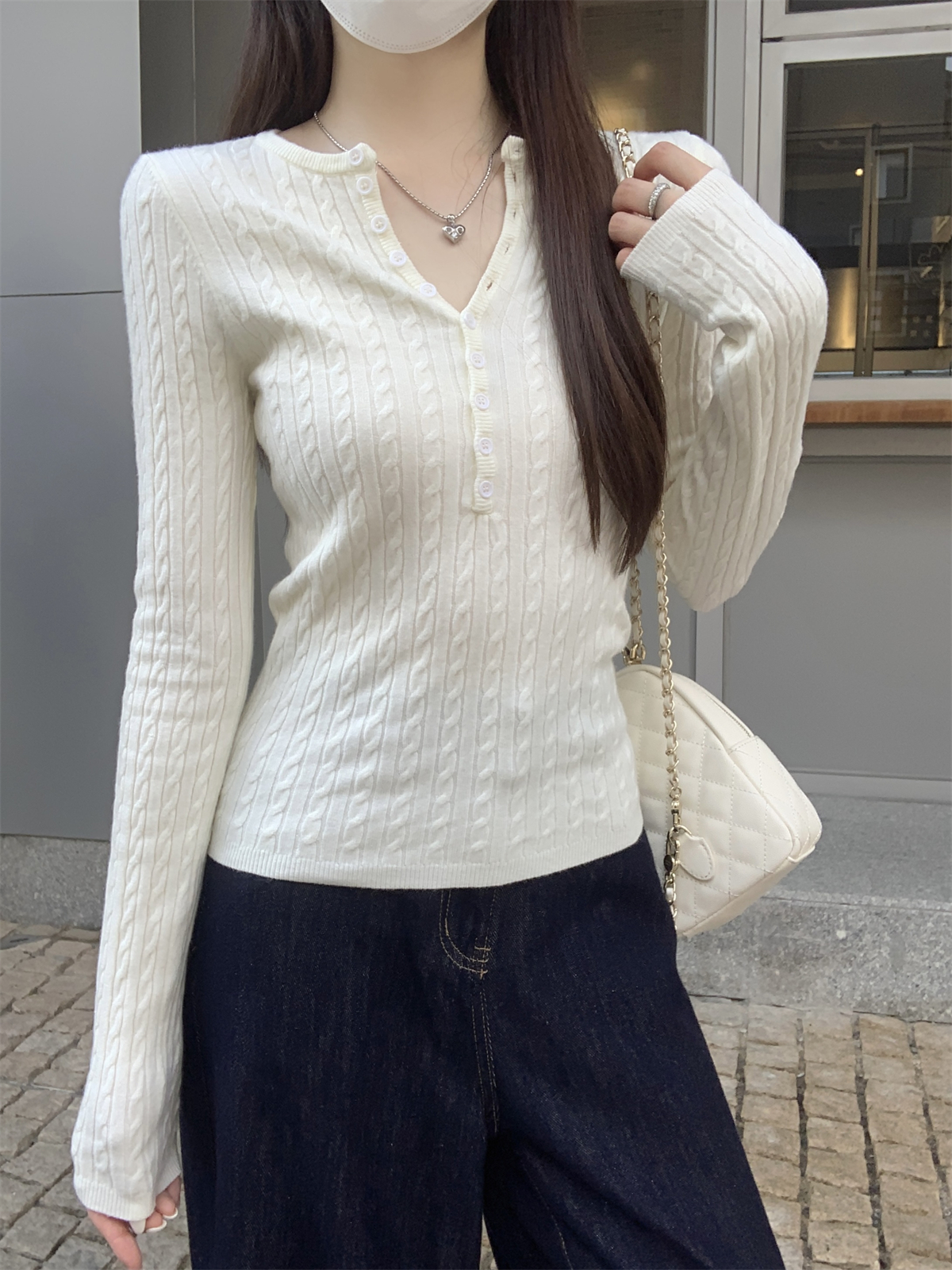 MY14084# 韩版麻花温柔百搭纽扣半开领安迪绒内搭针织衫毛衣女裝貨源服裝批發