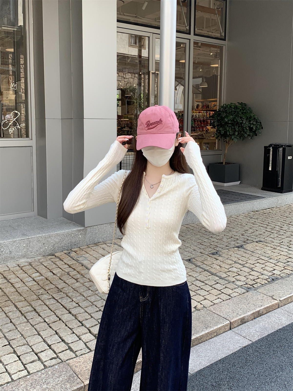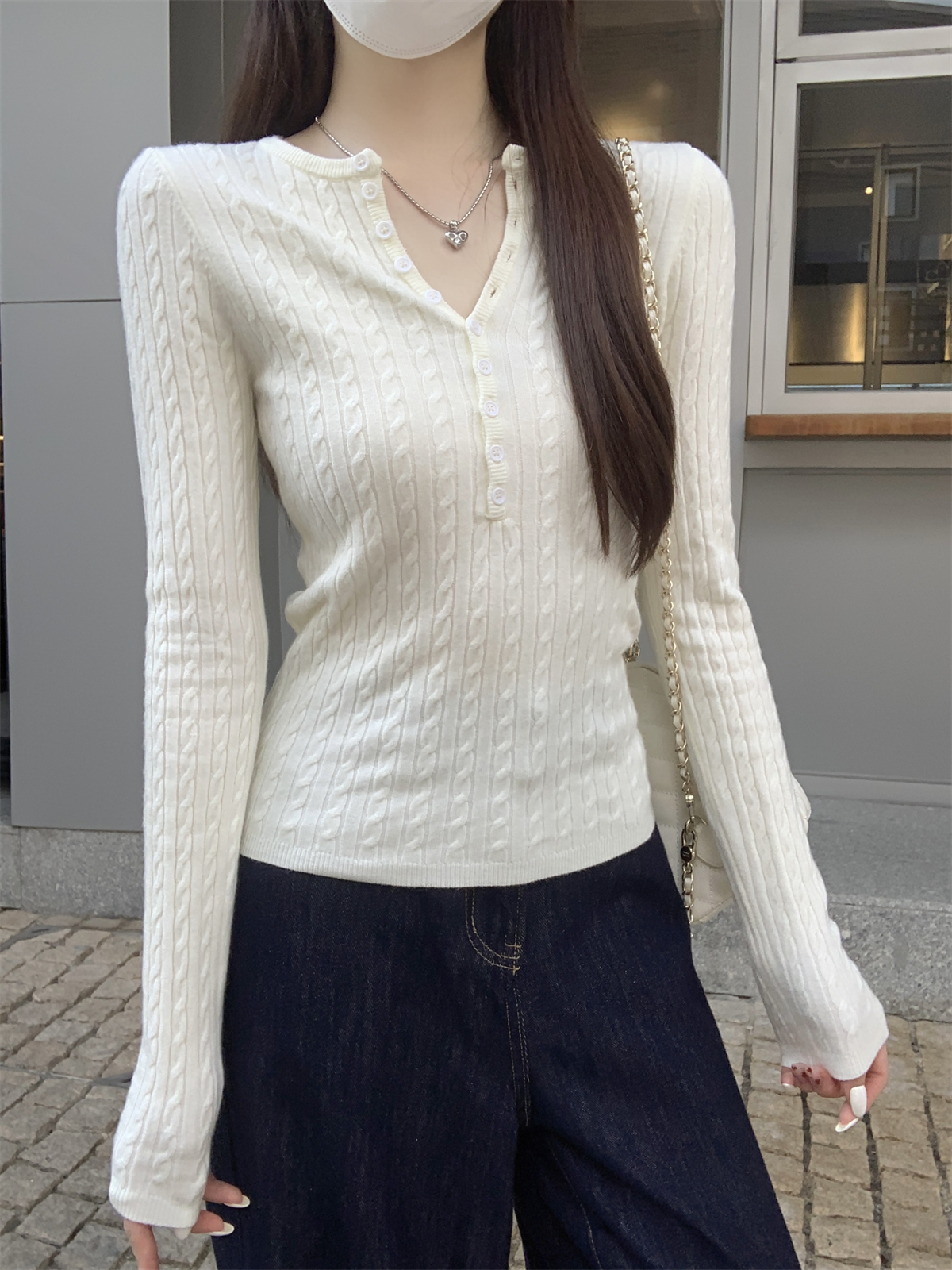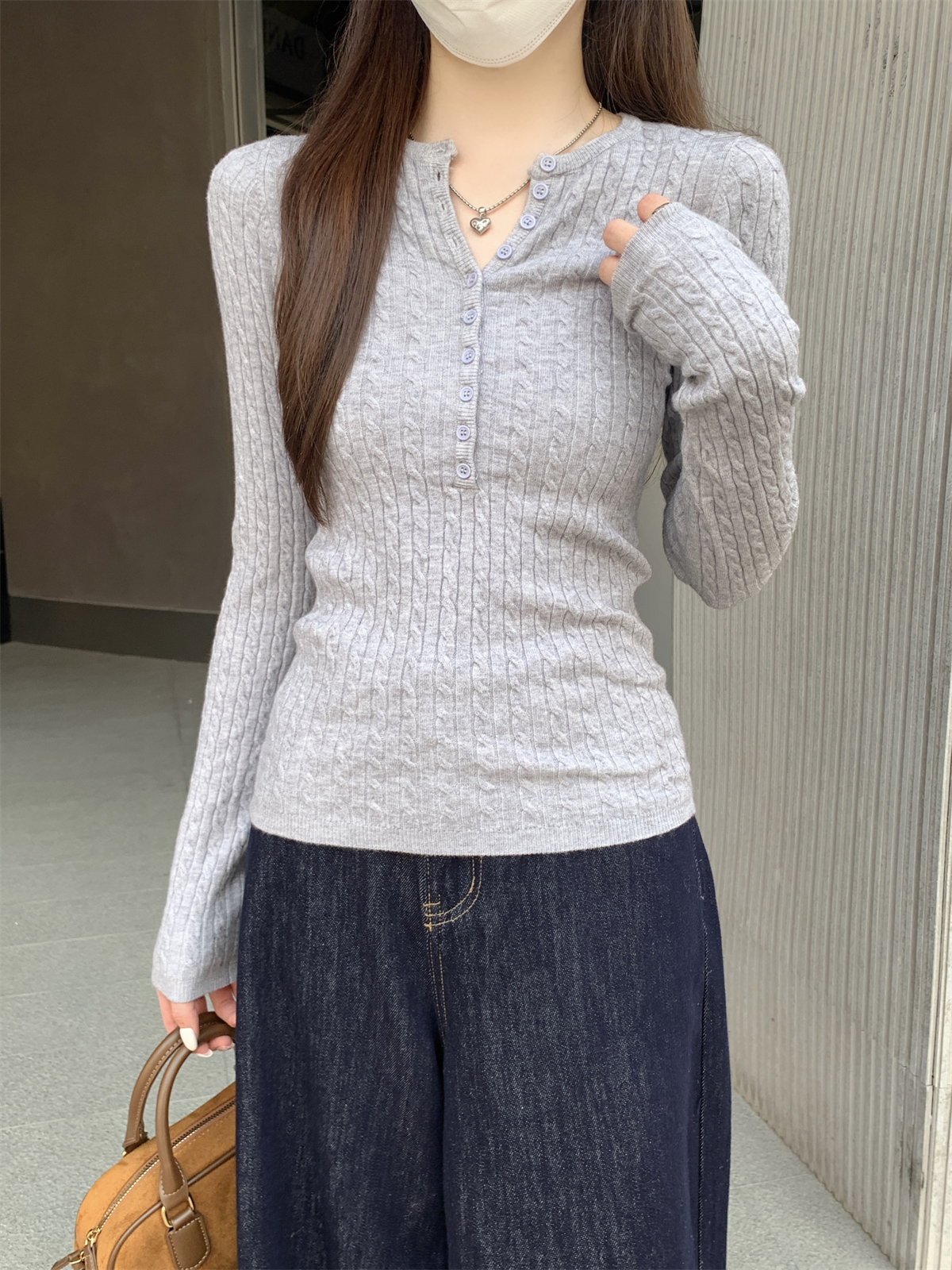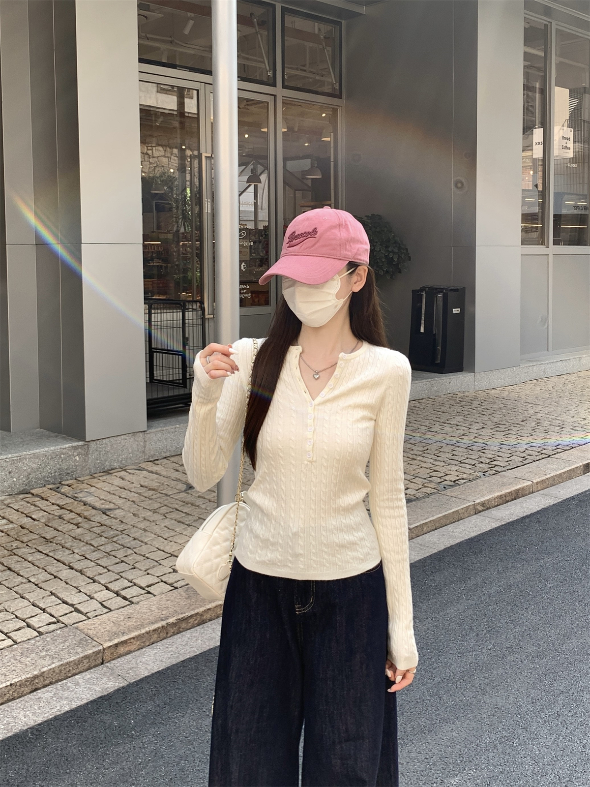 MY14084# 韩版麻花温柔百搭纽扣半开领安迪绒内搭针织衫毛衣女裝貨源服裝批發